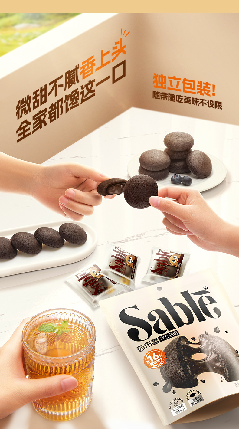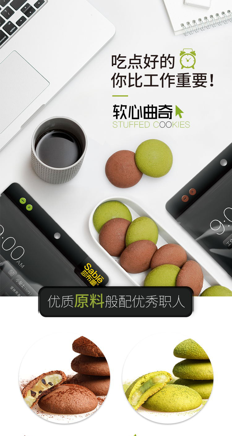 【轻咬爆酱,满口浓香~】软心曲奇巧克力 抹茶黑芝麻饼干 休闲零食70g多口味糕点下午茶-QQ