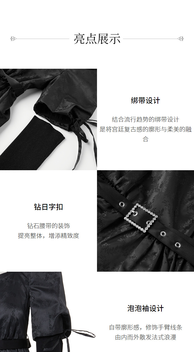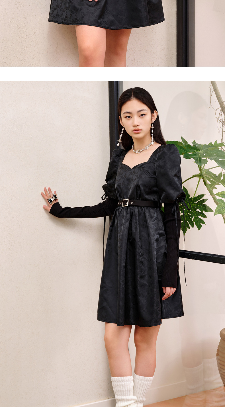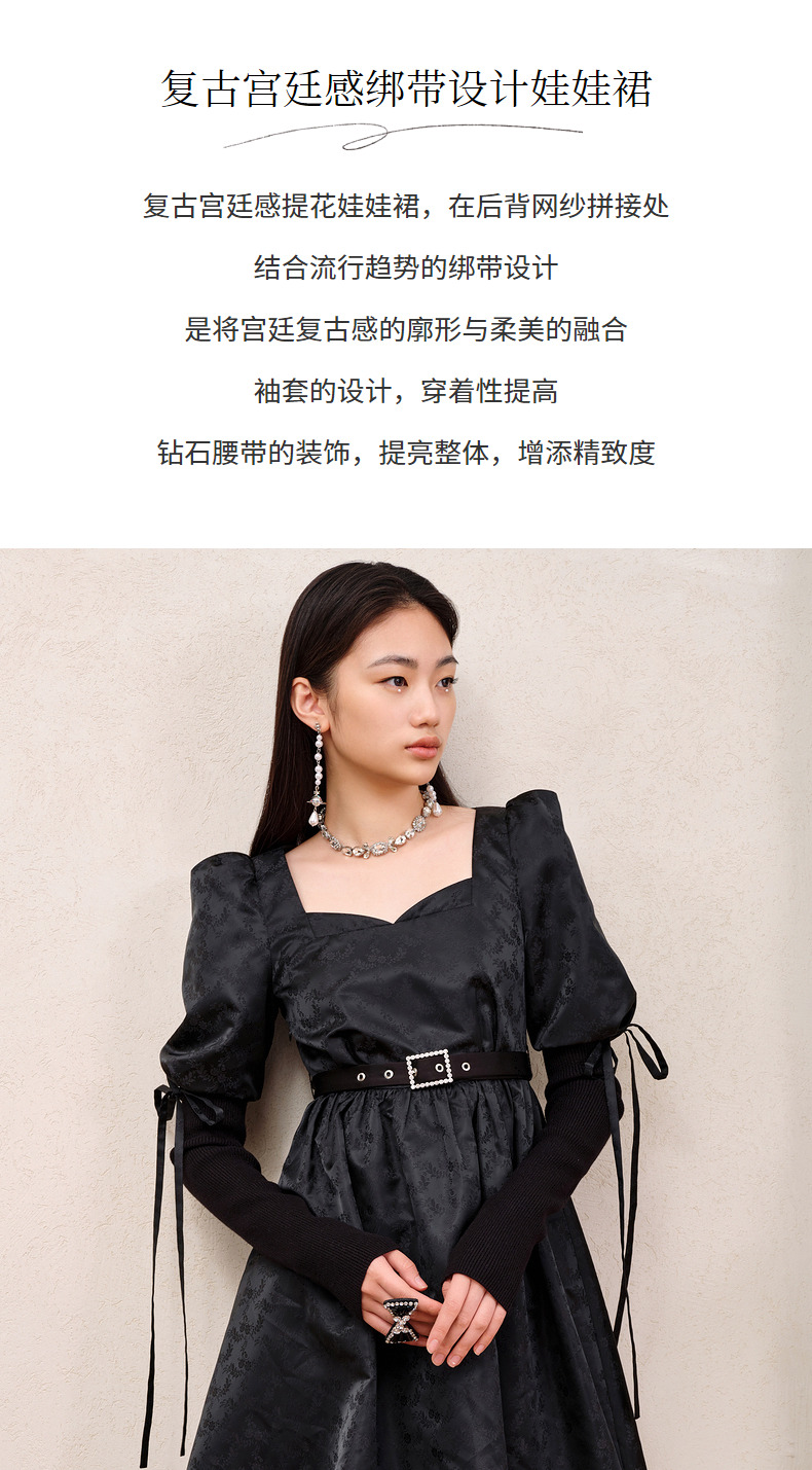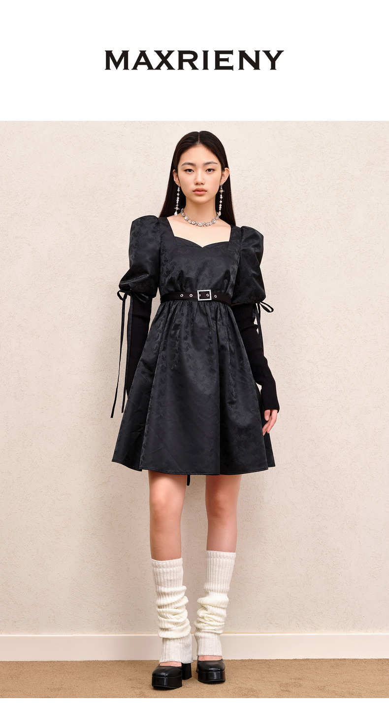 MAXRIENY宫廷复古风绑带设计娃娃裙早秋提花廓形连衣裙(货号:MS88DR556)