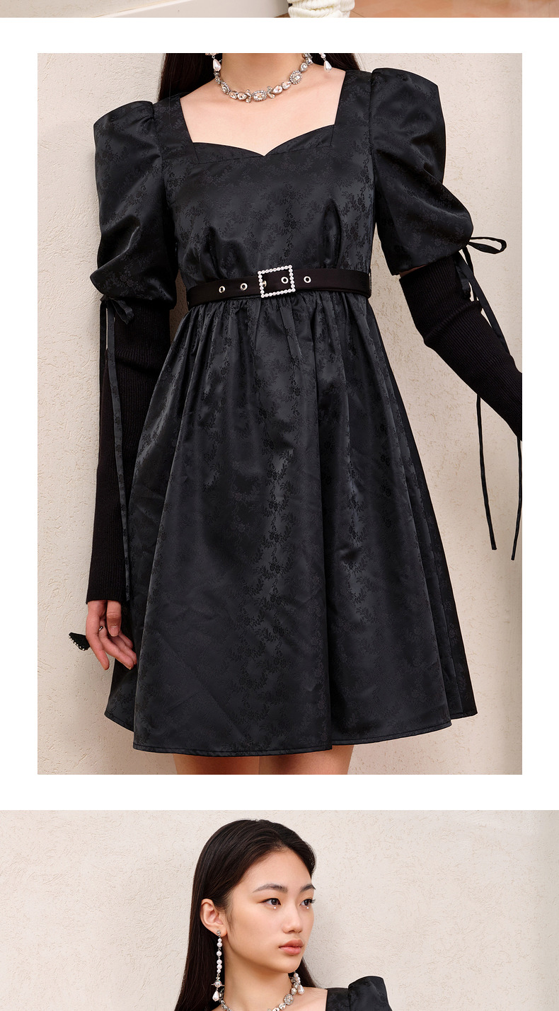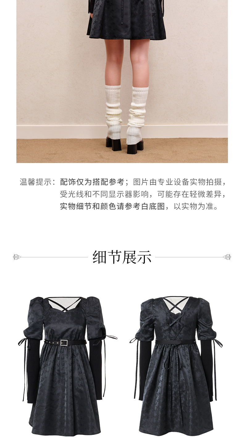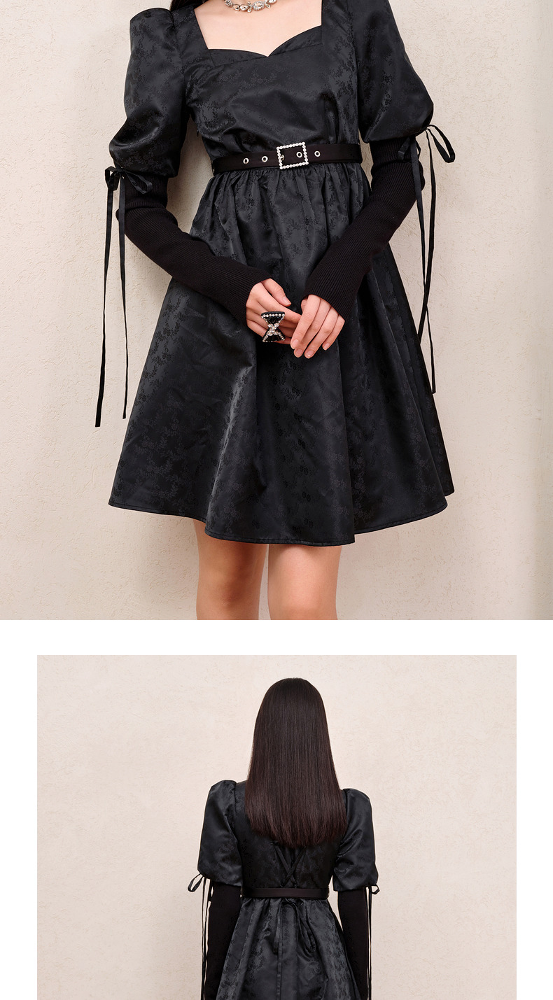 MAXRIENY宫廷复古风绑带设计娃娃裙早秋提花廓形连衣裙(货号:MS88DR556)