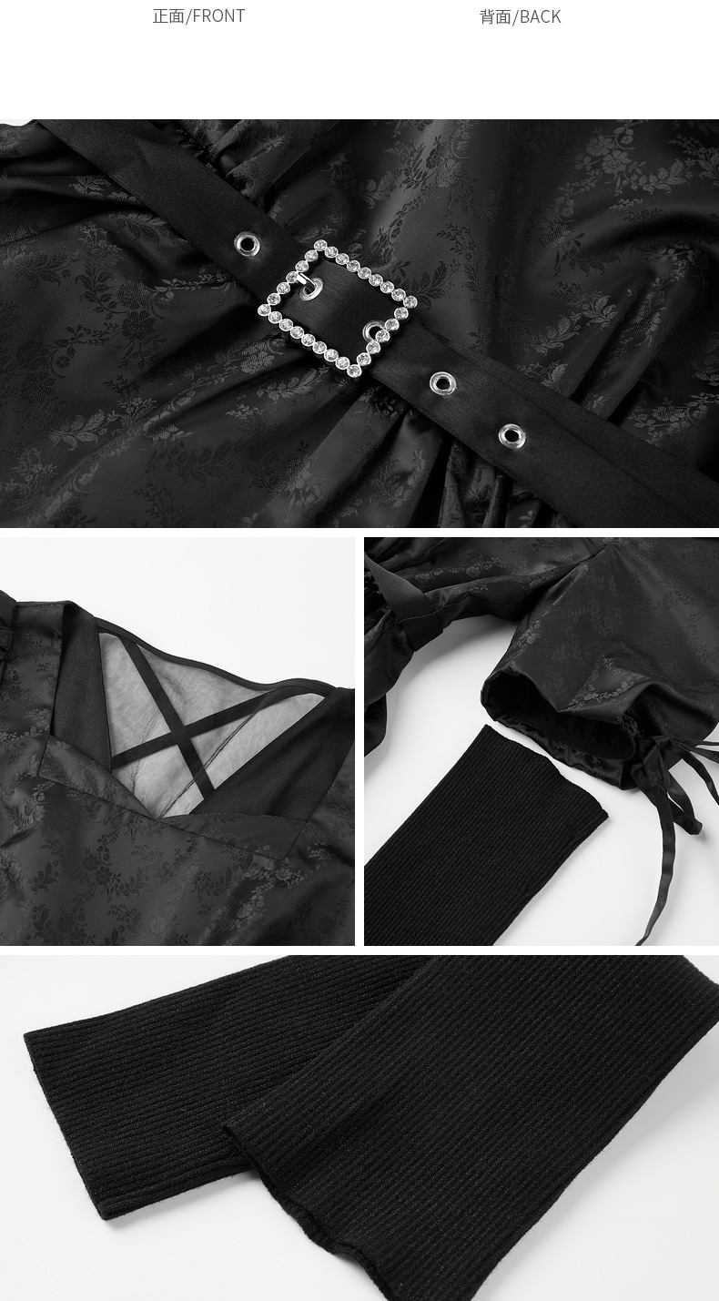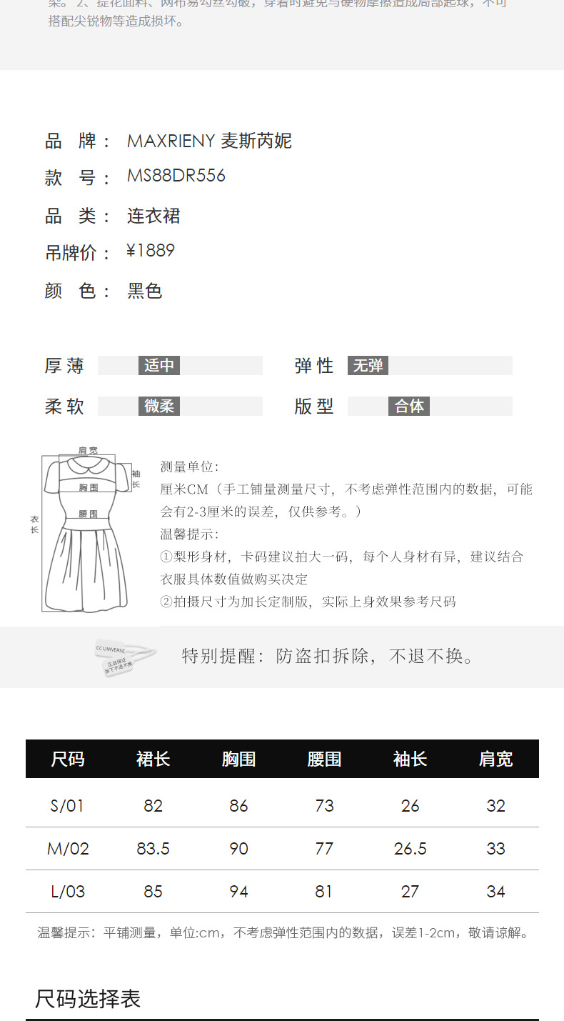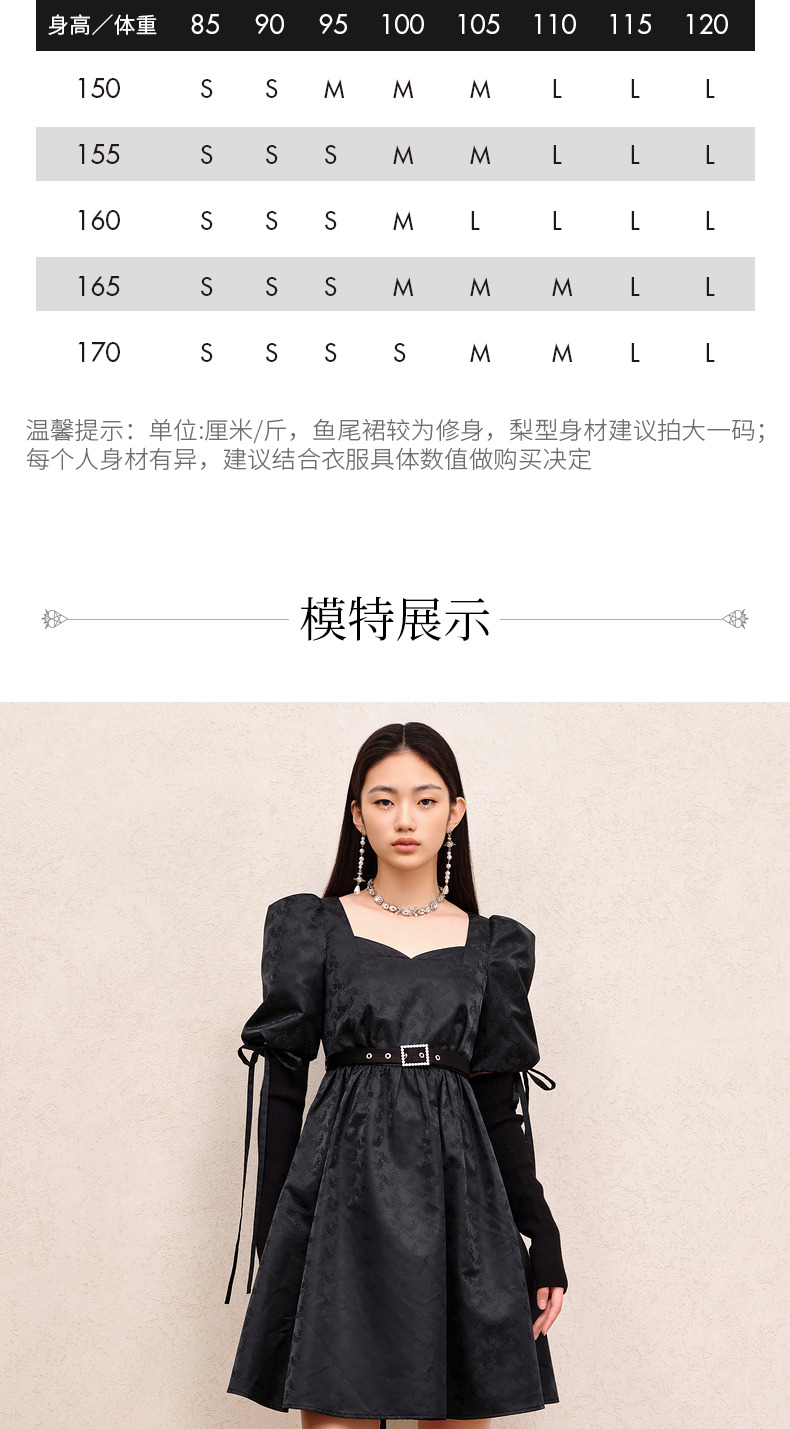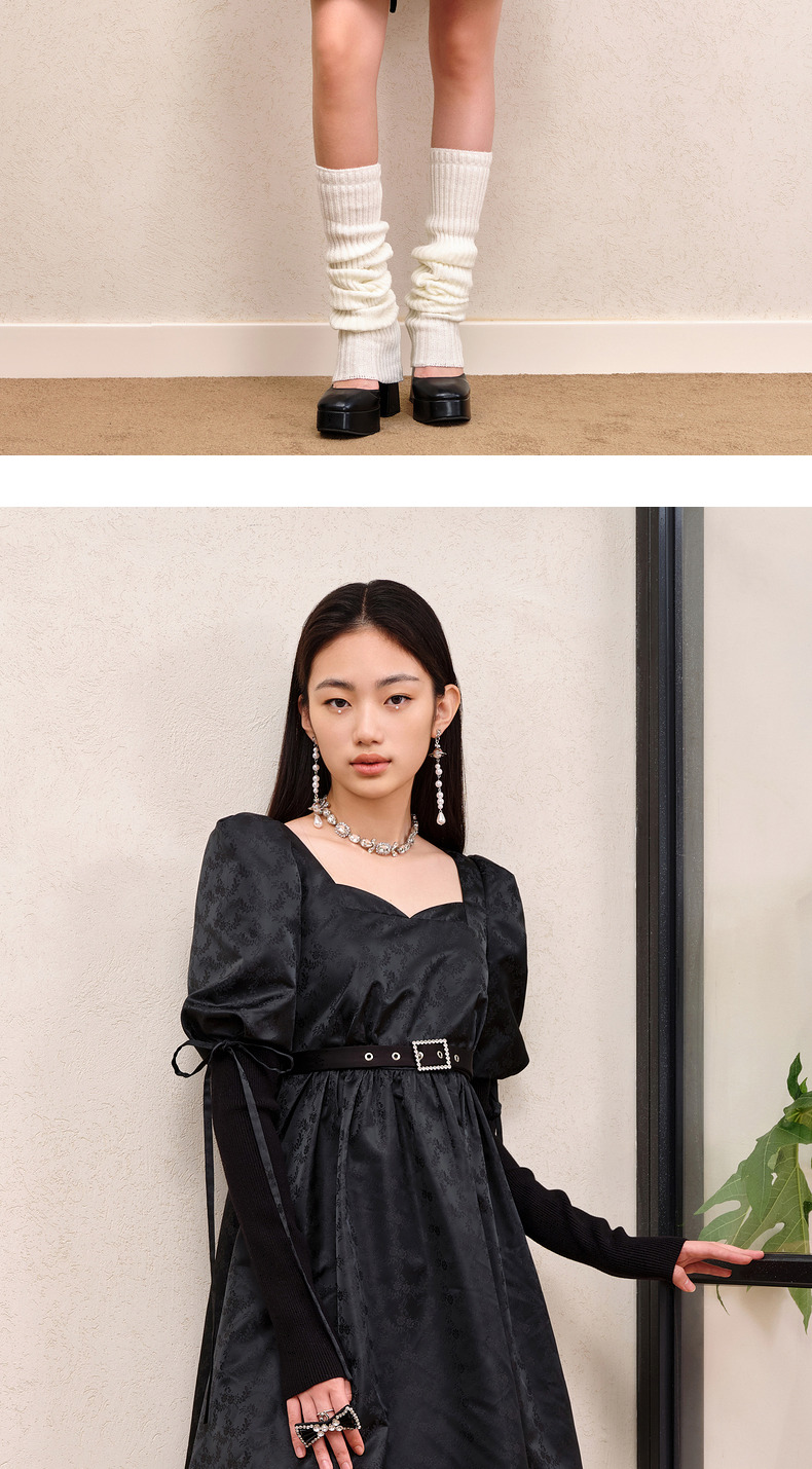 MAXRIENY宫廷复古风绑带设计娃娃裙早秋提花廓形连衣裙(货号:MS88DR556)