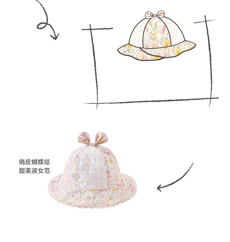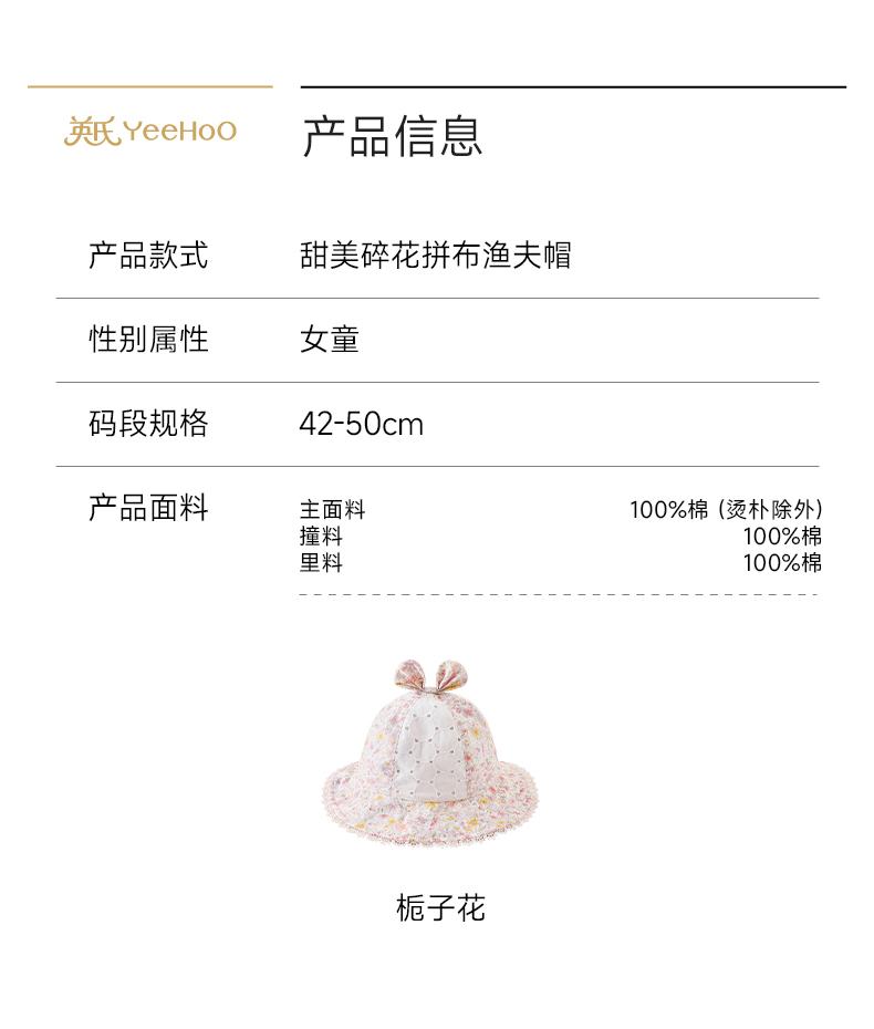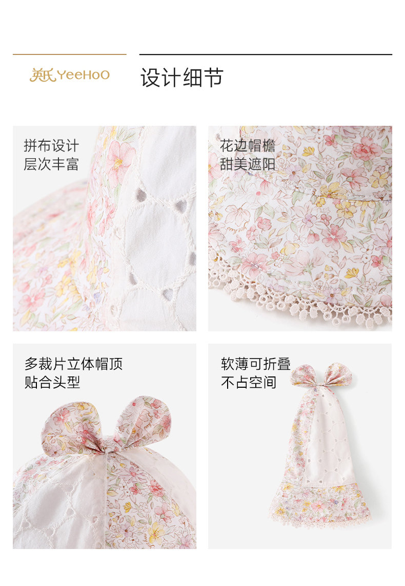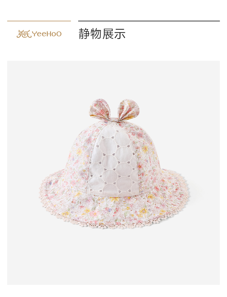 英氏儿童帽子夏季渔夫帽防晒透气可爱女宝户外防晒帽子渔夫帽女