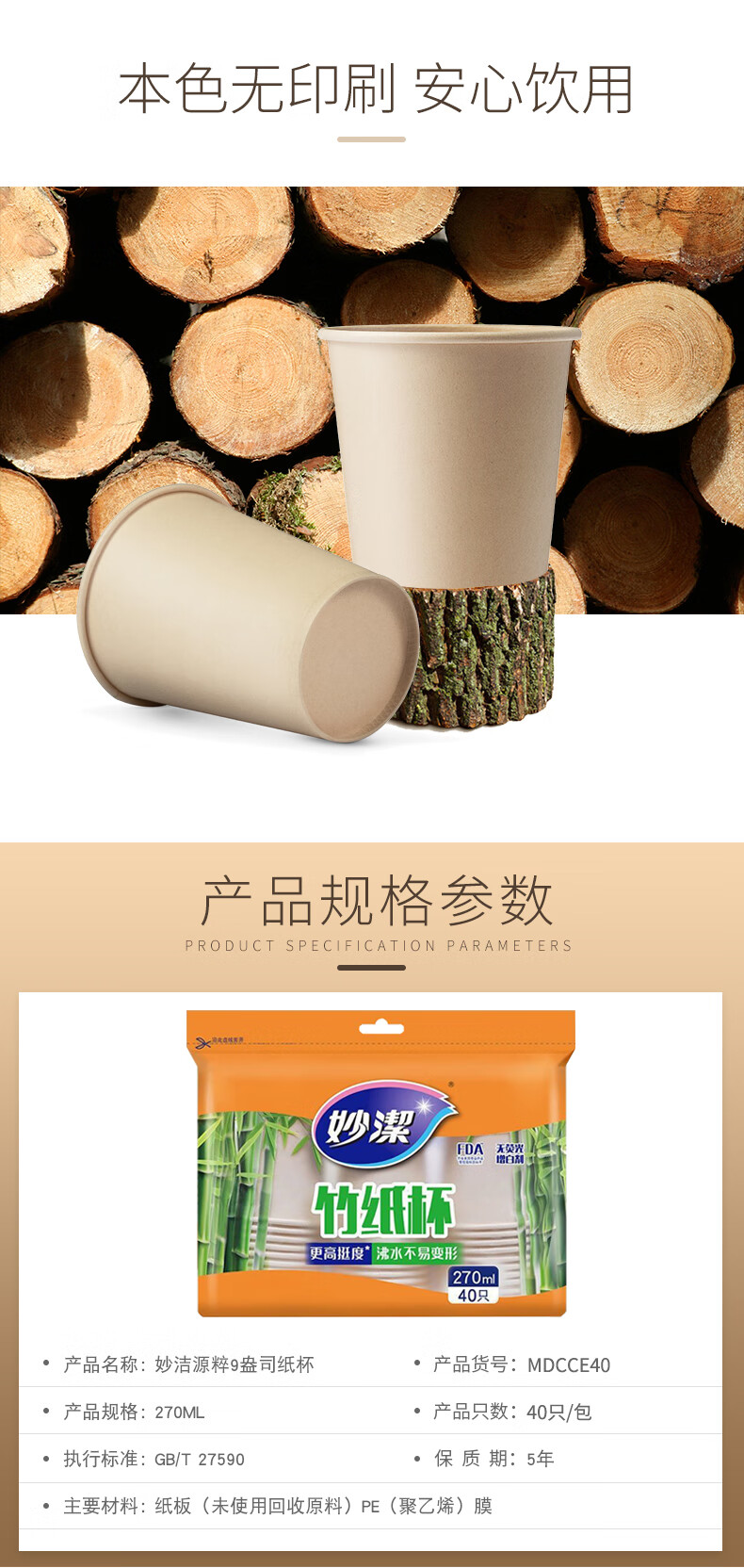 妙洁源纸纸杯270ml 40只/包