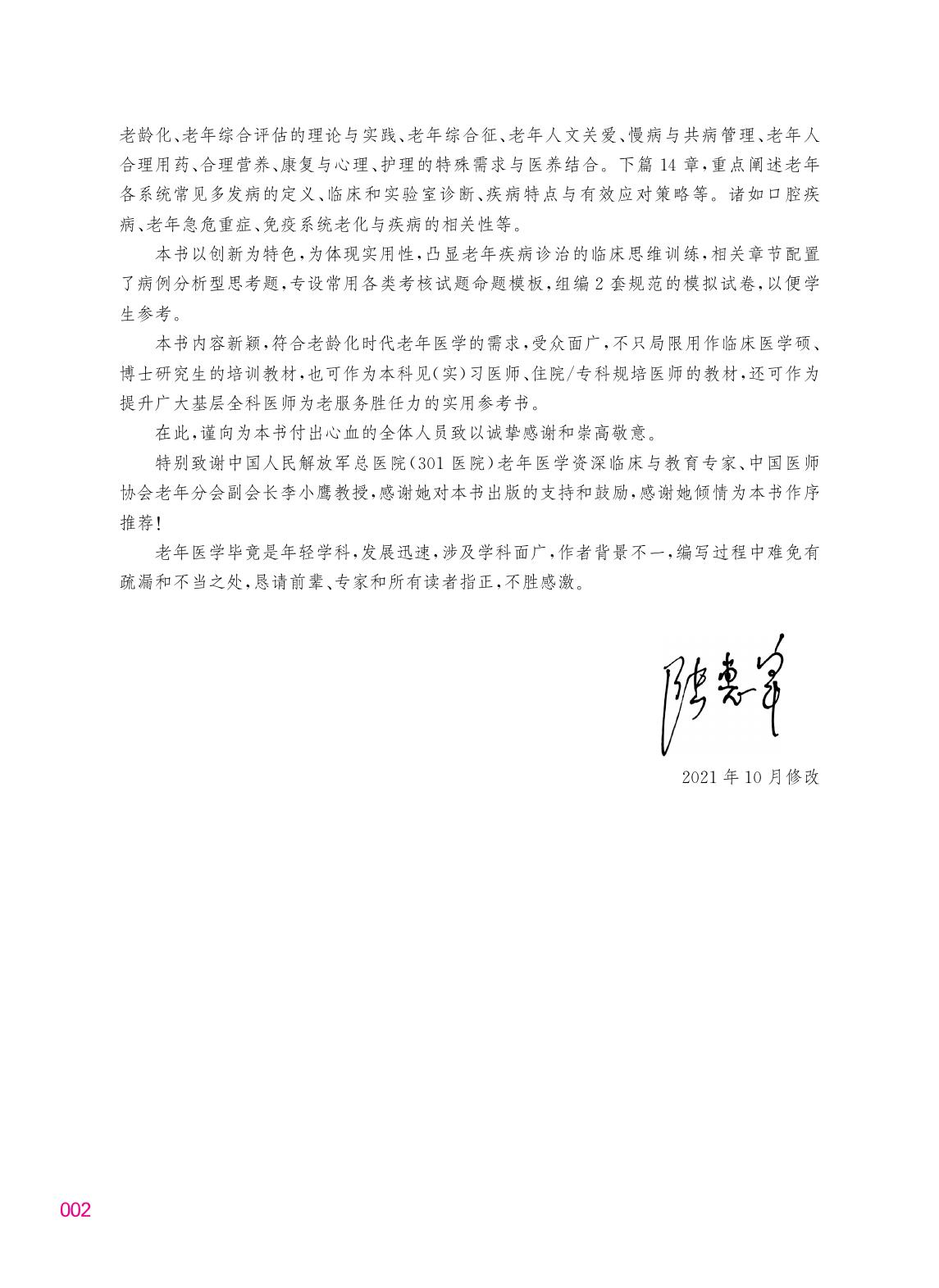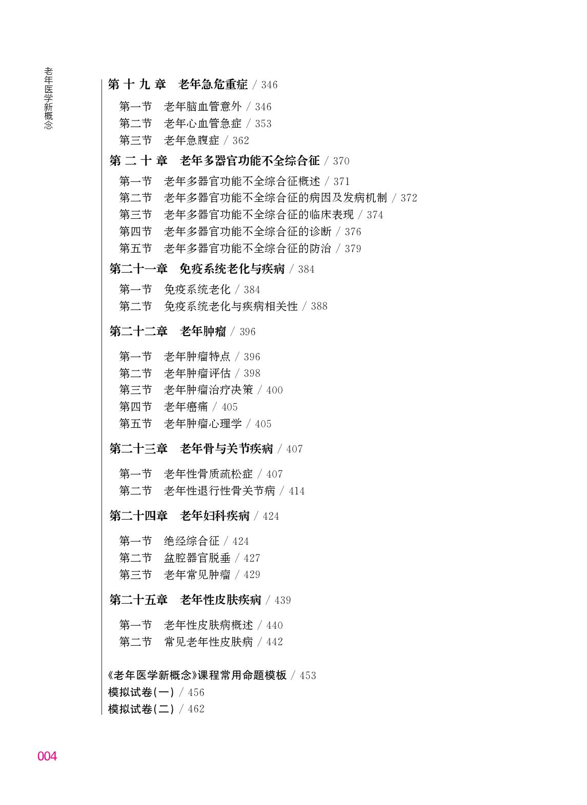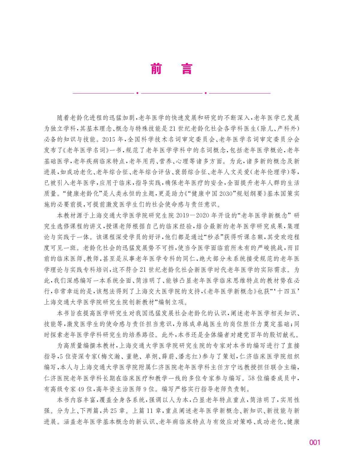 本书旨在提高医学研究生对我国社会老龄化现状的认识,阐述老年医学的基本概念、理念、新知识、新技能等,培养研究生提出问题、分析问题和解决问题的能力。分为上、下两篇,上篇重点阐述老年医学的新概念和共性问题,如衰老、增龄性失能、老年综合评估、老年综合征、老年人文关爱、老年康复与心理、老年营养、老年用药及护理特殊需求等;下篇从各系统具体疾病出发,重点阐述老年常见疾病的定义、病因、诊断、防治特点和有效应对策略等。本书可供研究型或临床型各医学学科硕士、博士研究生学习使用,也可供各医学学科的课程老师参考。