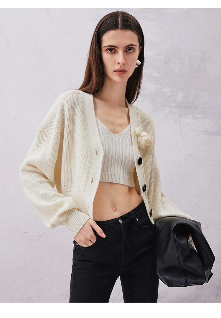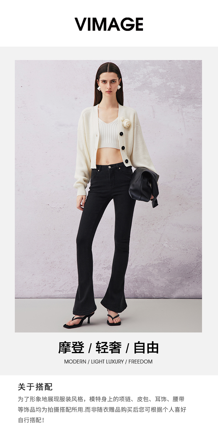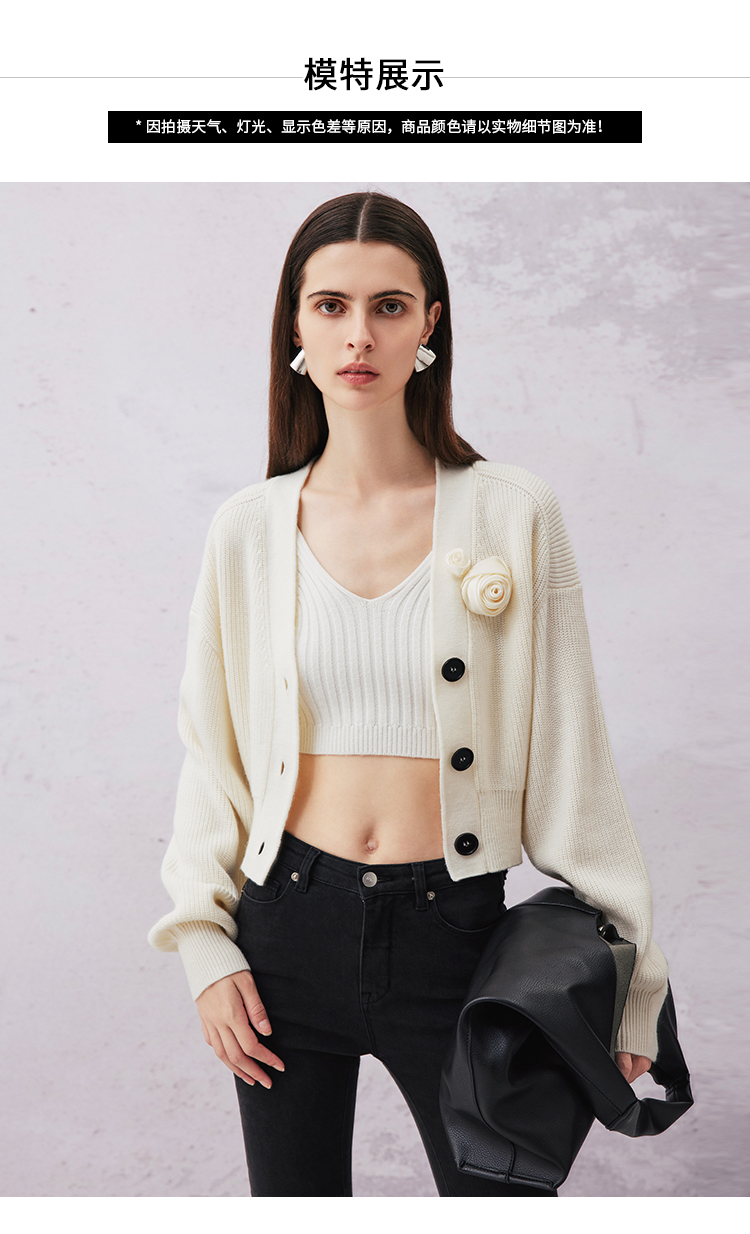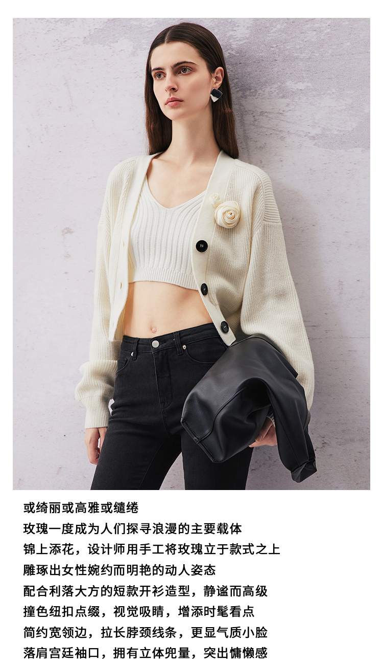 VIMAGE纬漫纪春季新款时尚气质百搭短款针织开衫V2101705
