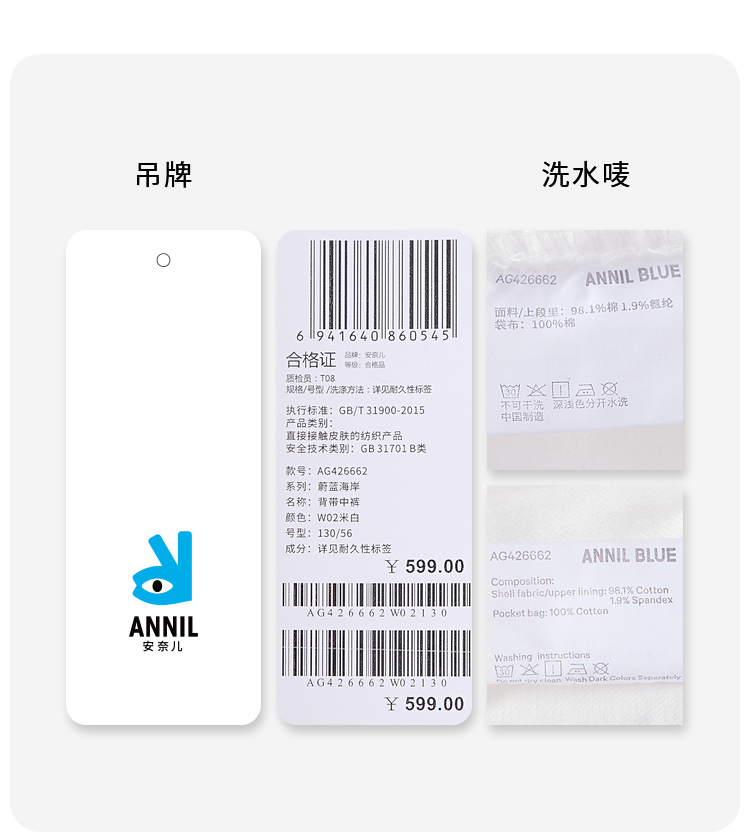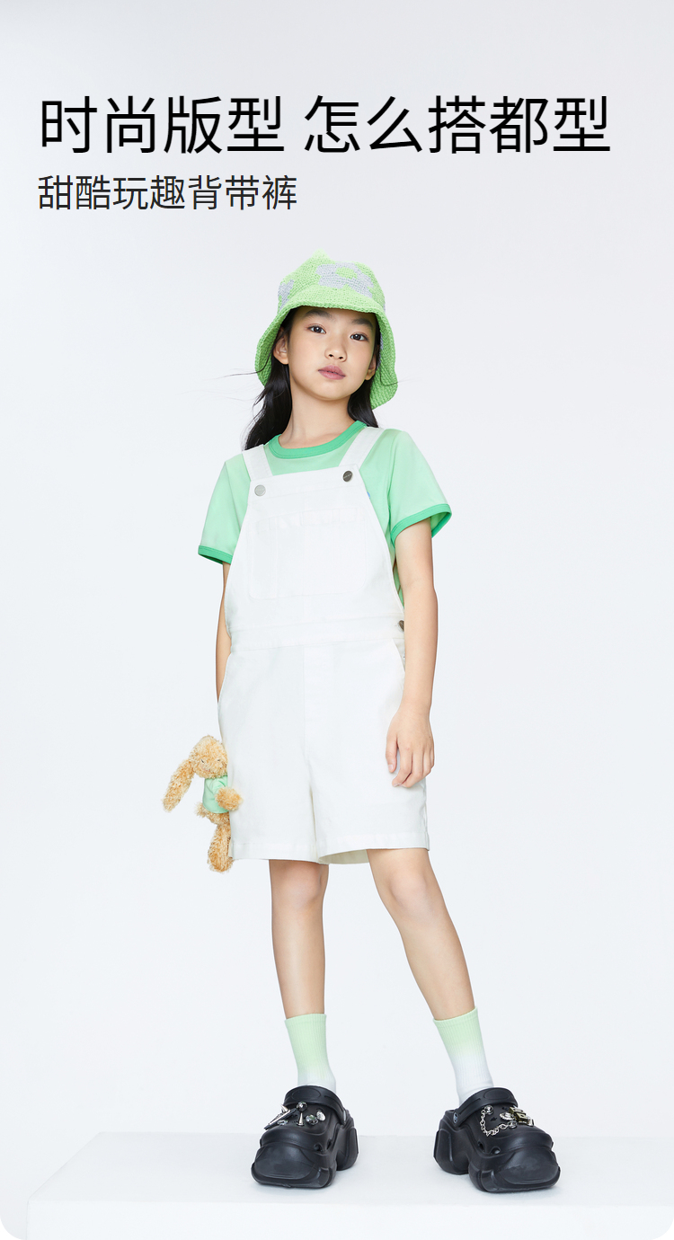女童时尚活力背带中裤BLUE新款安奈儿童装实体店同款AG426662