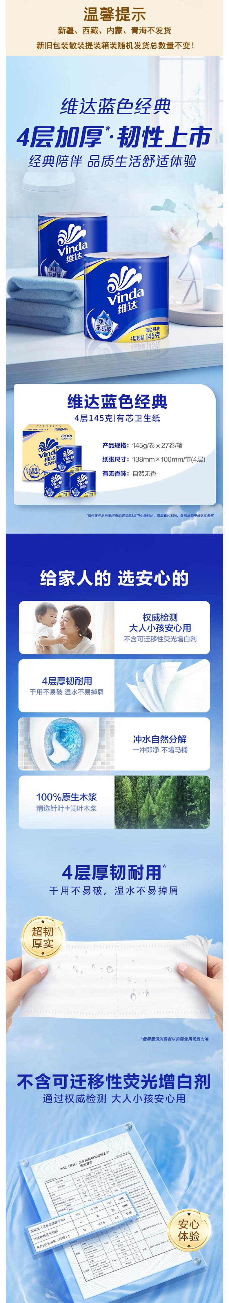 Vinda维达 蓝色经典有芯卷纸4层145g*27卷 vwyx145-27r