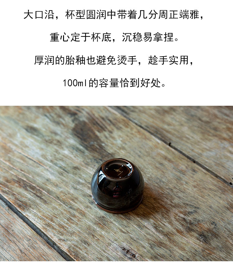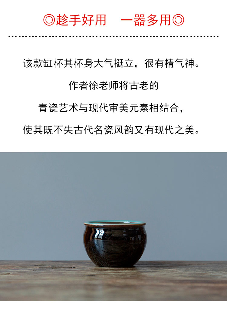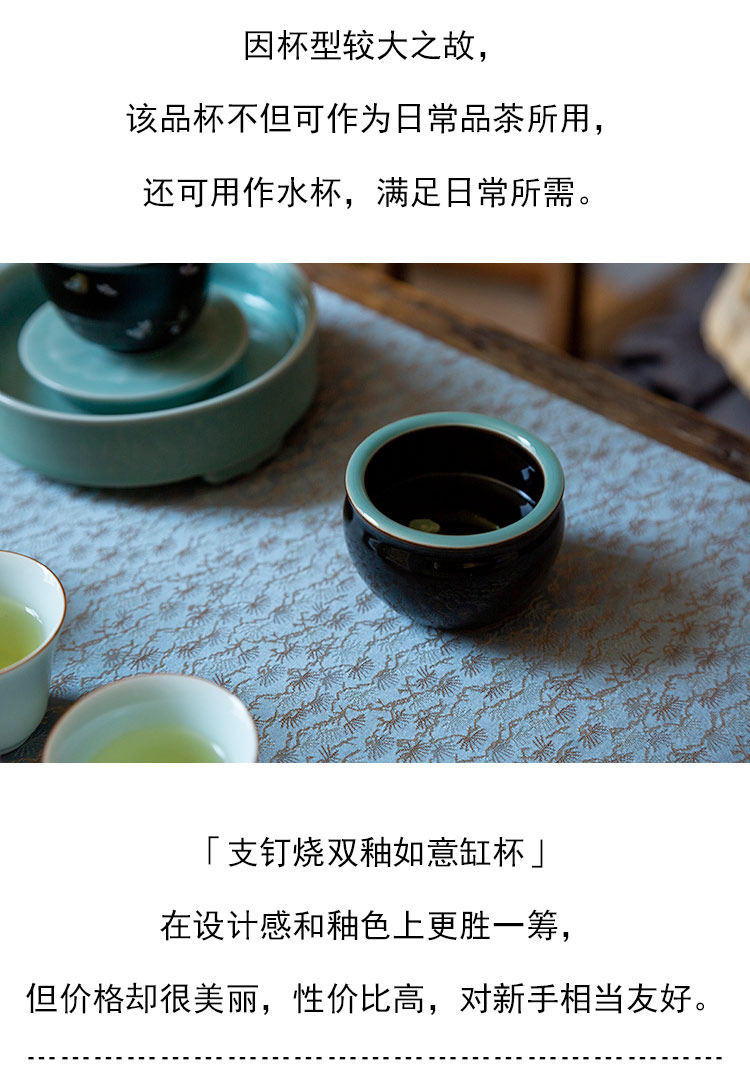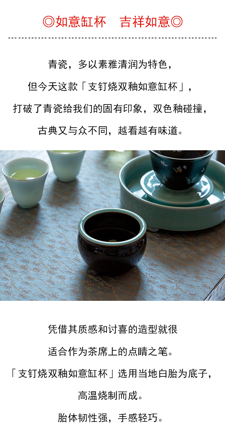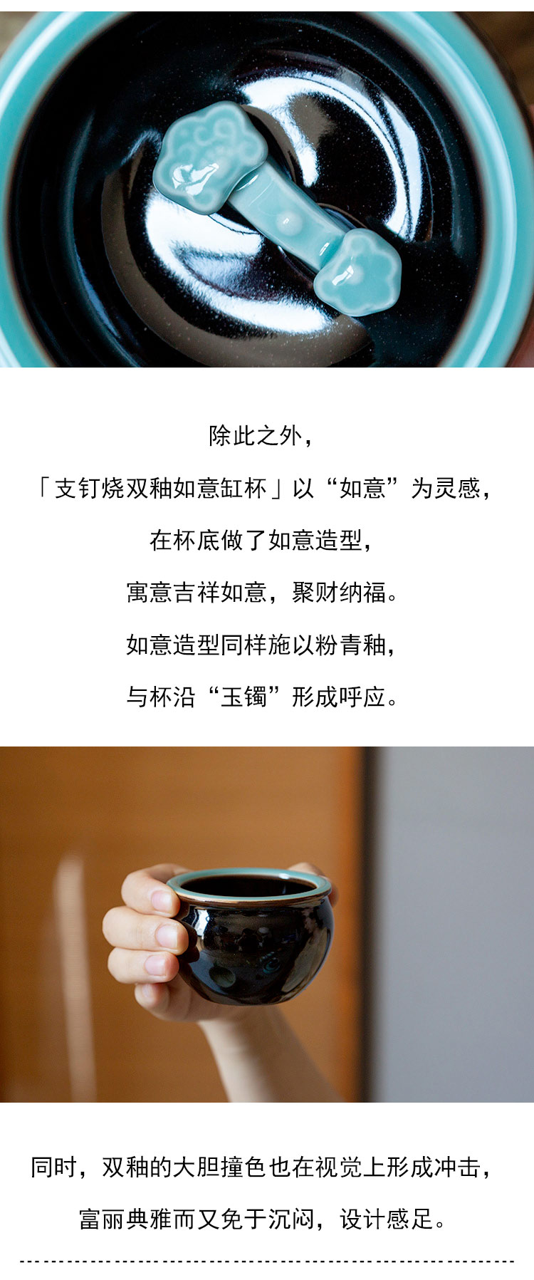 茶香记 青瓷支钉烧双釉如意缸杯100ml双色釉茶杯古典优雅低调内敛