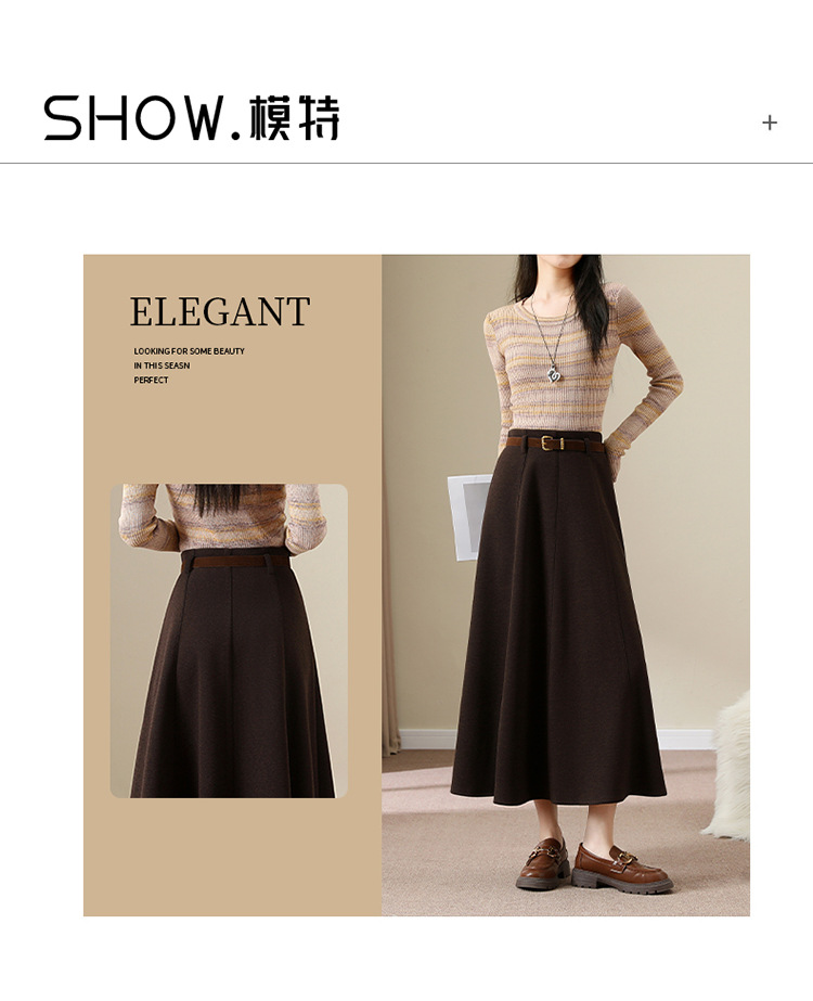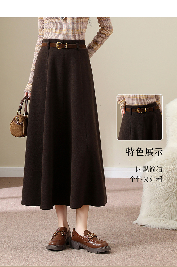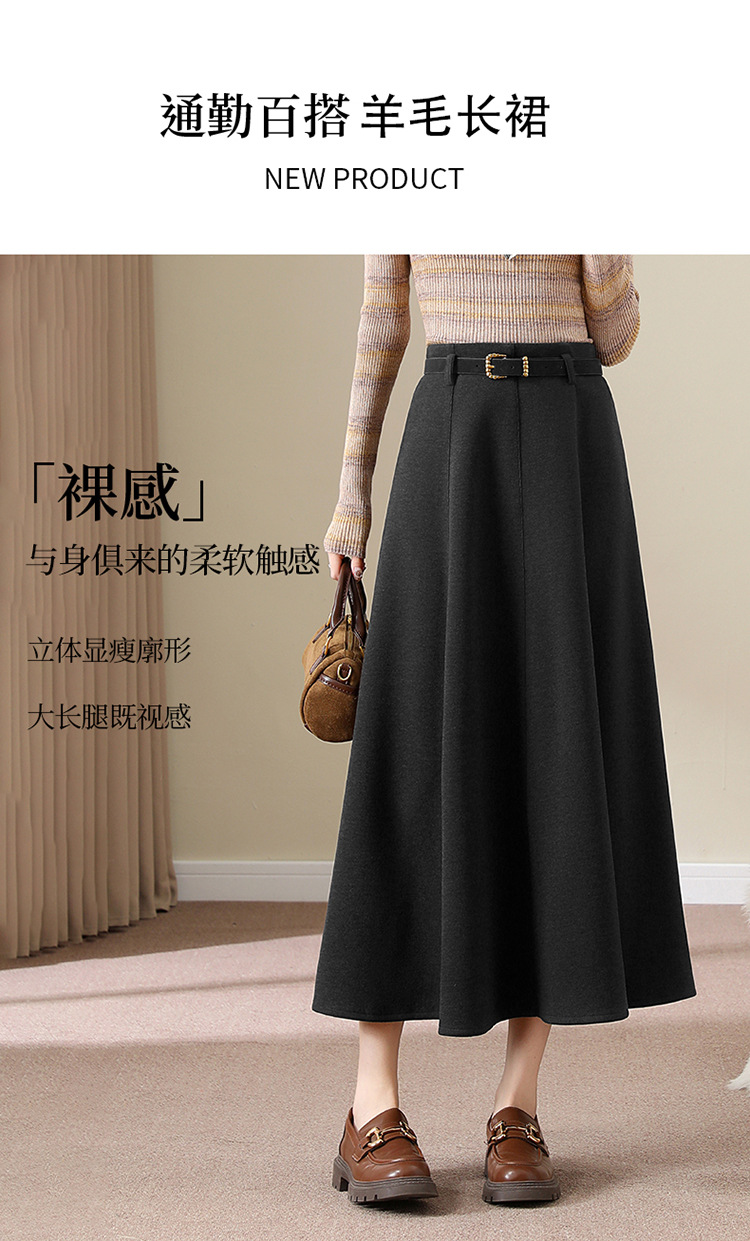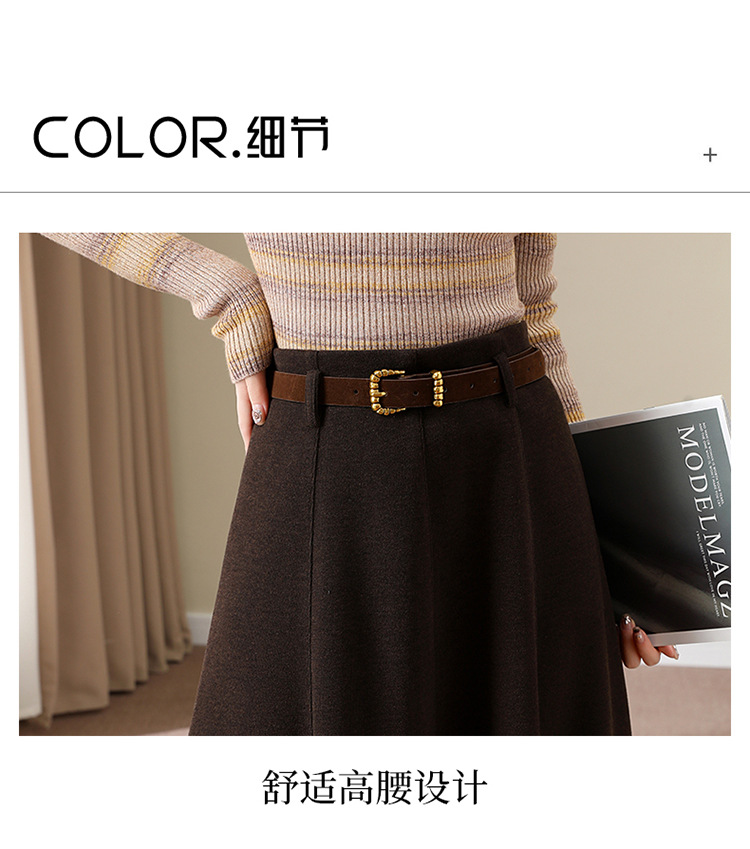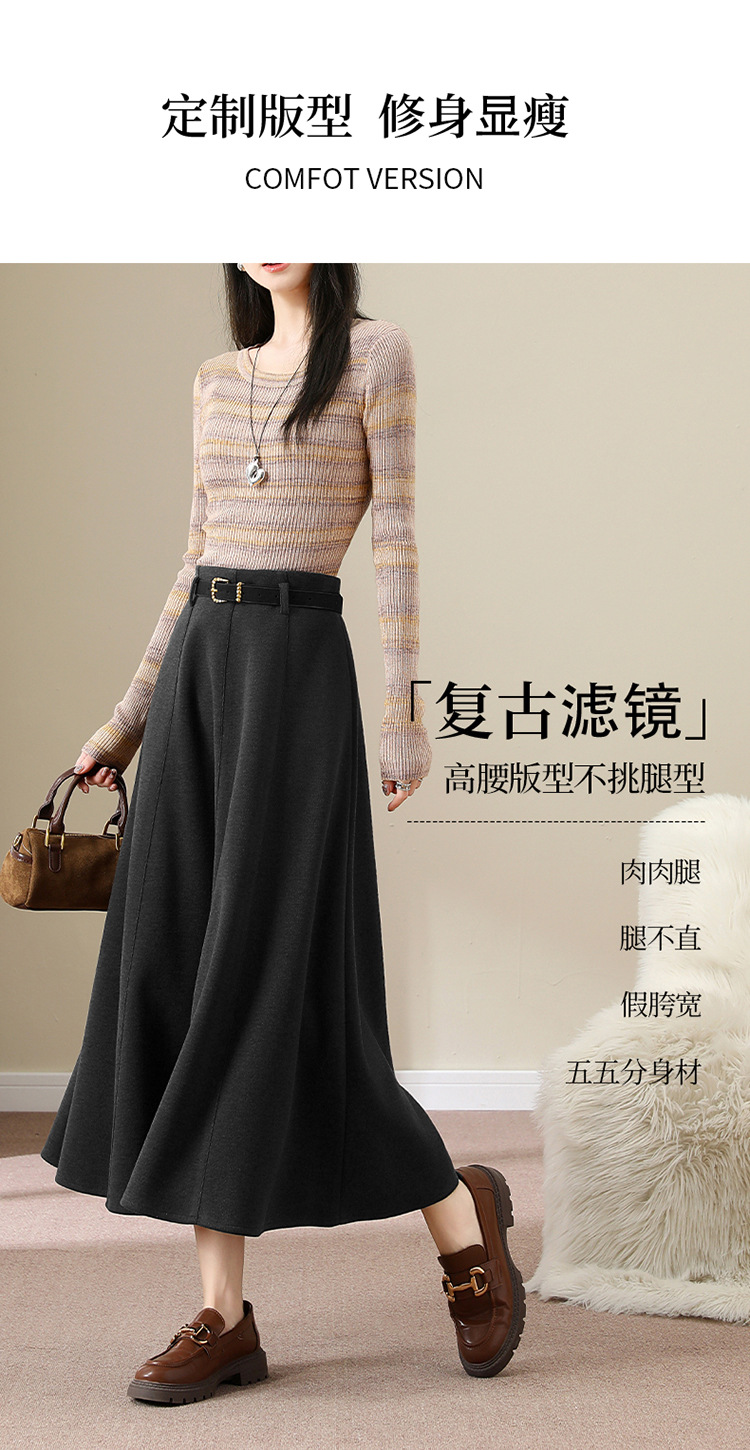 QYM M278-Y羊毛呢半身裙气质长裙高腰A字裙大摆裙 商品图4