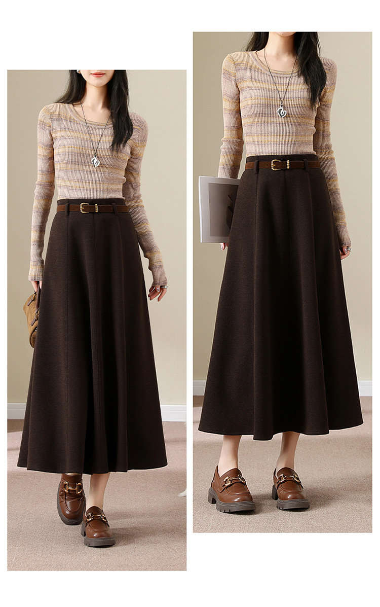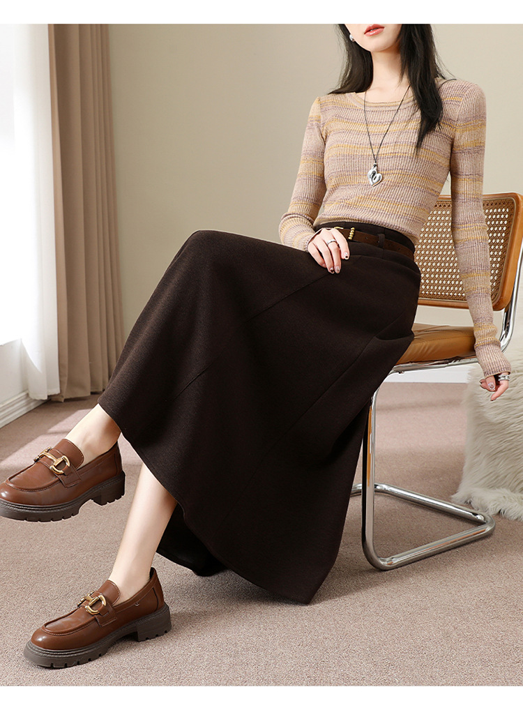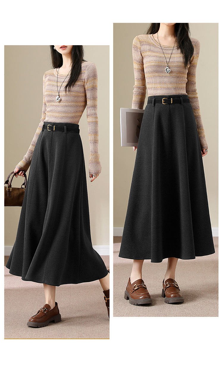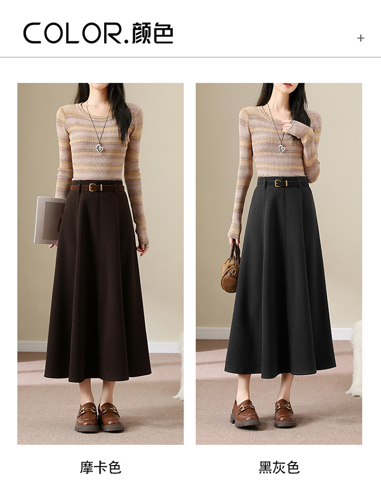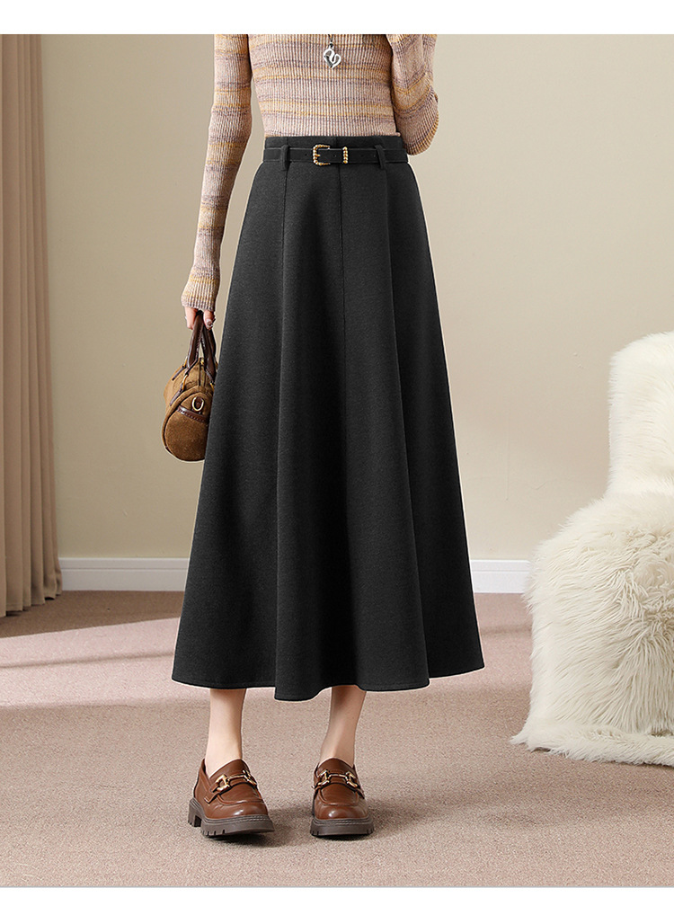 QYM M278-Y羊毛呢半身裙气质长裙高腰A字裙大摆裙 商品图4