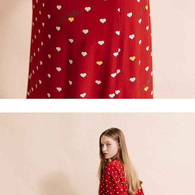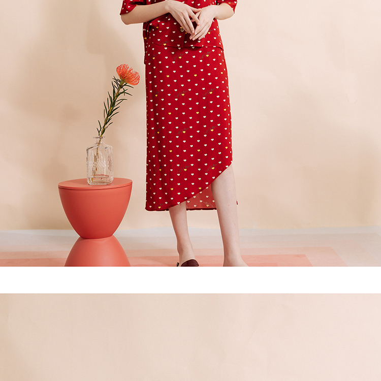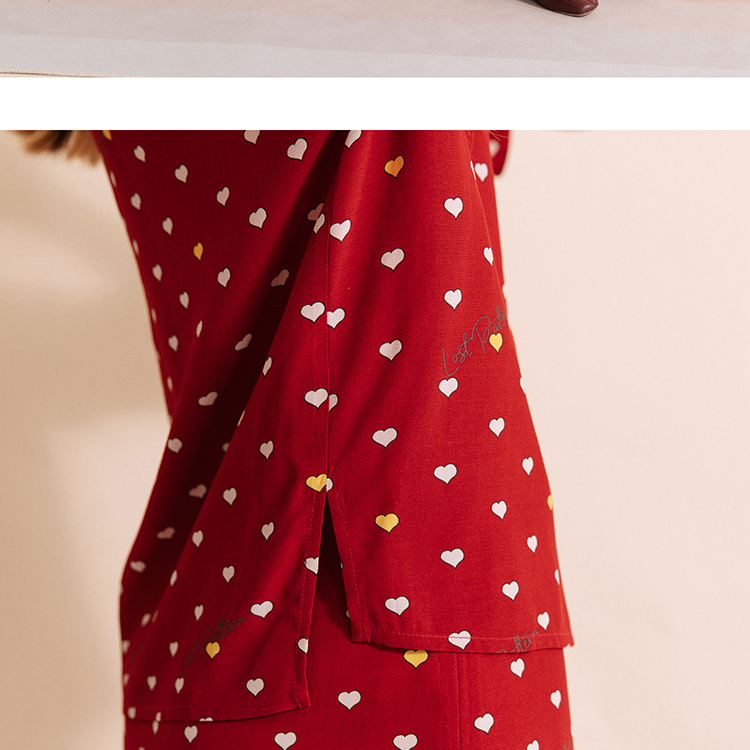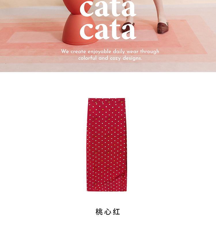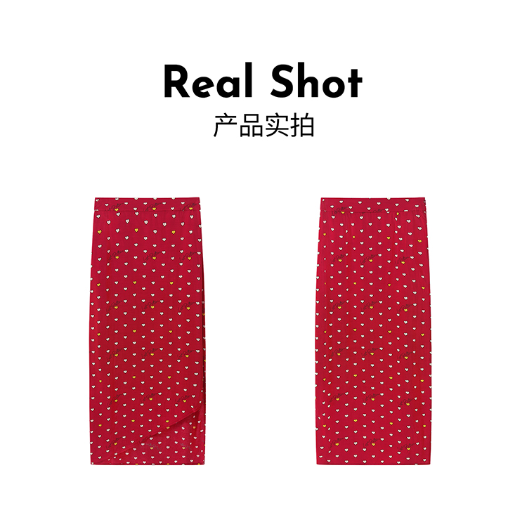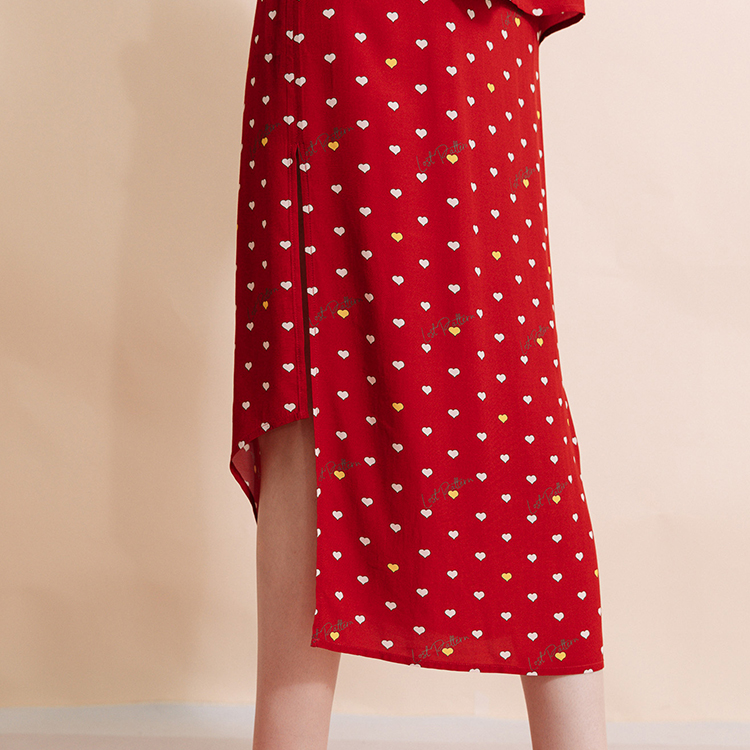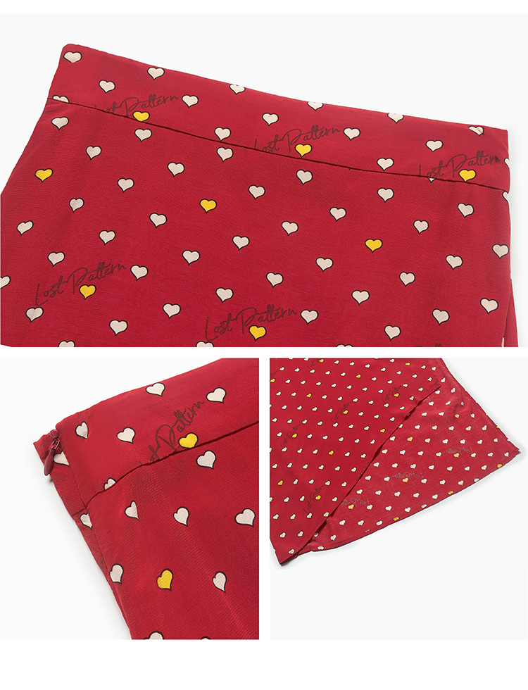 复古桃心迷笛半身裙 桃心红