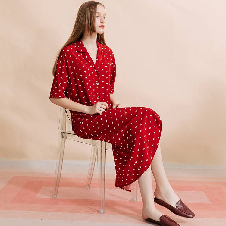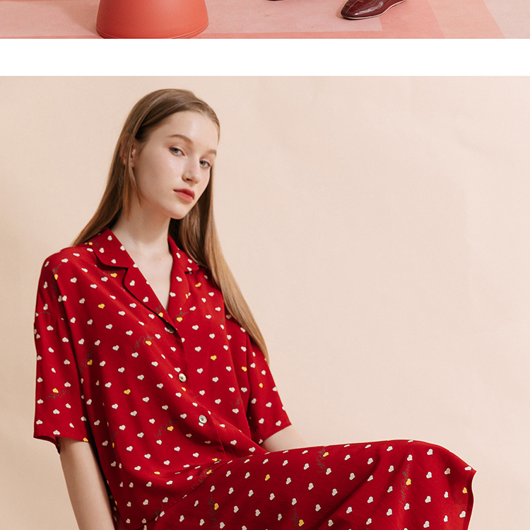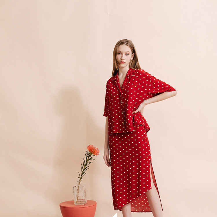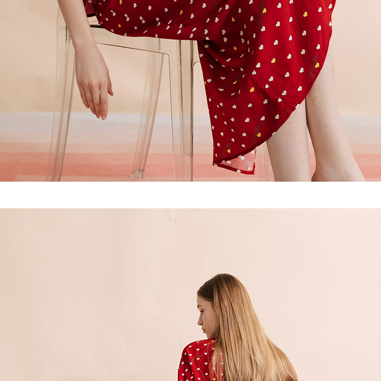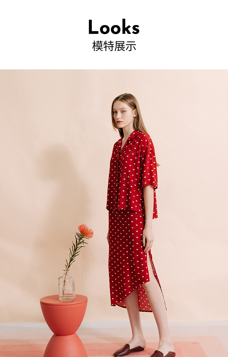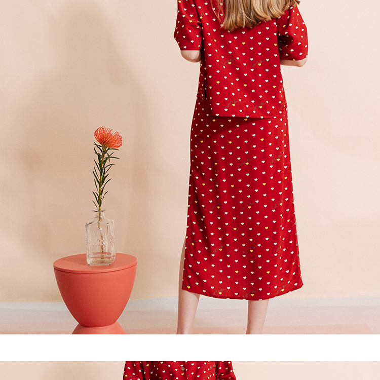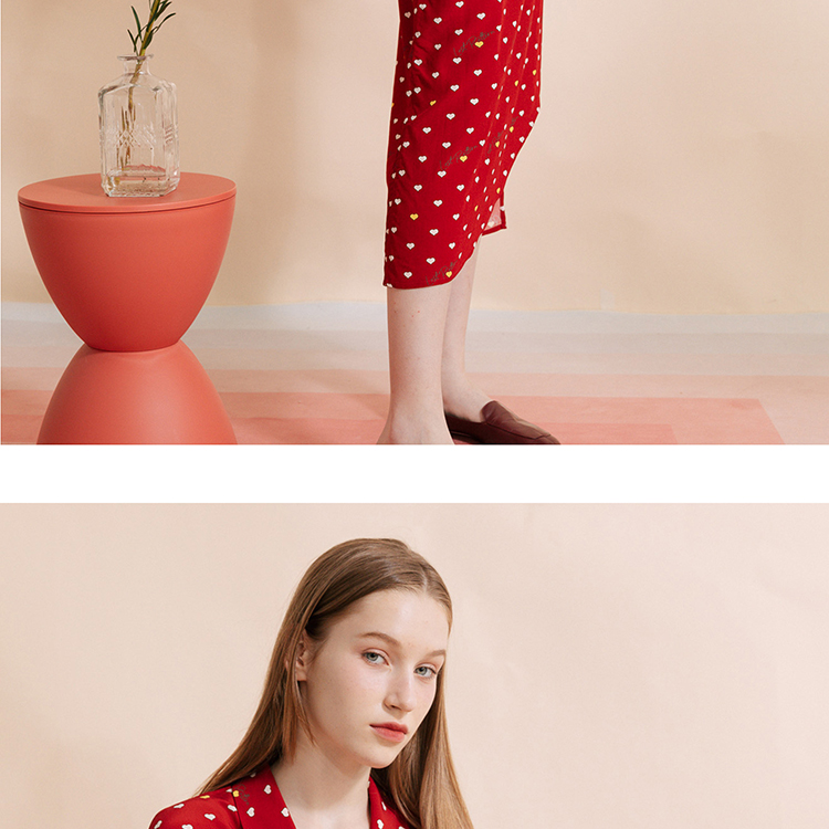 复古桃心迷笛半身裙 桃心红