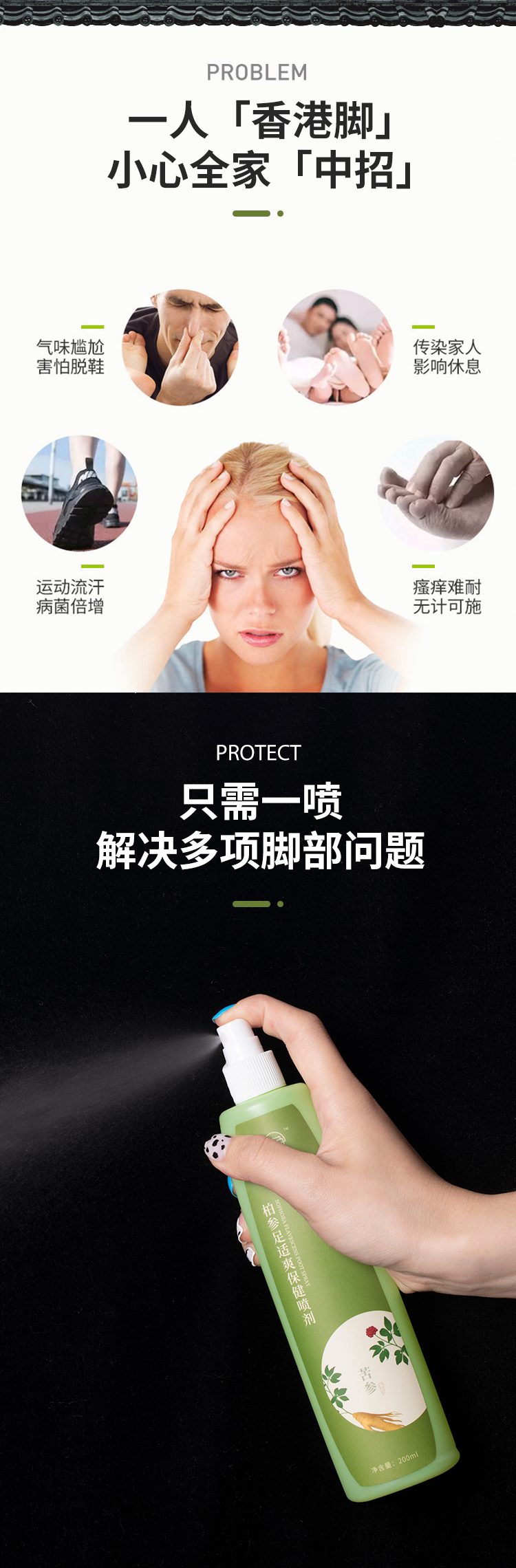 【买2送1 买3送2 买5送3】柏参足适爽保健喷剂植物配方告别脚臭足气脚干裂1瓶守护全家