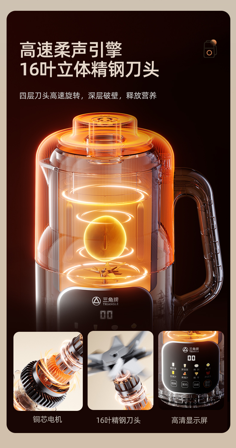 三角牌破壁机隔音罩家用豆浆机全自动小型新款多功能无渣榨汁机