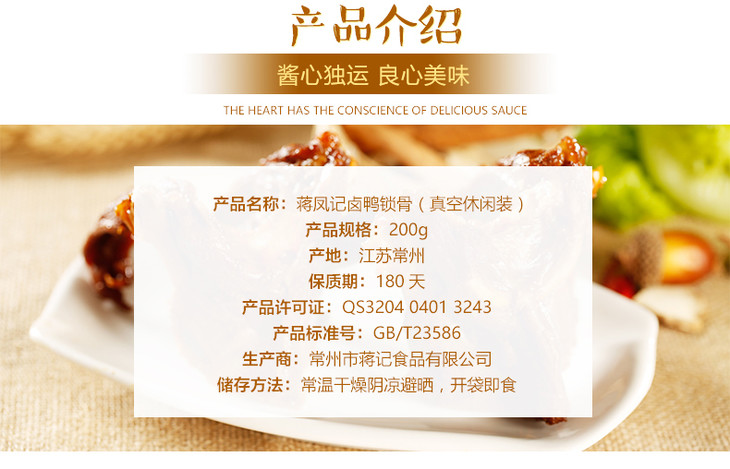 【常州馆】蒋凤记 卤味鸭锁骨 熟食鸭架鸭肉特产零食小吃下酒菜开袋即食休闲真空装 200g