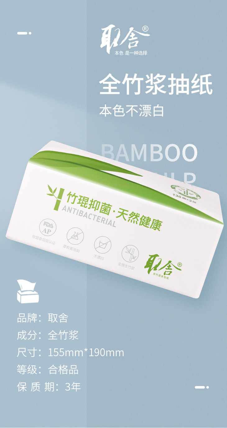取舍全竹浆本色抽纸单箱装(18包/箱 )