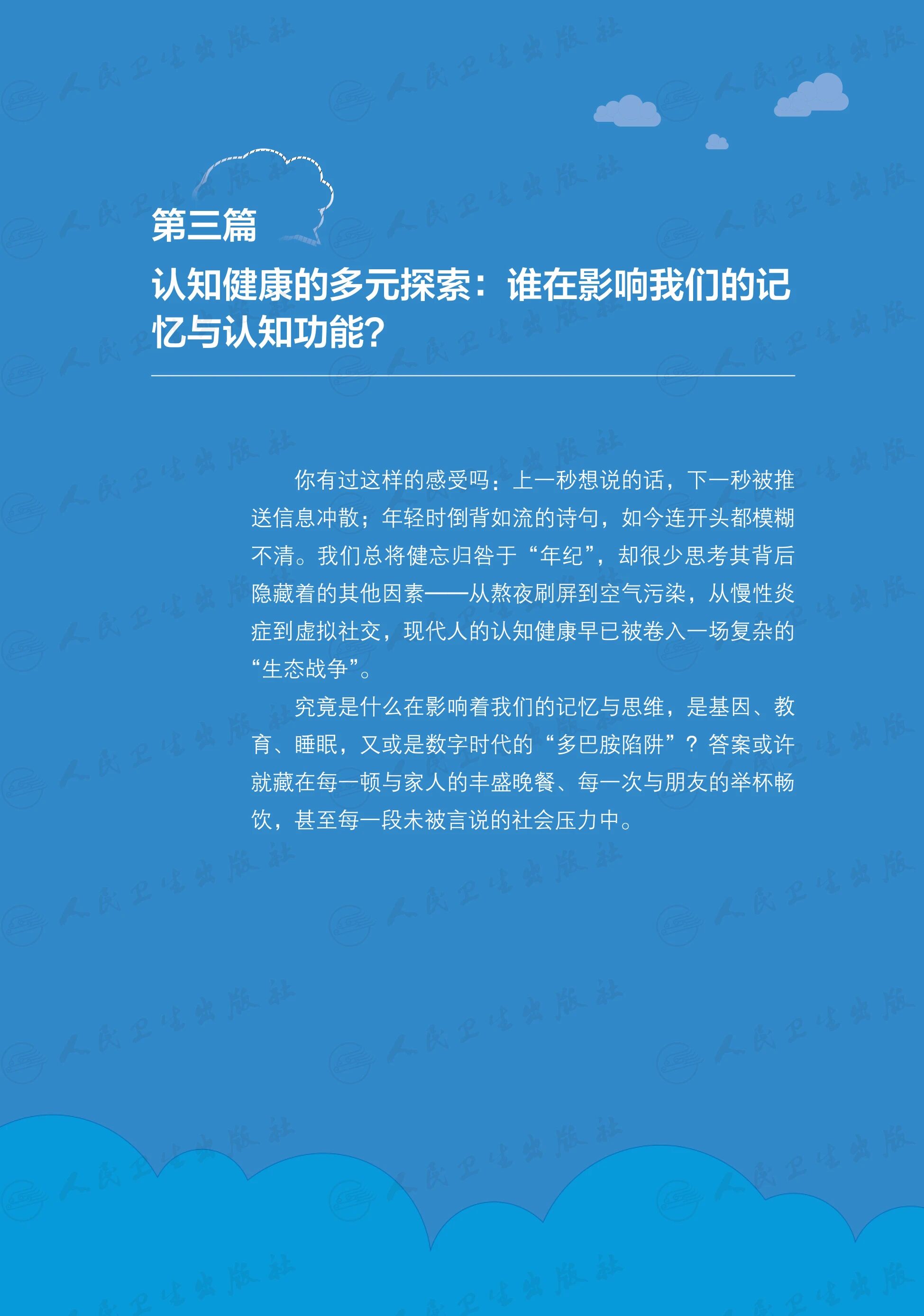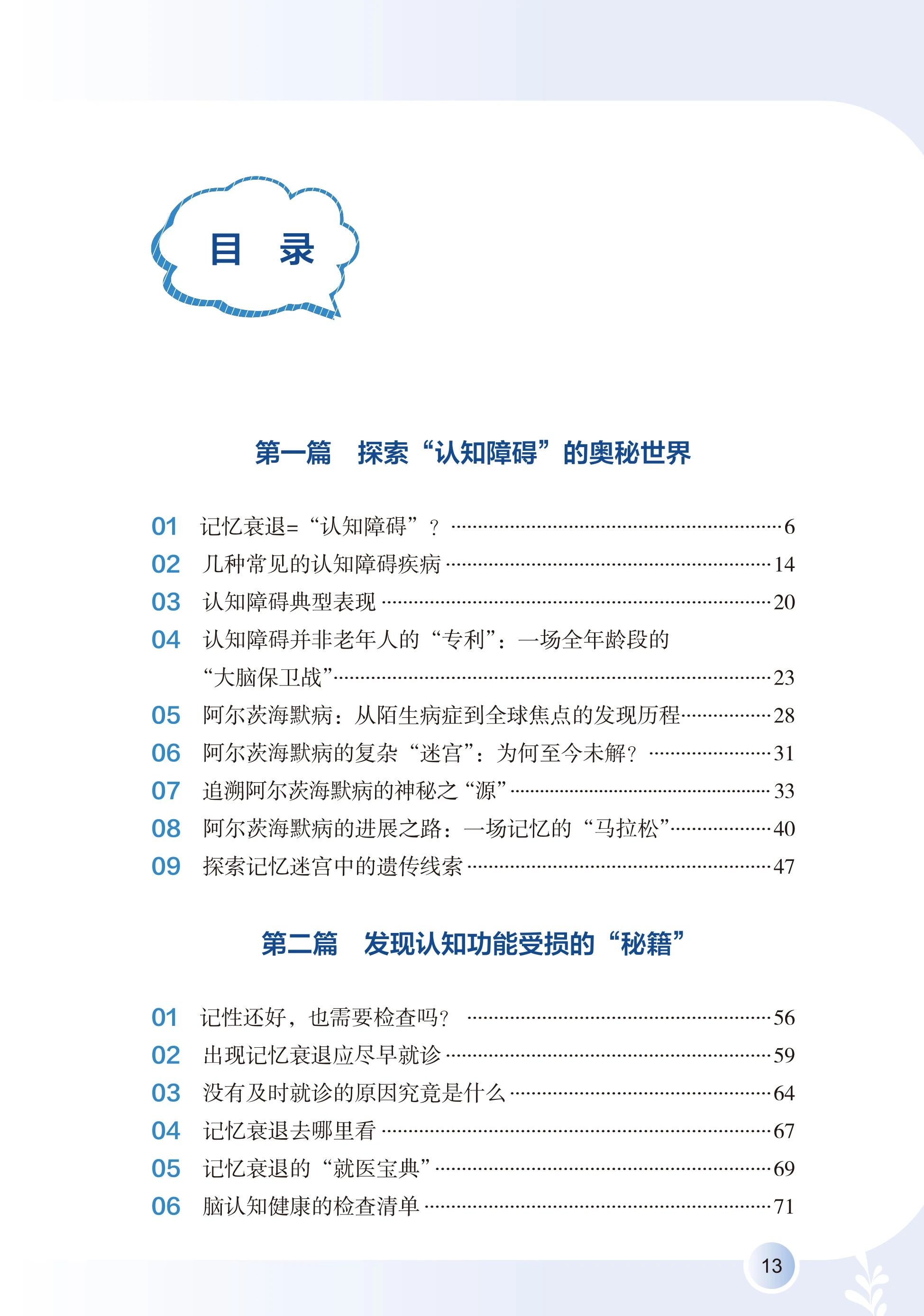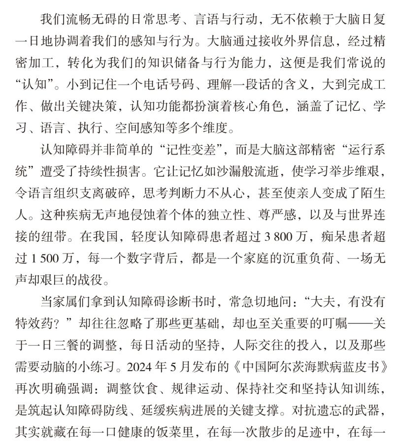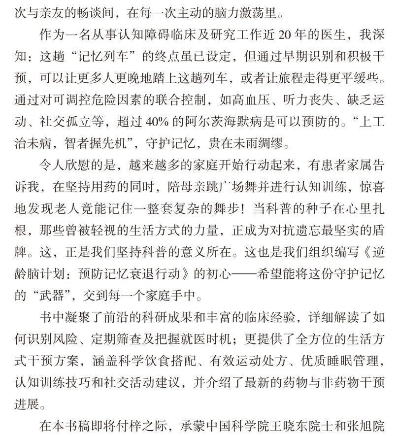 本书凝聚了前沿的科研成果和编者们丰富的临床经验,详细解读了如何识别认知障碍的风险、定期筛查及把握就医时机;更提供了全方位的生活方式干预方案,涵盖科学饮食搭配、有效运动处方、优质睡眠管理,认知训练技巧和社交活动建议,并介绍了最新的药物与非药物干预进展。是一份守护记忆的“秘密武器”!
