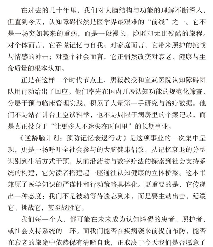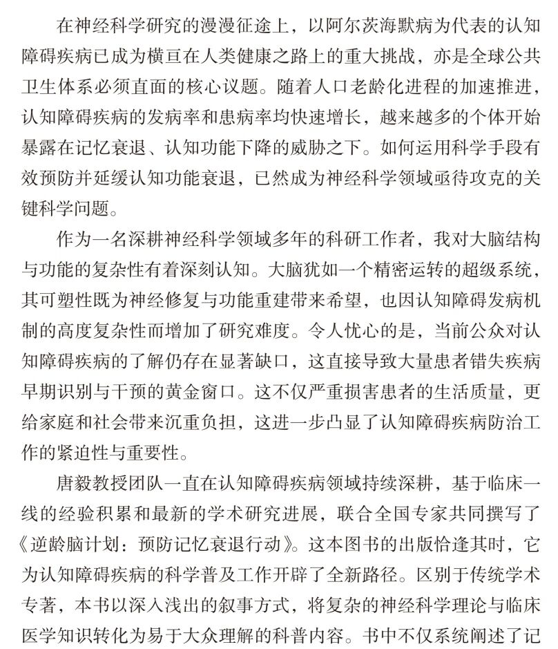 用专业力量守护清晰记忆与品质人生:本书由唐毅教授主编,编委均为深耕认知障碍领域多年的“实战”专家。本书是集体智慧的结晶,凝聚了编写团队多年的专业经验与研究成果,为读者提供了极具权威性的预防记忆衰退方案。