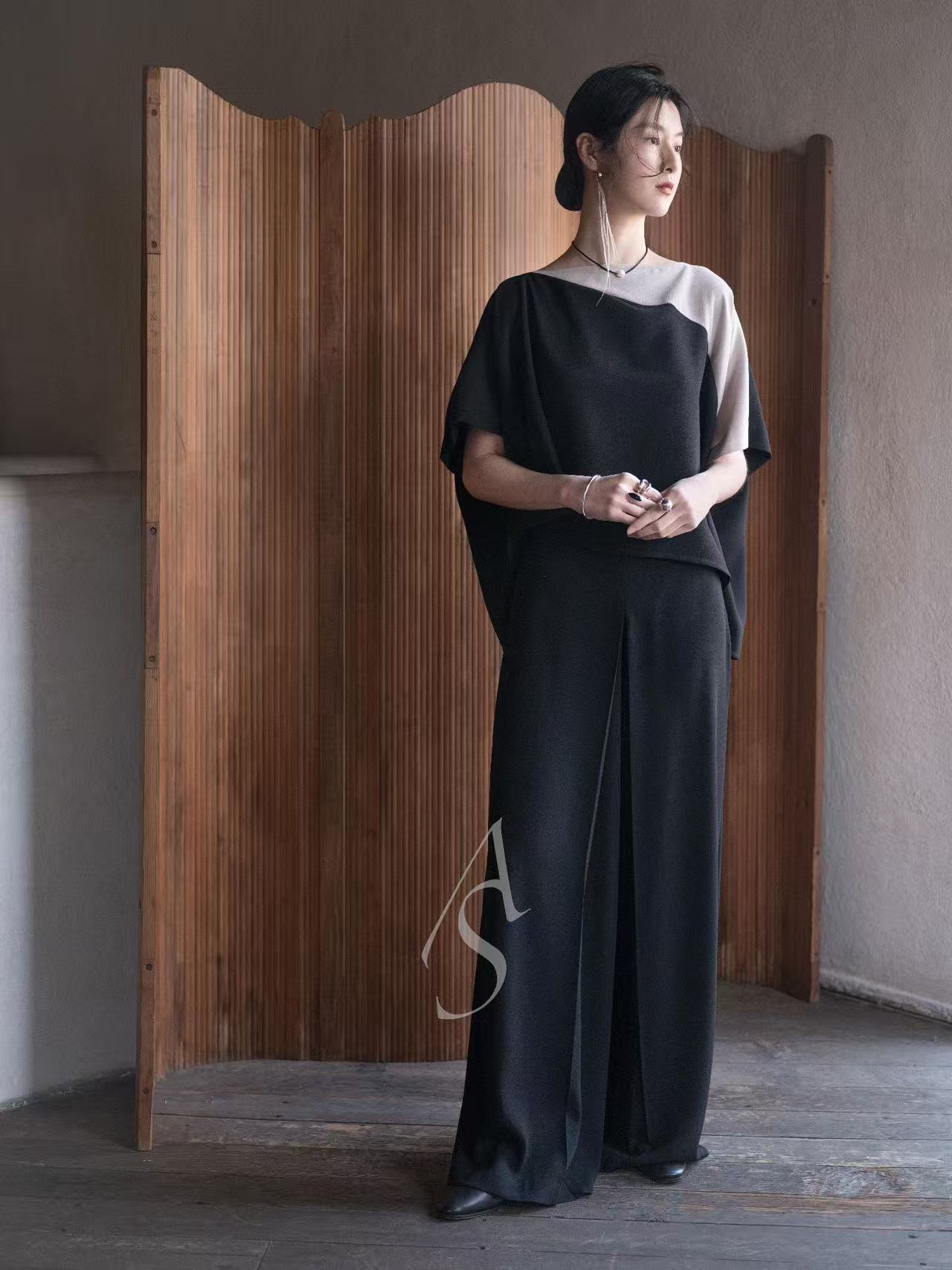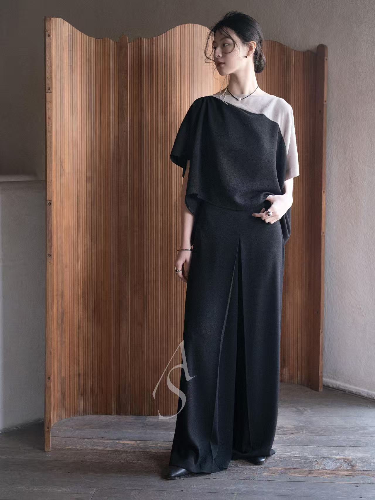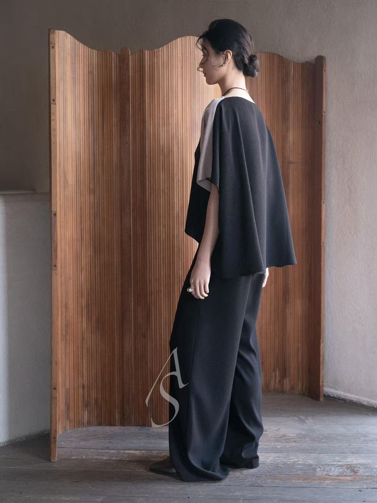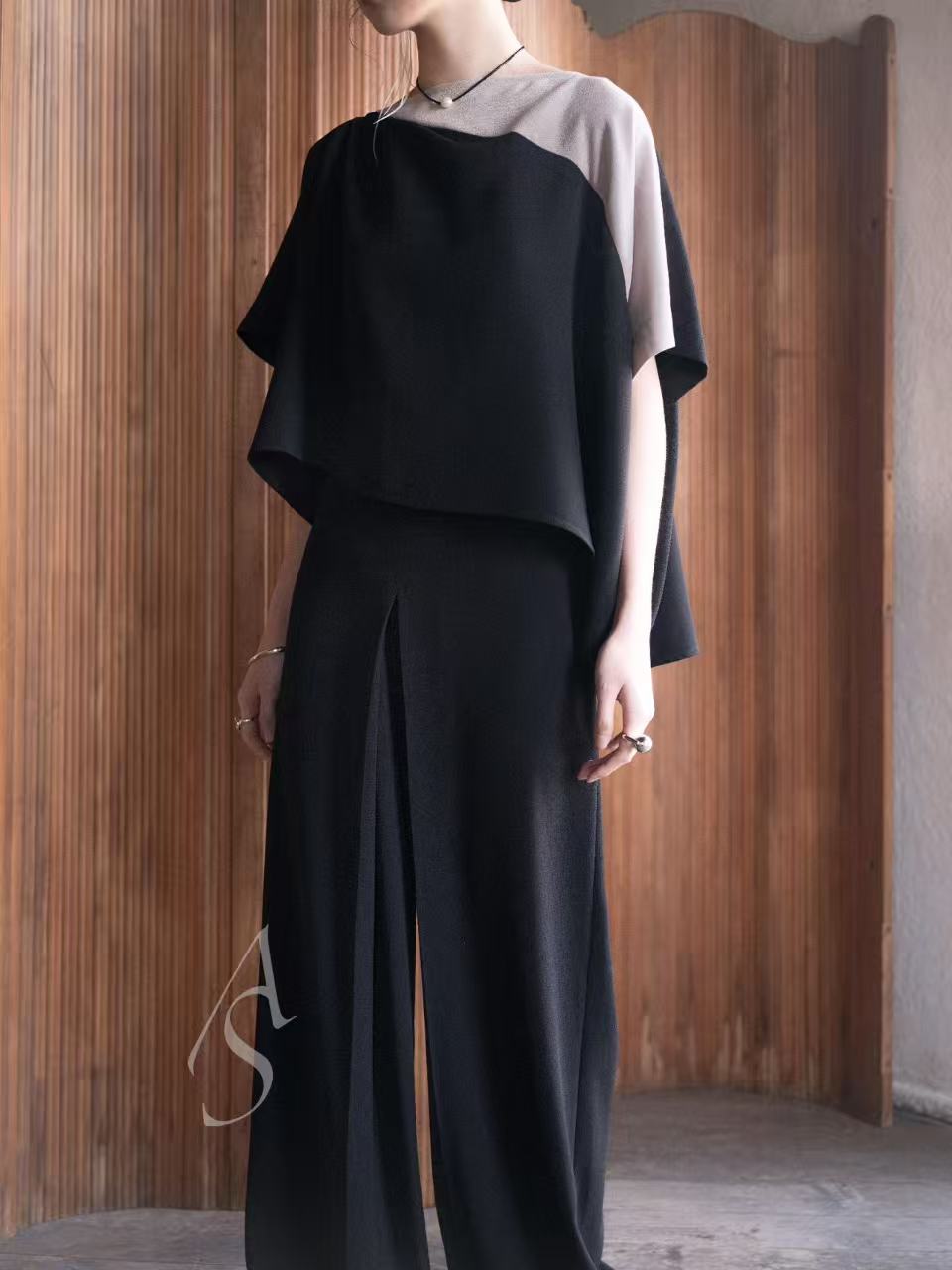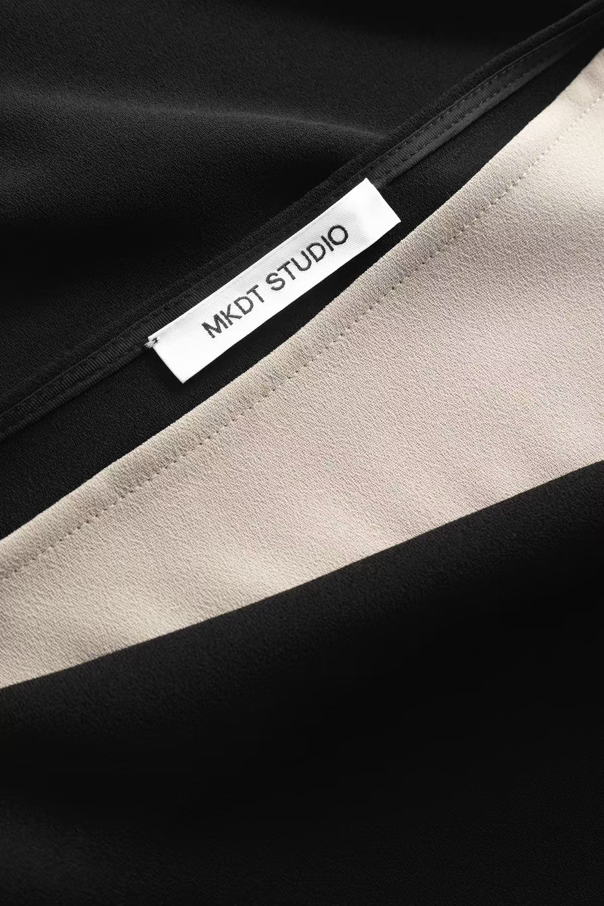 Mark Kenly Domino Tan 26PS 黑沙拼色/沙色belinda绉纱一片式上衣