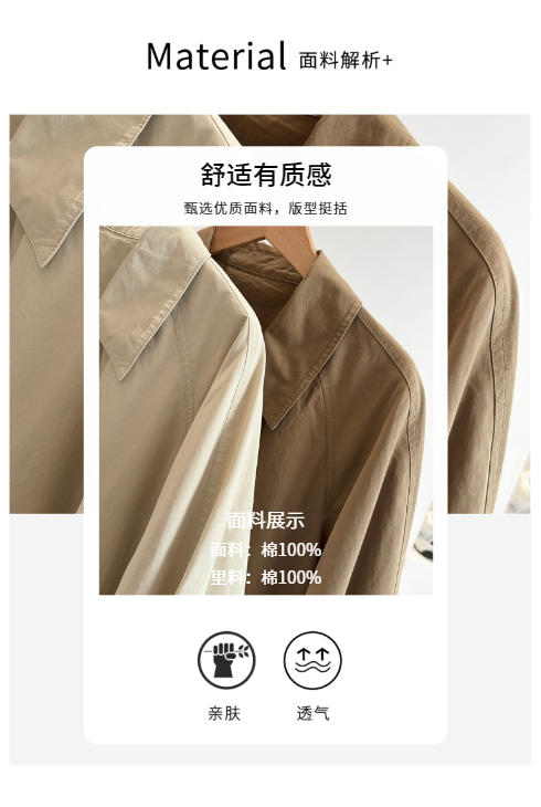 会员福利【敲重工!里外100棉】拉夏贝尔/La Chapelle简约气质纯棉风衣外套中长款英伦风别致时尚上衣