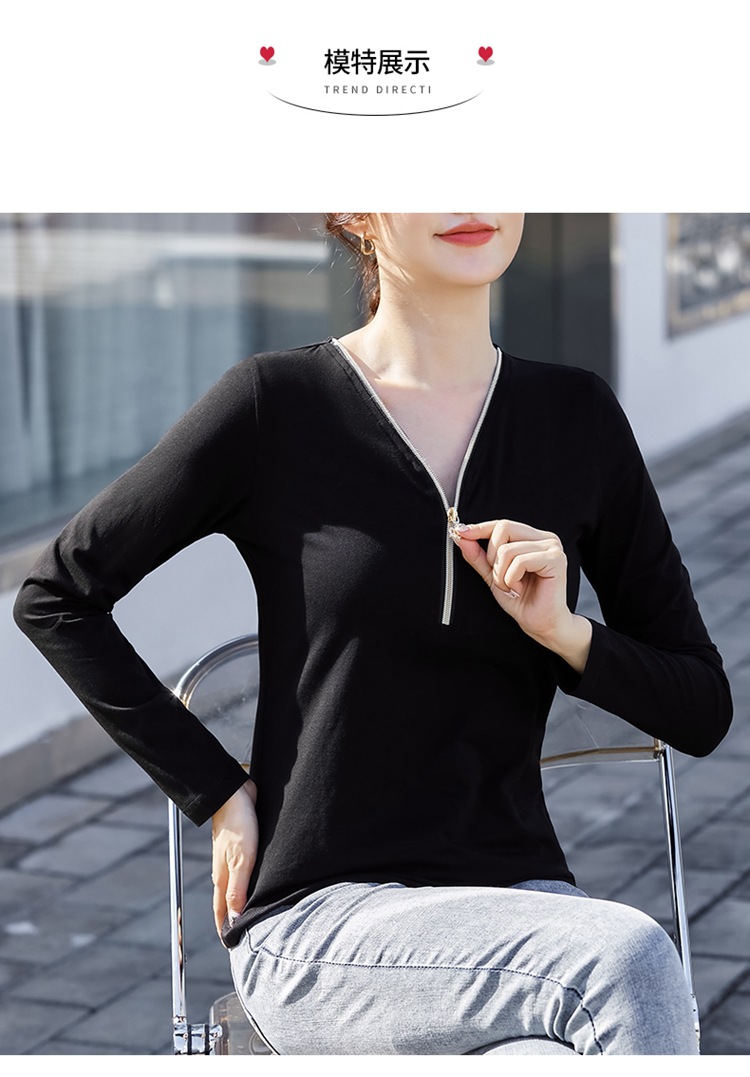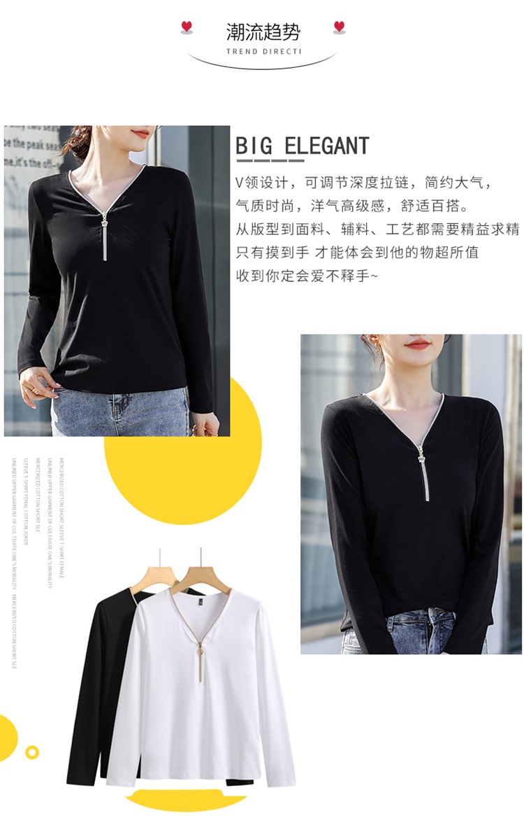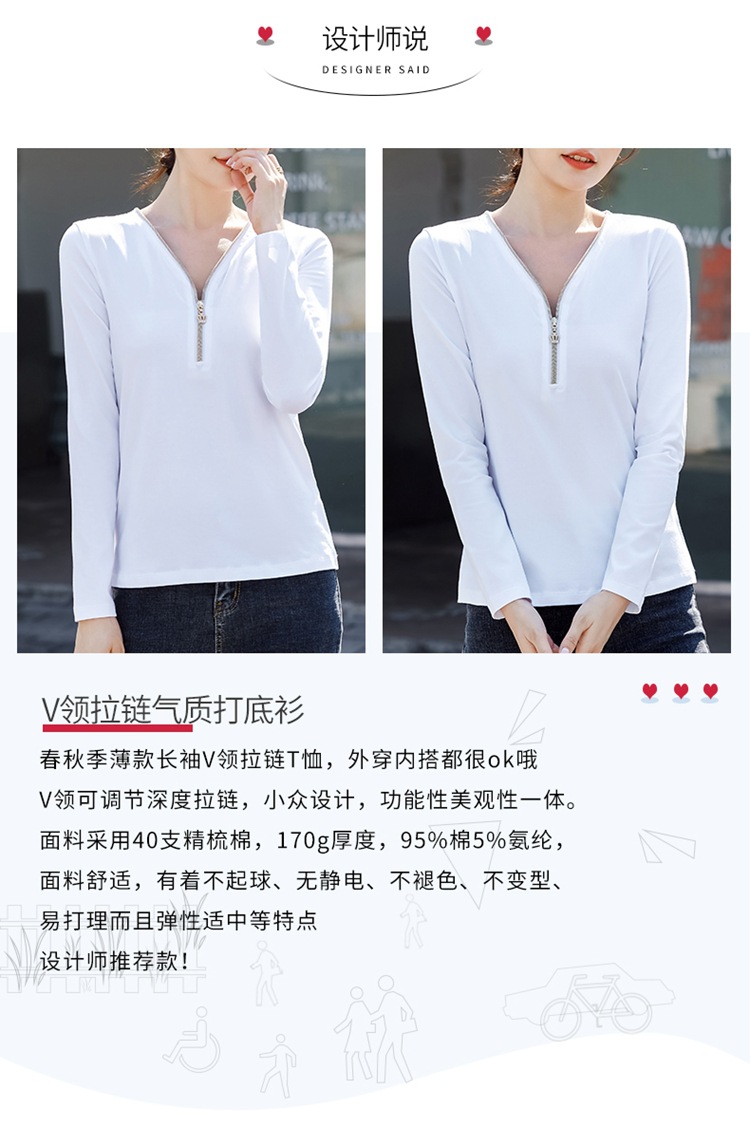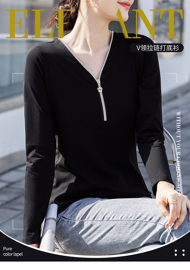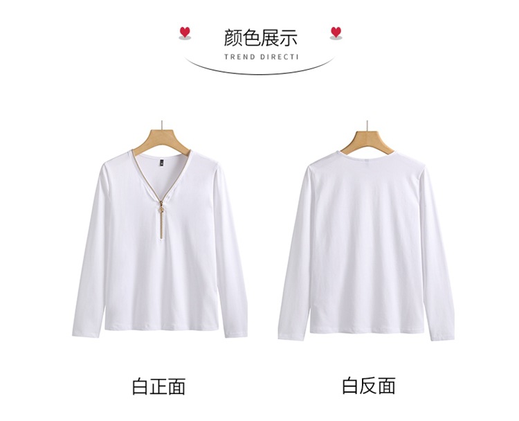 时尚百搭,V领可调节拉链棉质长袖女装T恤舒适洋气打底衫ZS-7310-1