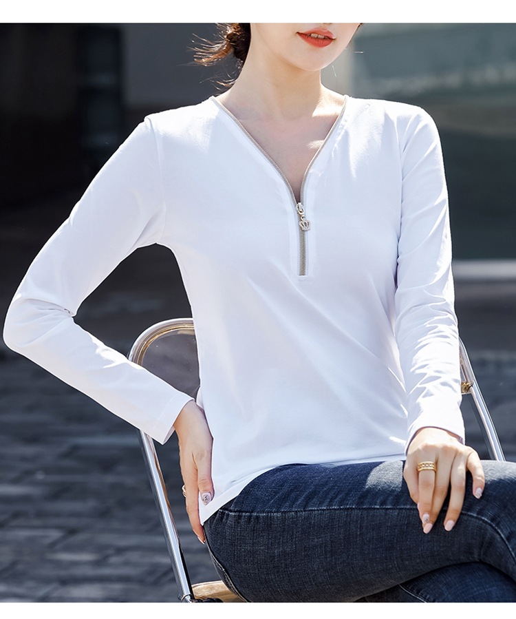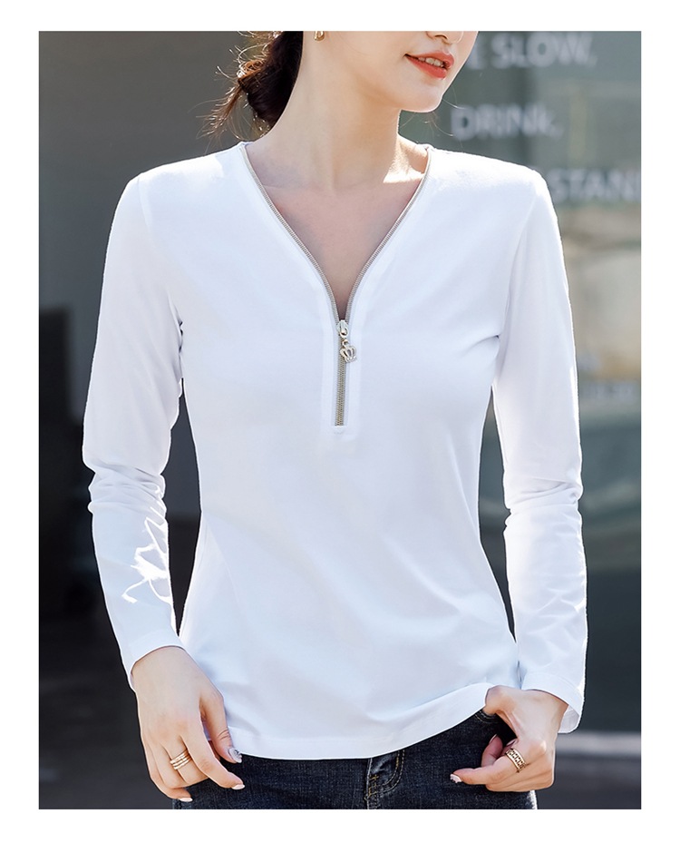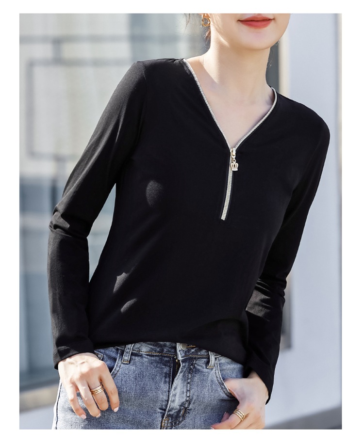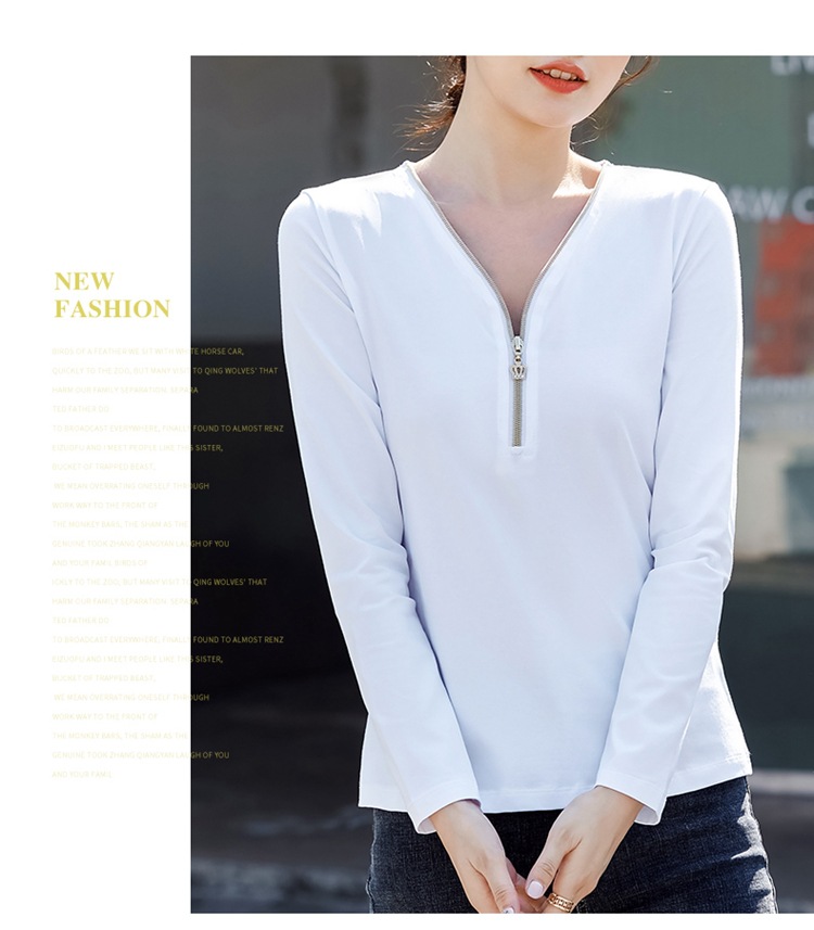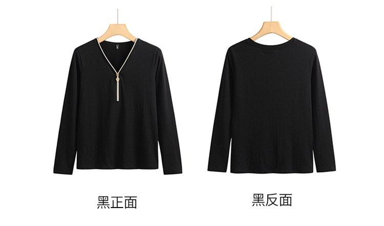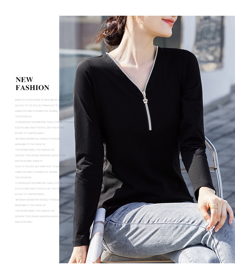 时尚百搭,V领可调节拉链棉质长袖女装T恤舒适洋气打底衫ZS-7310-1