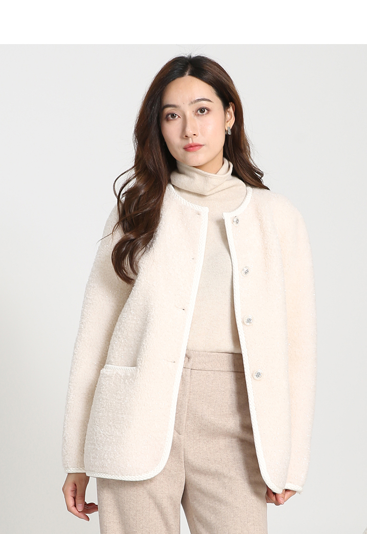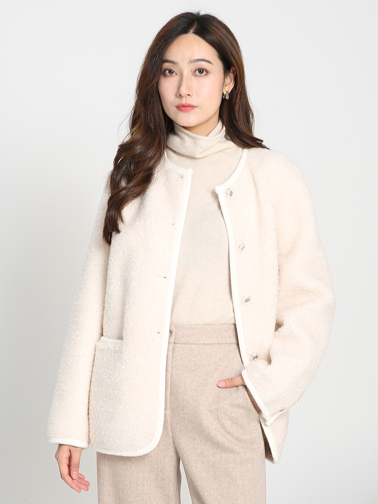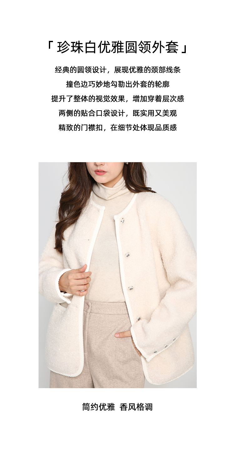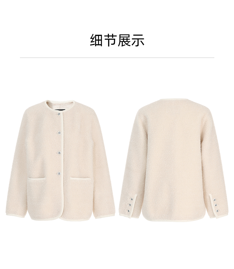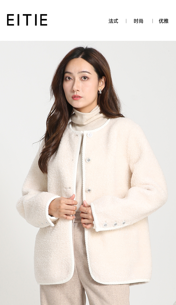 EITIE爱特爱时尚保暖毛绒羊剪毛大口袋气质圆领短外套冬新款D2403415