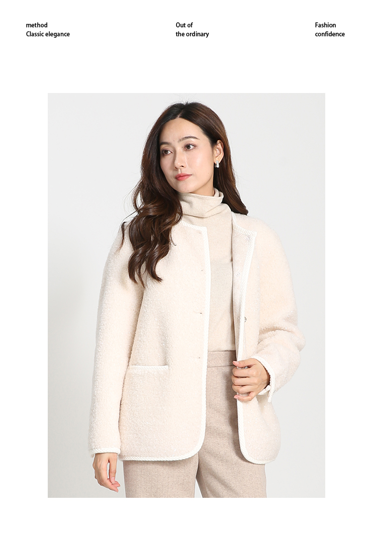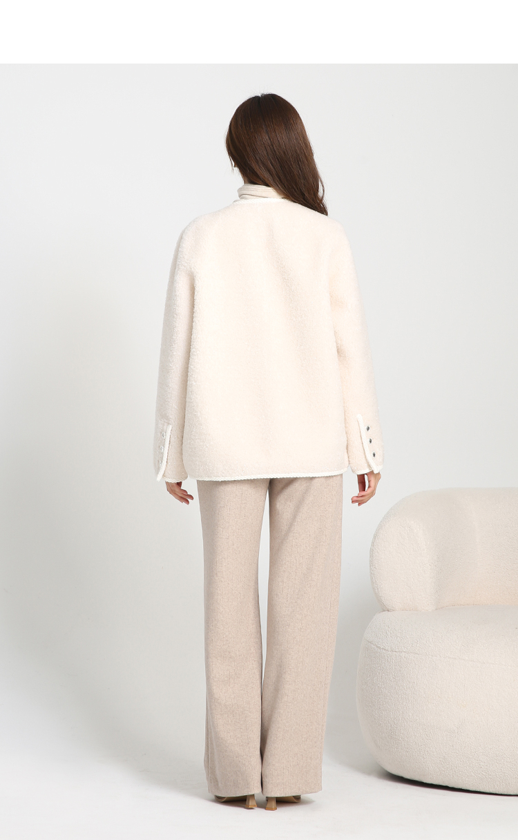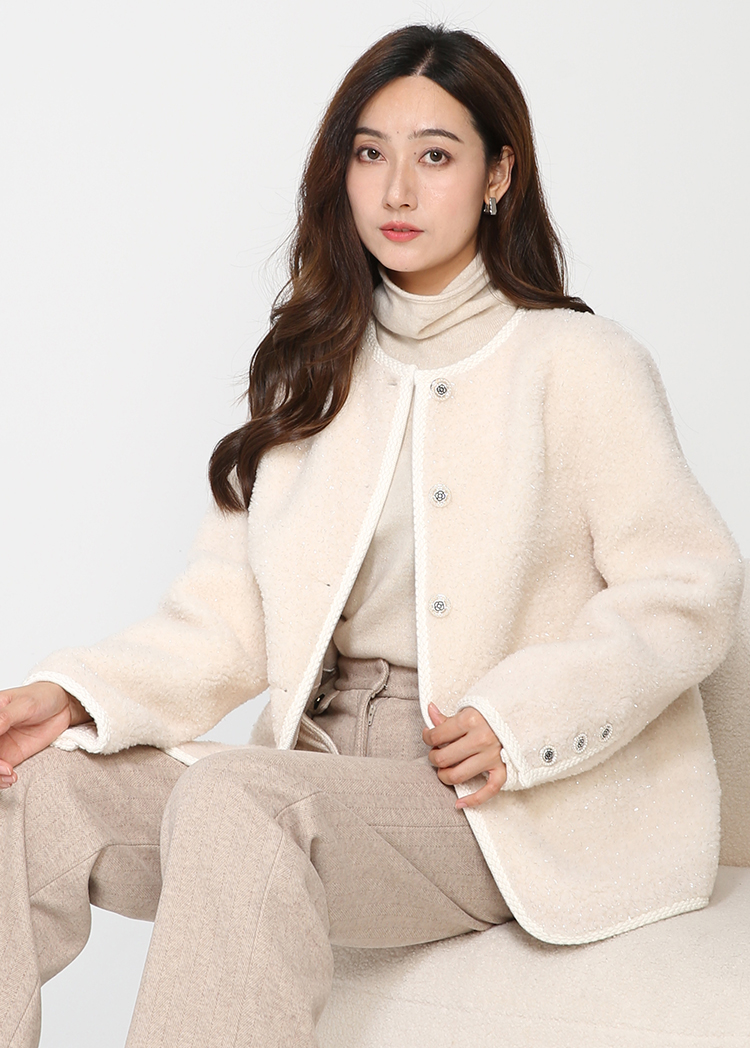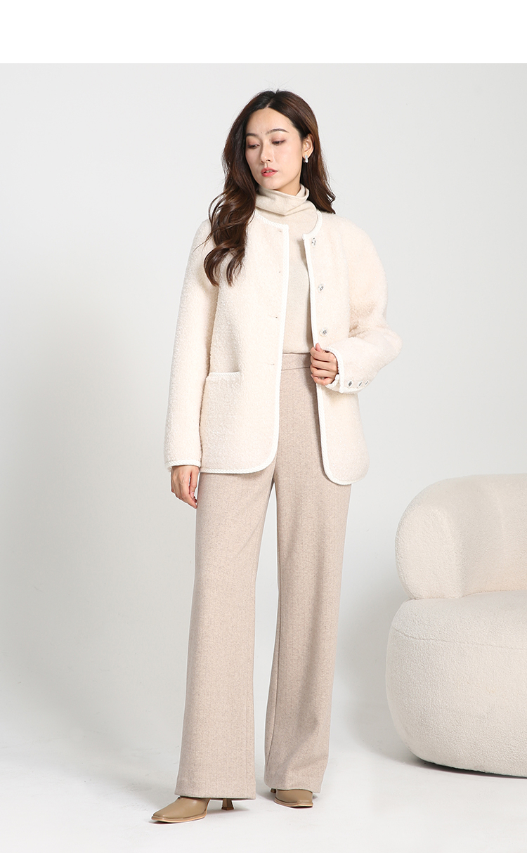 EITIE爱特爱时尚保暖毛绒羊剪毛大口袋气质圆领短外套冬新款D2403415