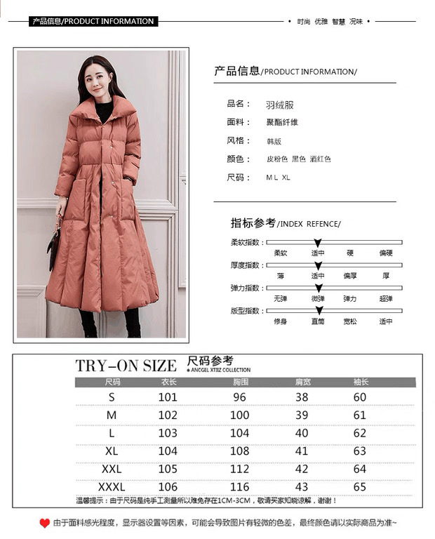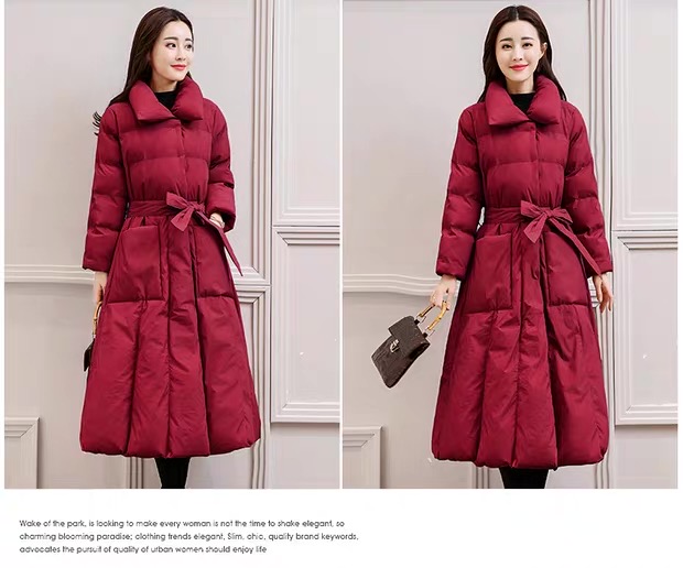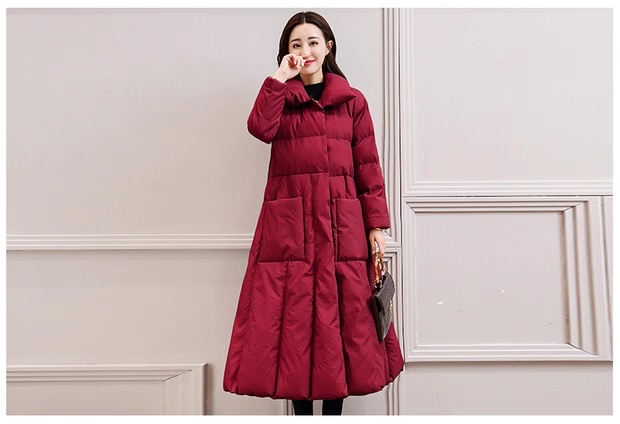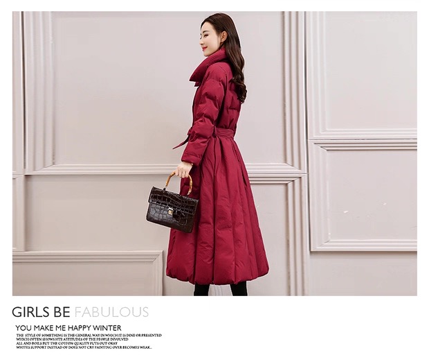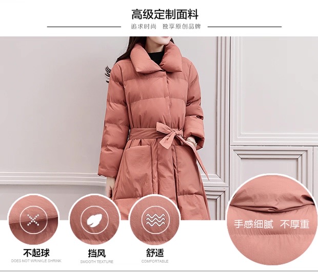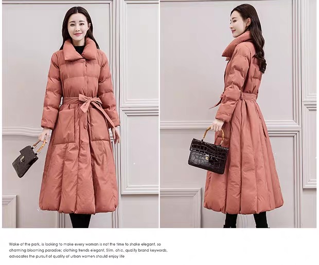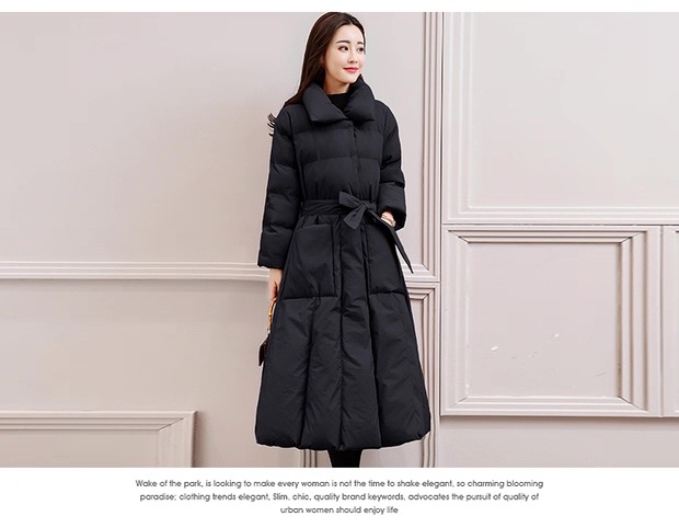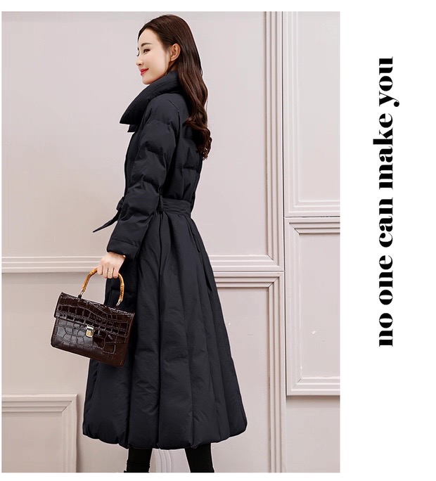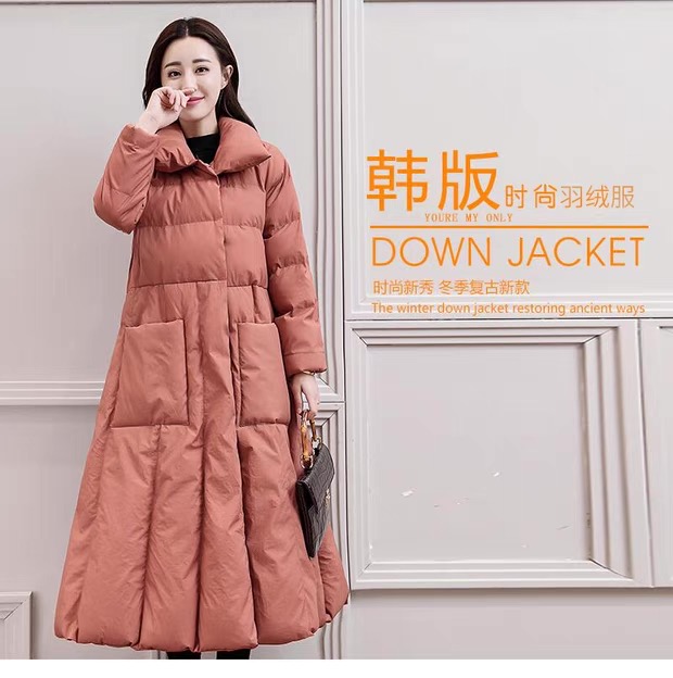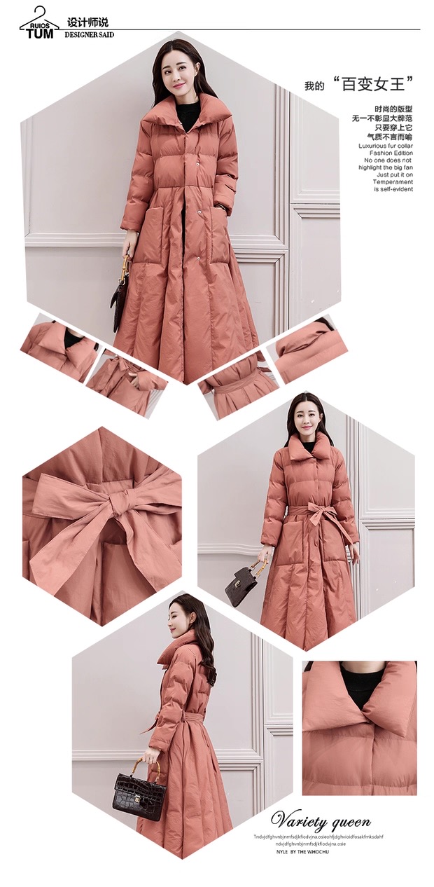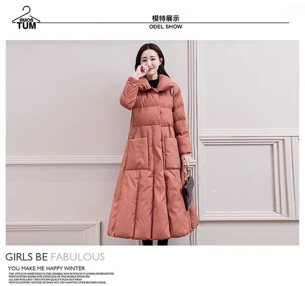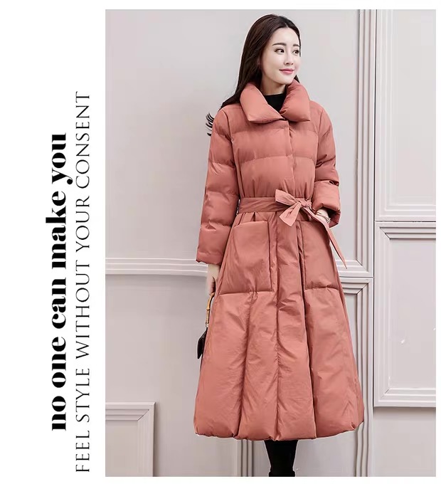丁摩 中长过膝羽绒服女新款a型韩版加厚白鸭绒外套冬季修身5ZF-222