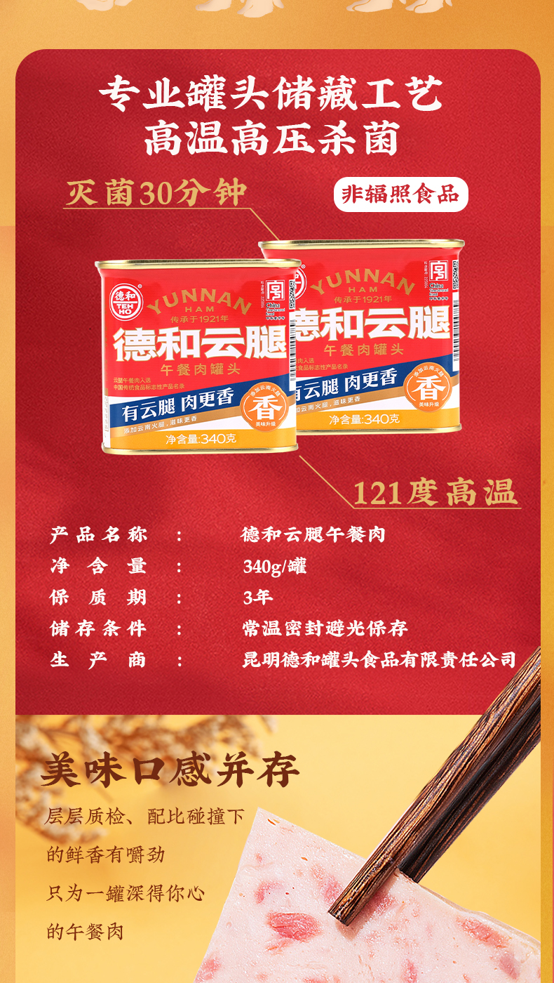 德和云腿午餐肉(红罐)340g 全国款#午餐肉