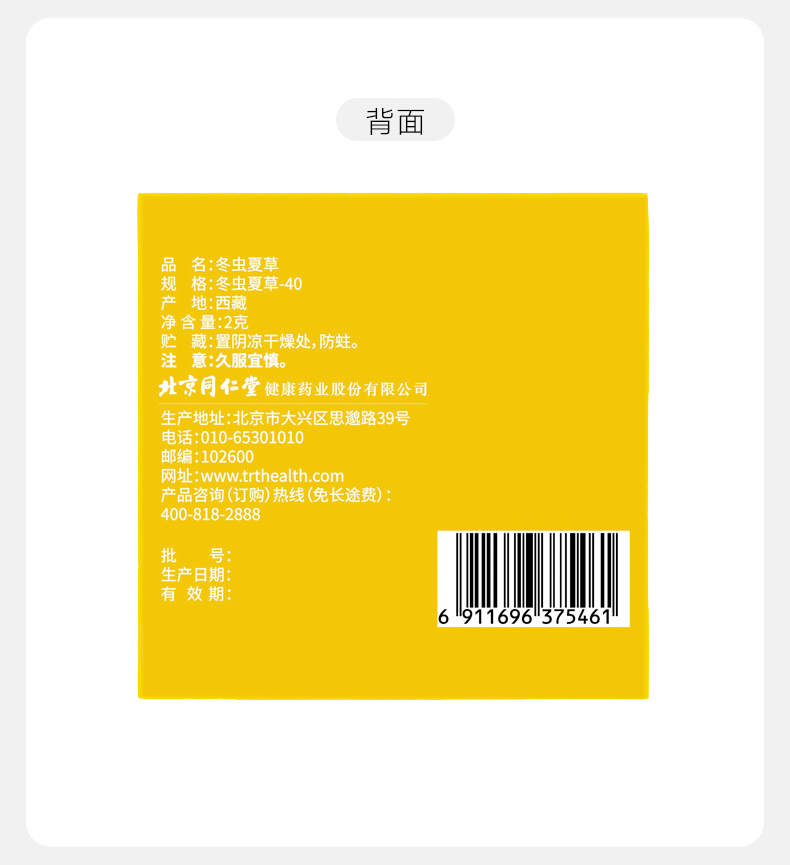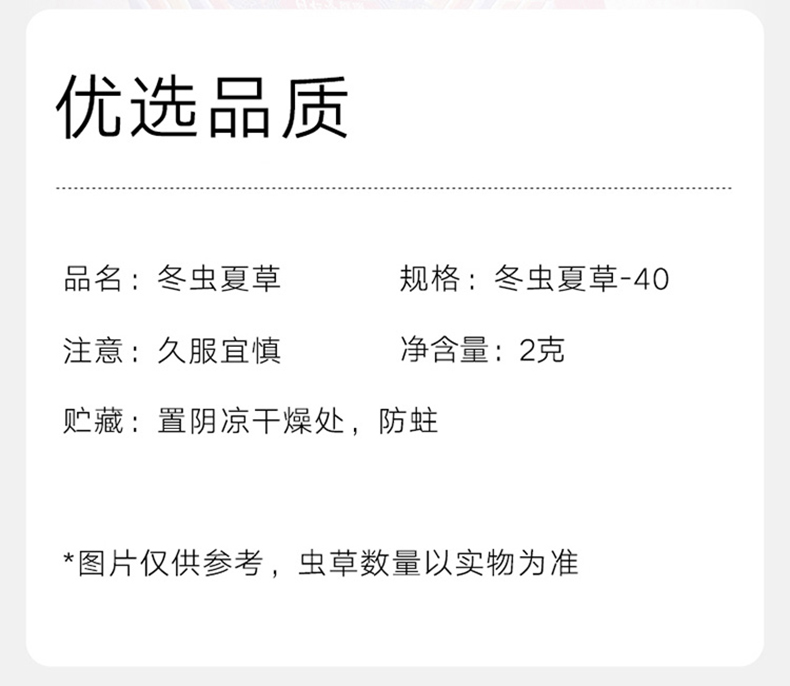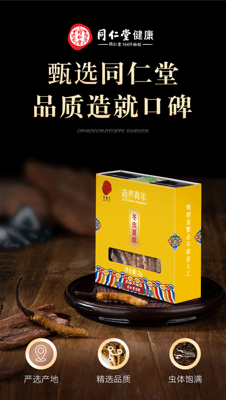 【正宗同仁堂品牌】北京同仁堂 冬虫夏草-40/2克 虫体干净 高品质干虫草 滋补品SY