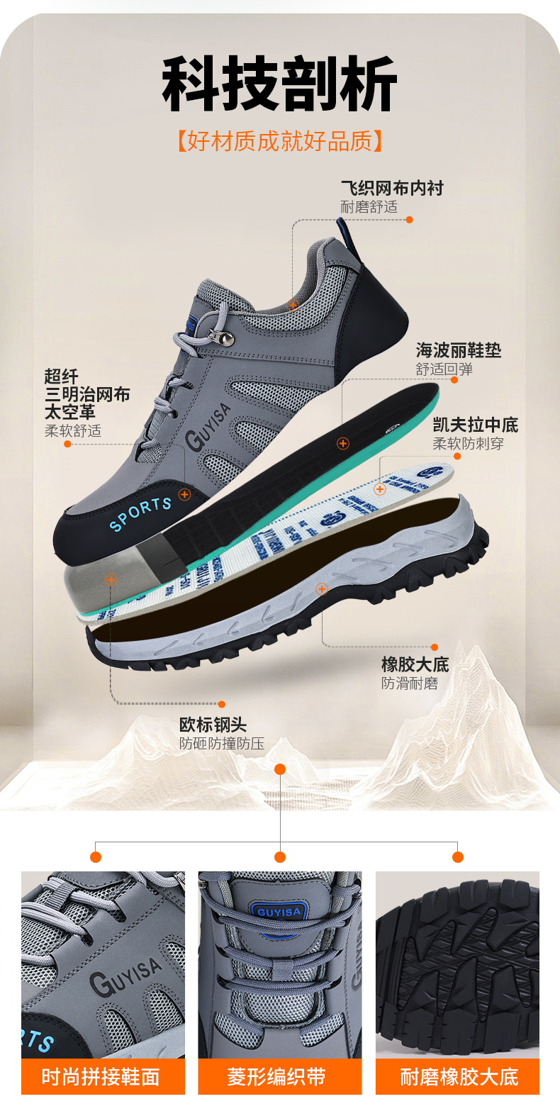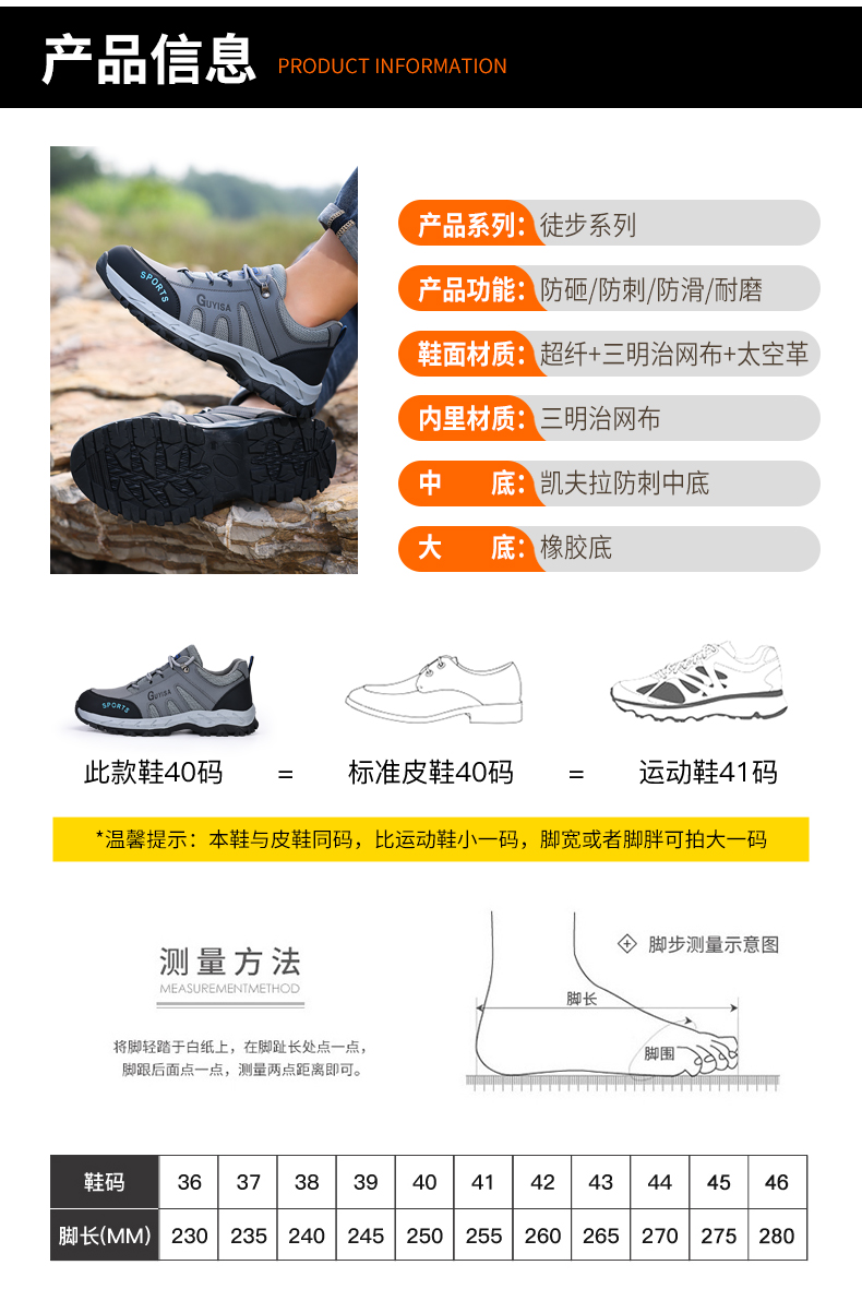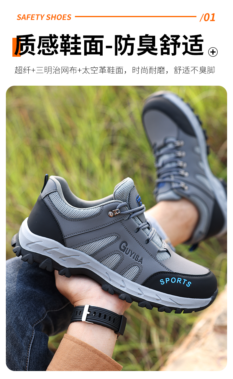 劳保鞋男安全工作鞋防砸钢包头防刺穿耐磨登山四季款防护功能鞋