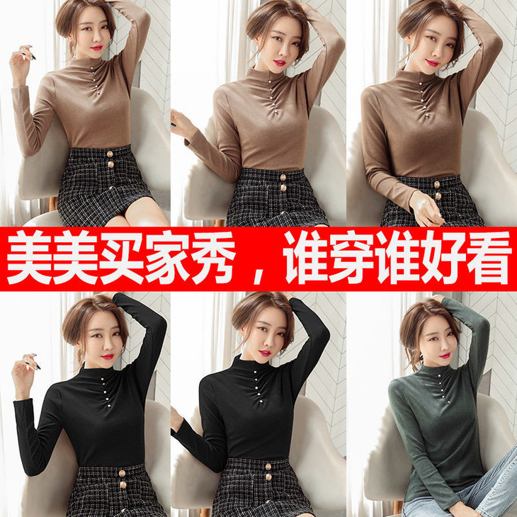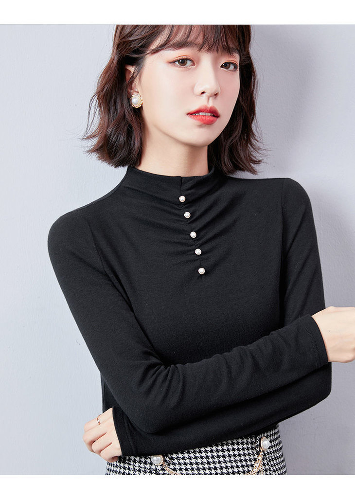 JXG-冬季黑色加绒加厚内搭T恤打底衫