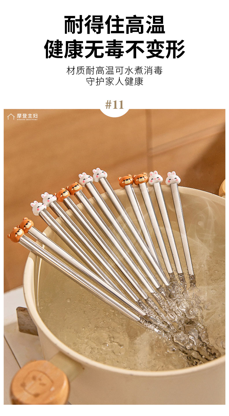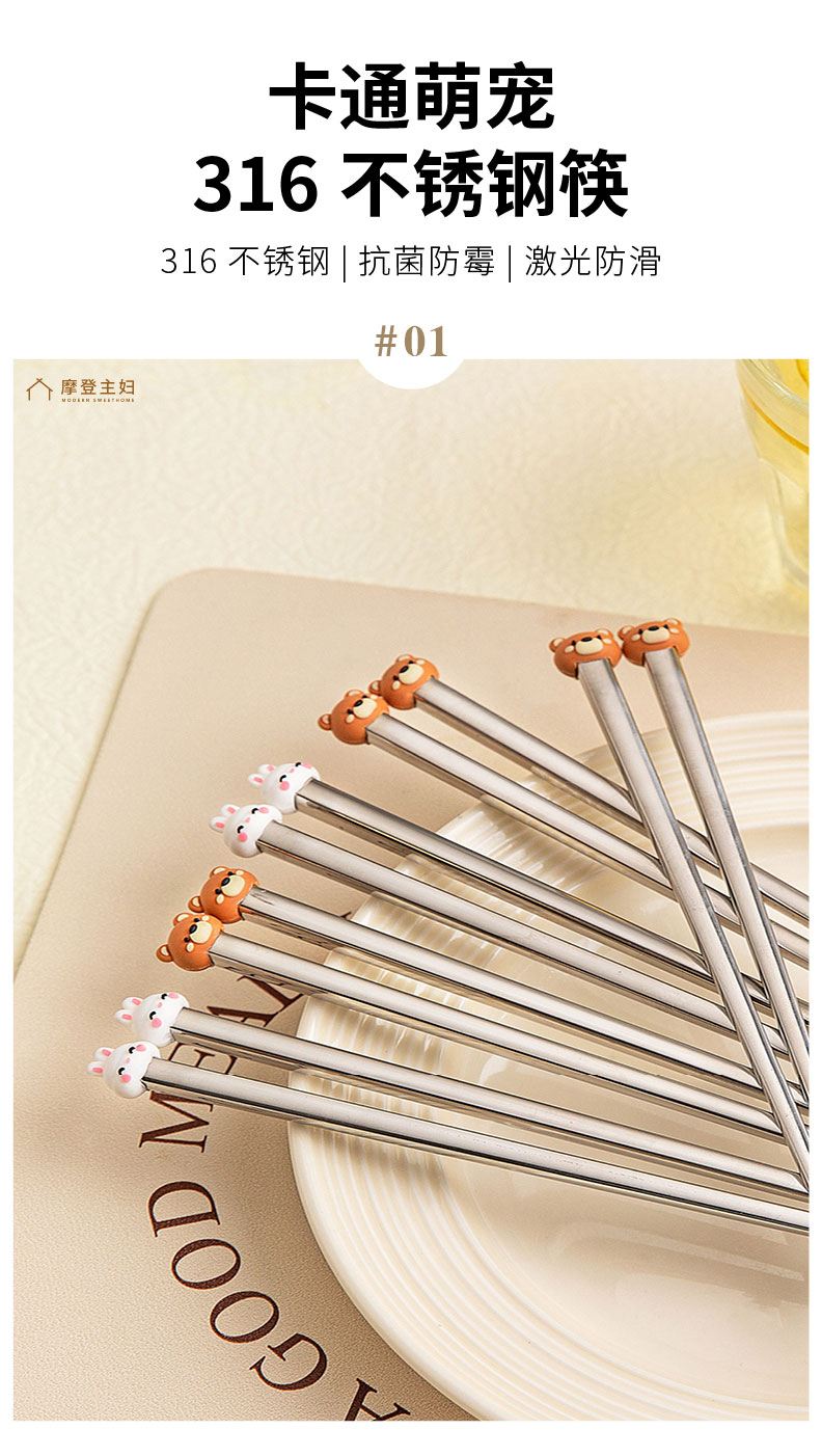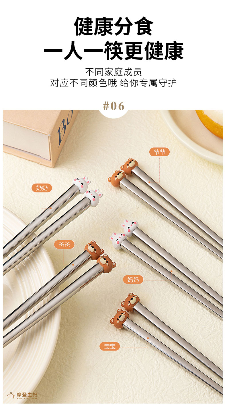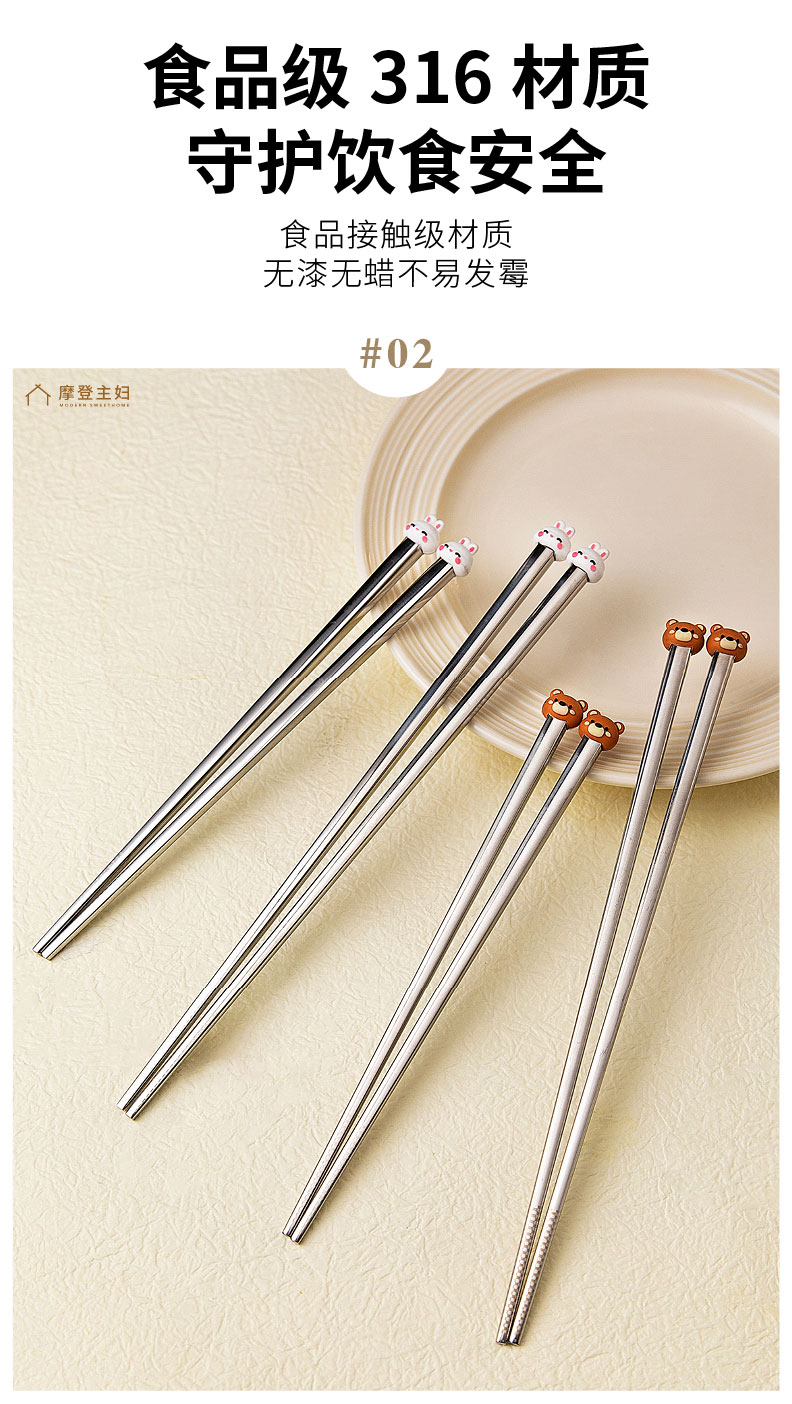 摩登主妇316不锈钢筷子儿童家用分人高档抗菌防霉家庭专人专用筷