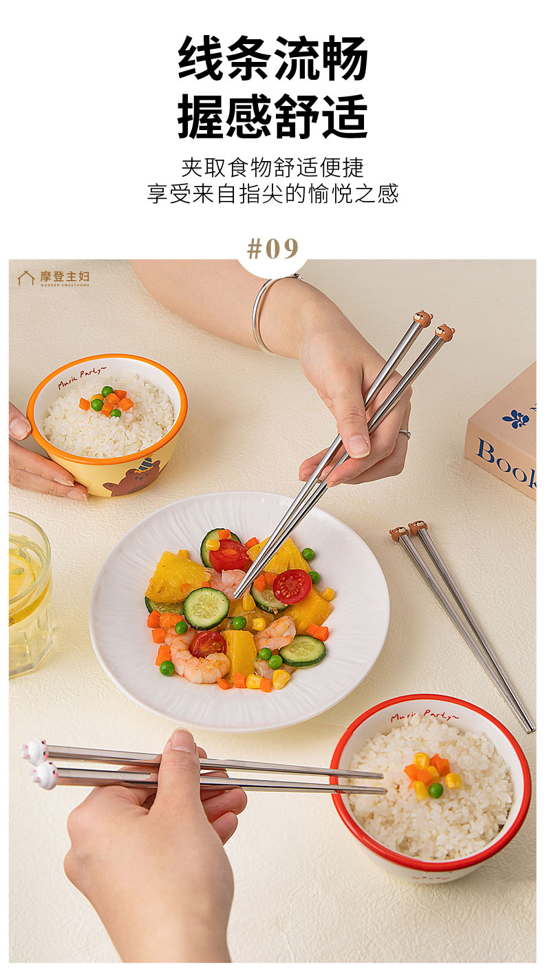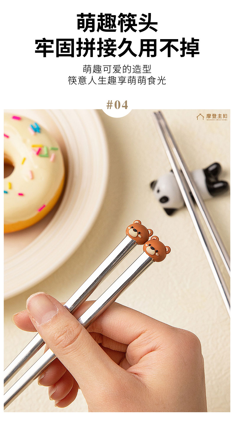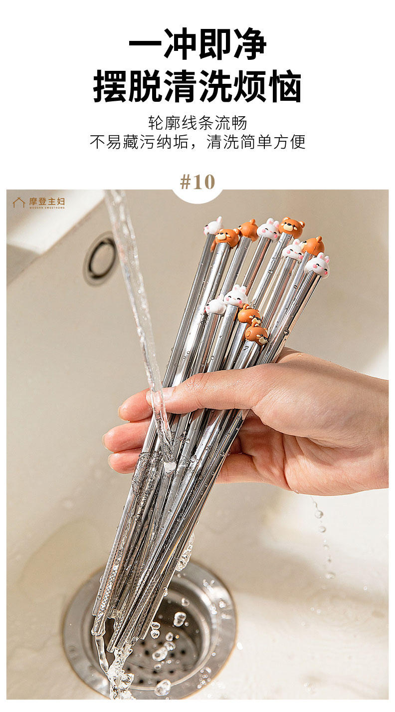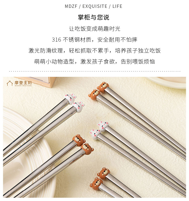 摩登主妇316不锈钢筷子儿童家用分人高档抗菌防霉家庭专人专用筷