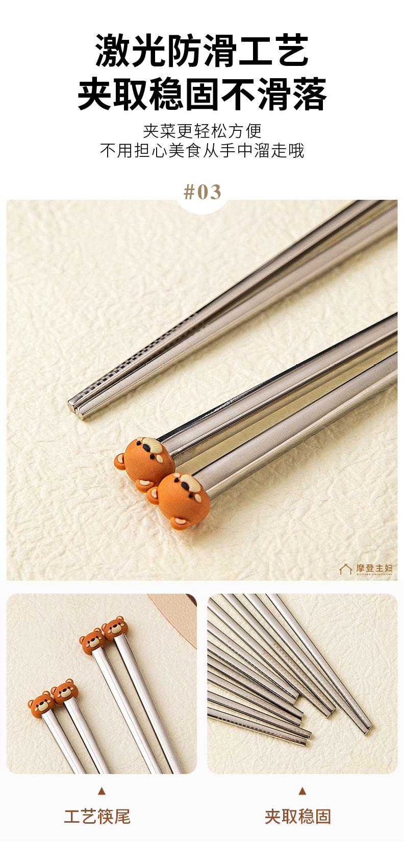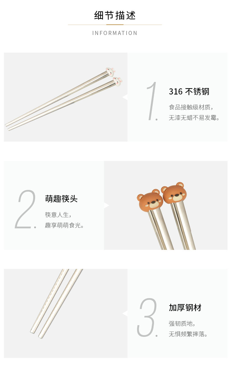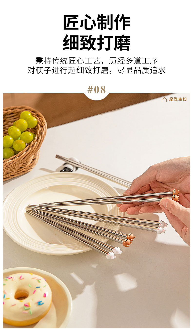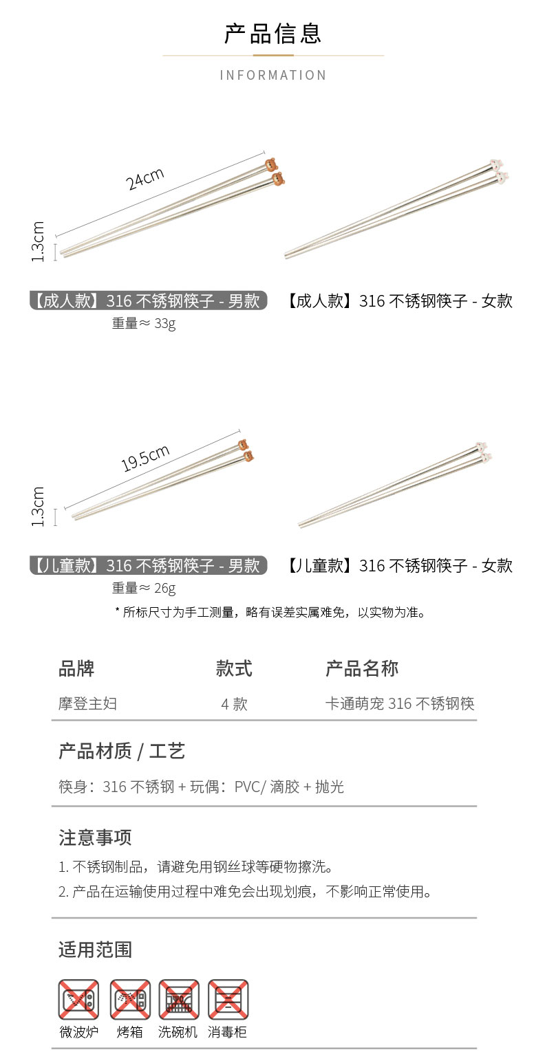 摩登主妇316不锈钢筷子儿童家用分人高档抗菌防霉家庭专人专用筷
