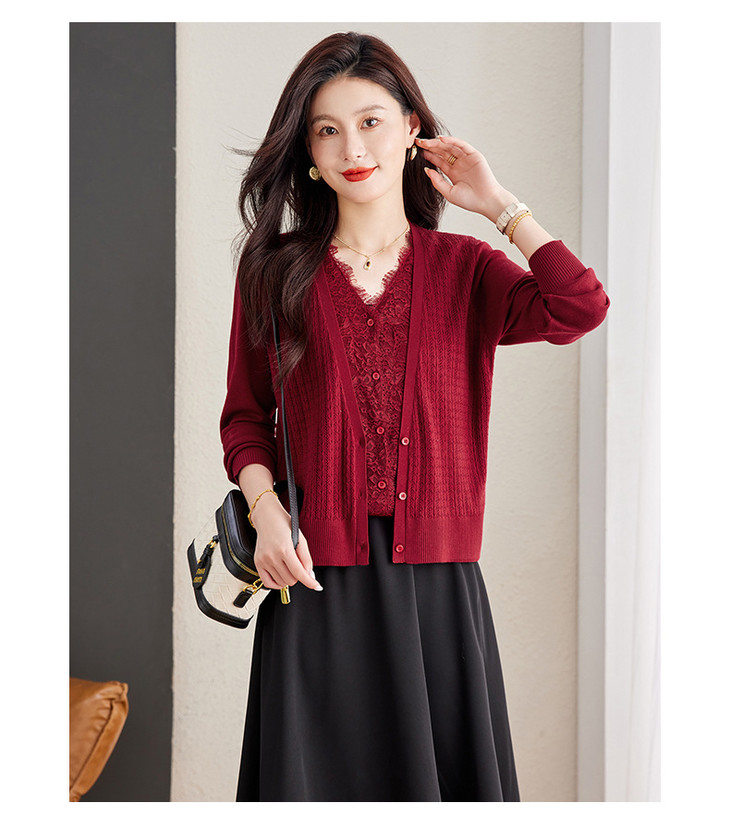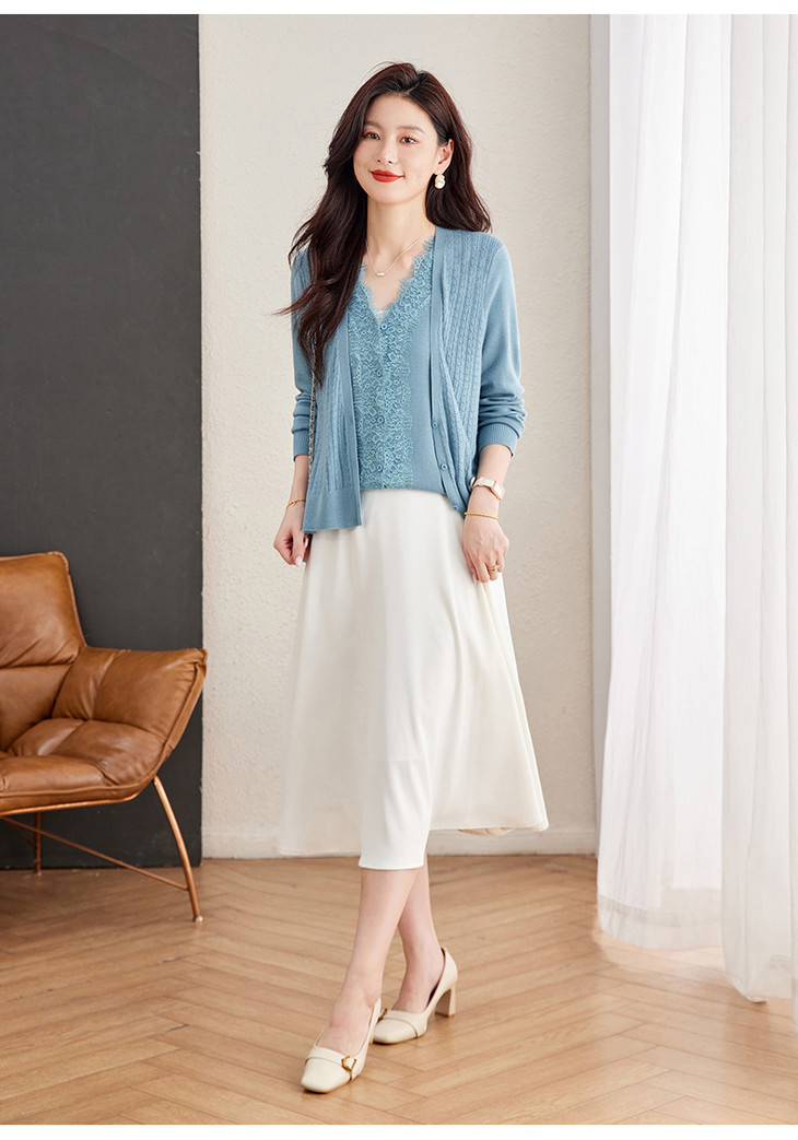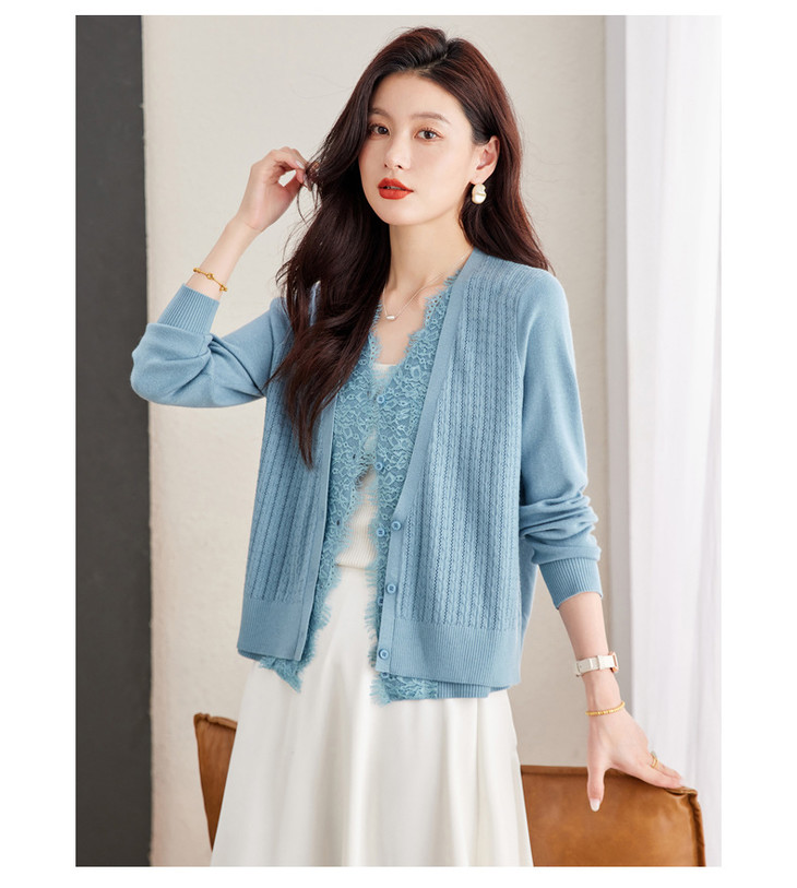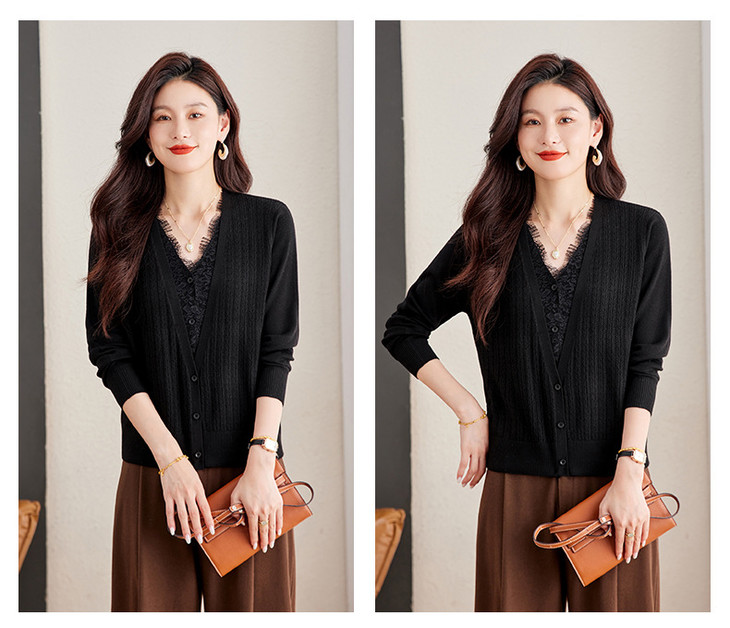 假两件套装宽松显瘦上衣,外套V领薄针织开衫CC-16-9507