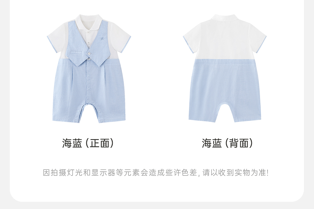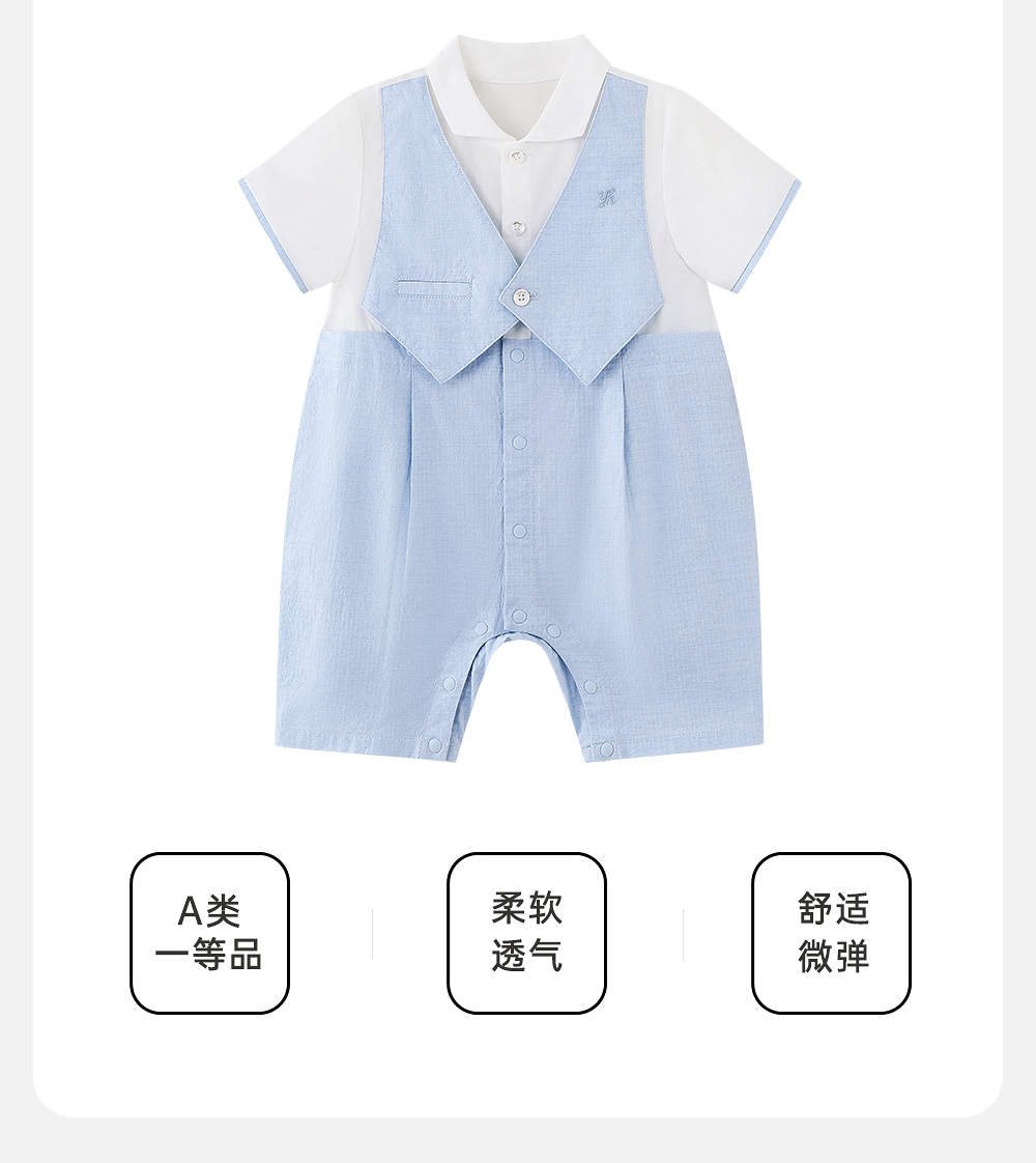 【商场同款】英氏婴儿衣服夏季短袖透气小宝宝包屁衣礼服款连体衣