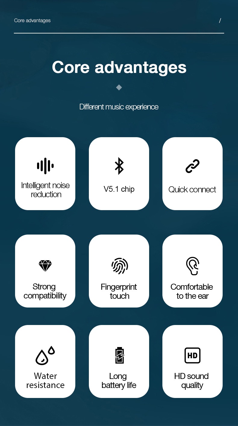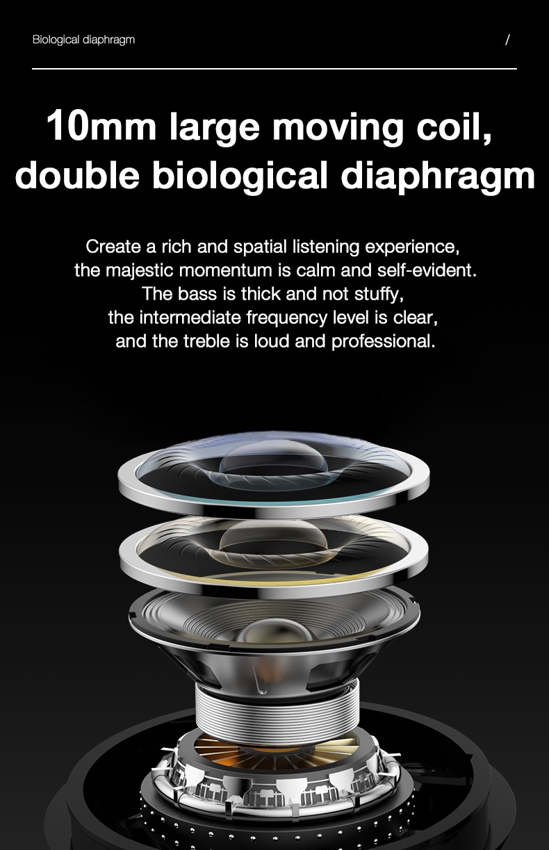 10mm大型动圈 双生物隔膜 创造丰富而空间感的倾听体验,气势平和 不言而喻 低音厚实不闷 中频电平清晰 高音响亮而专业,蓝牙5.1芯片更快更稳定的链接 不卡顿 低功耗