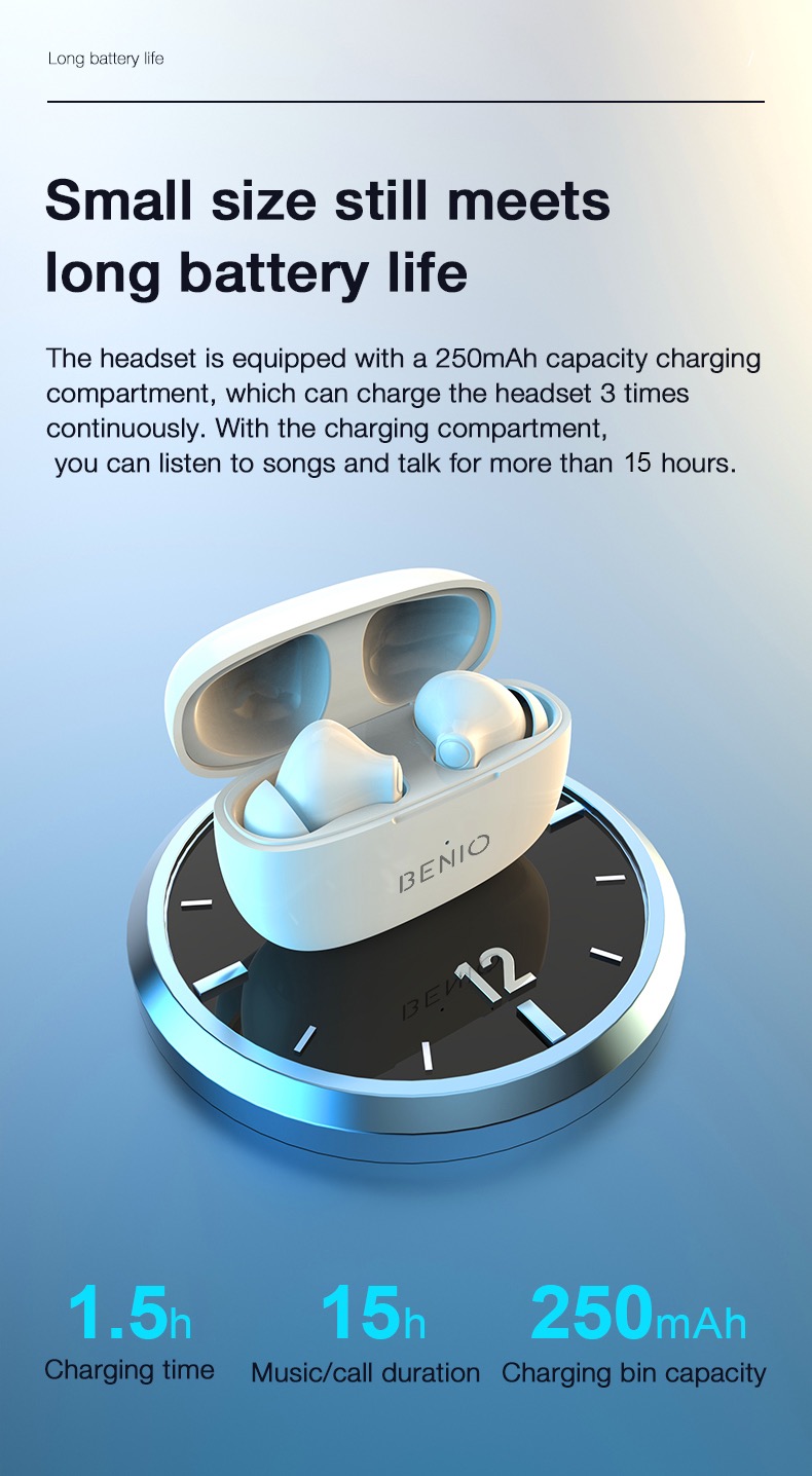 ✅250mAh容量 充电仓可支持充电约3次,且1.5小时充电即可!