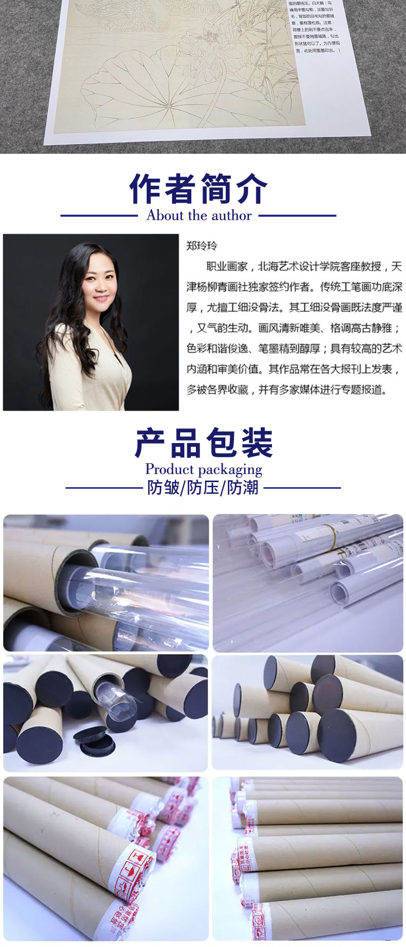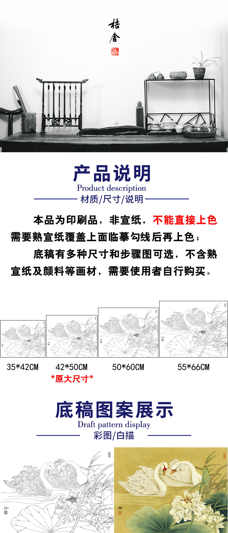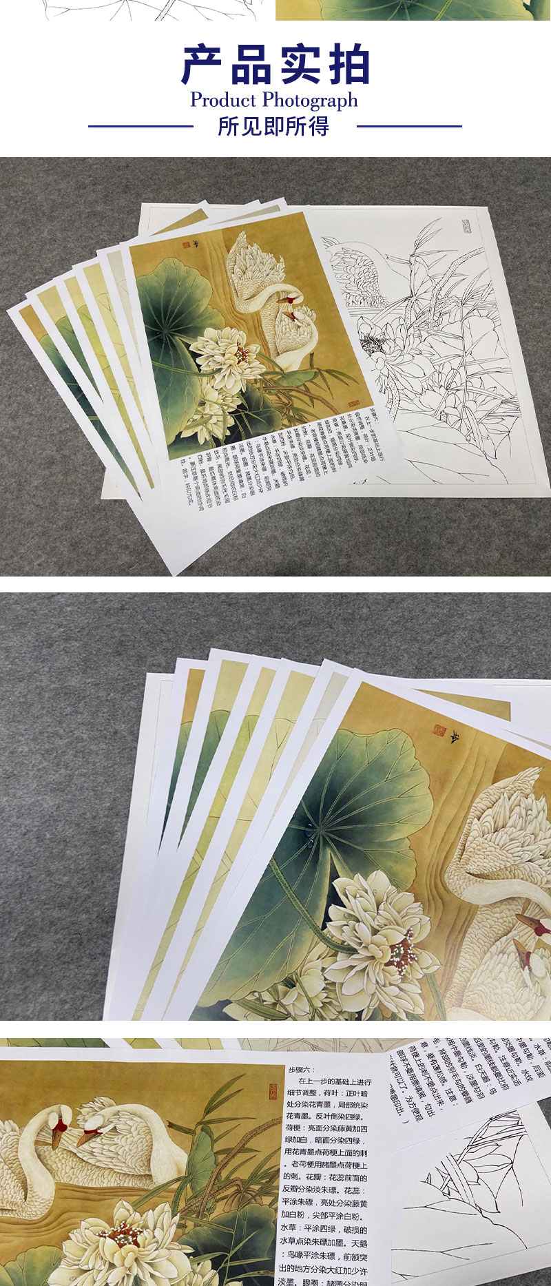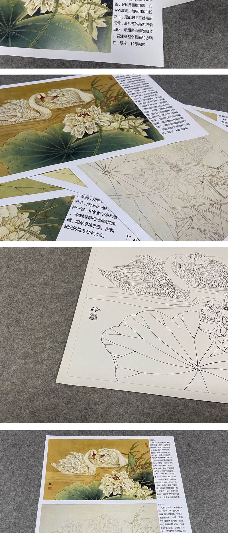 【有步骤、大彩图】郑玲玲工笔画白描底稿小品《物华秋水》荷花天鹅初学者临摹花鸟线稿ZL08