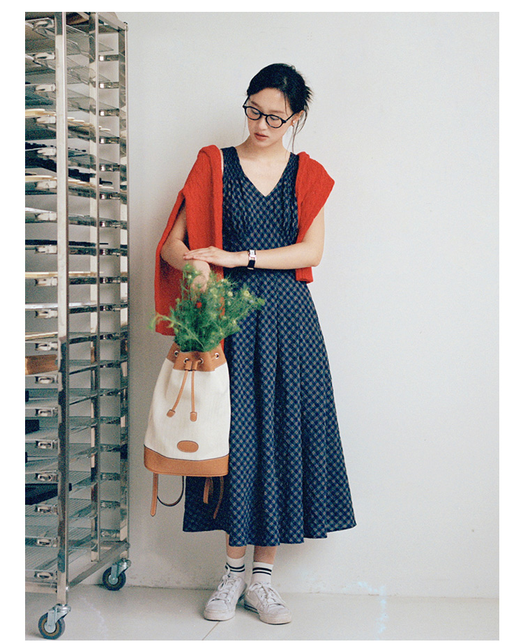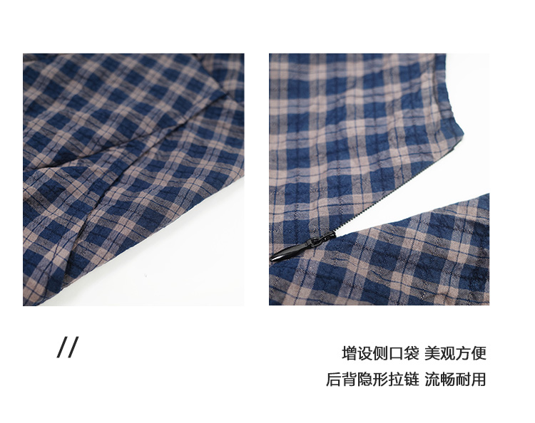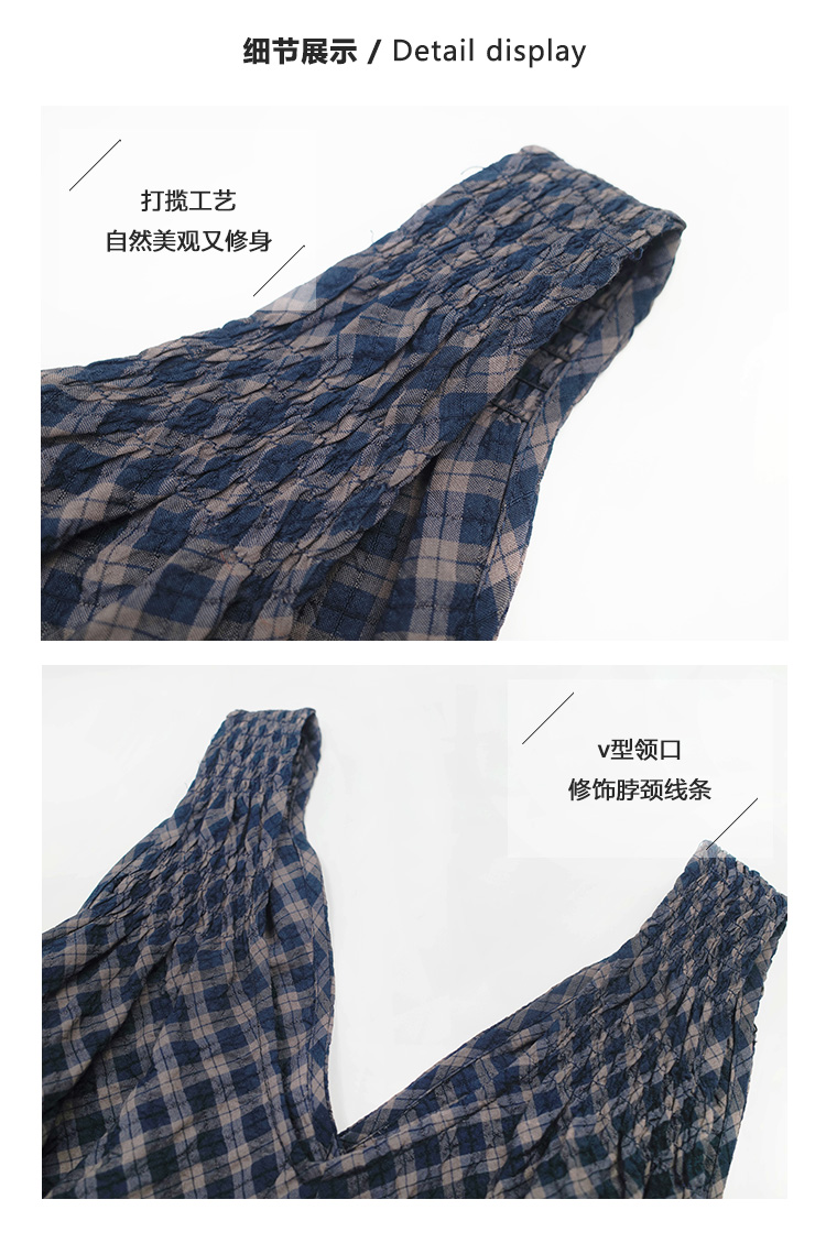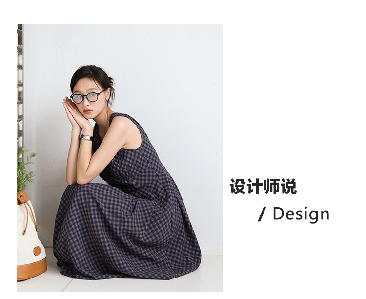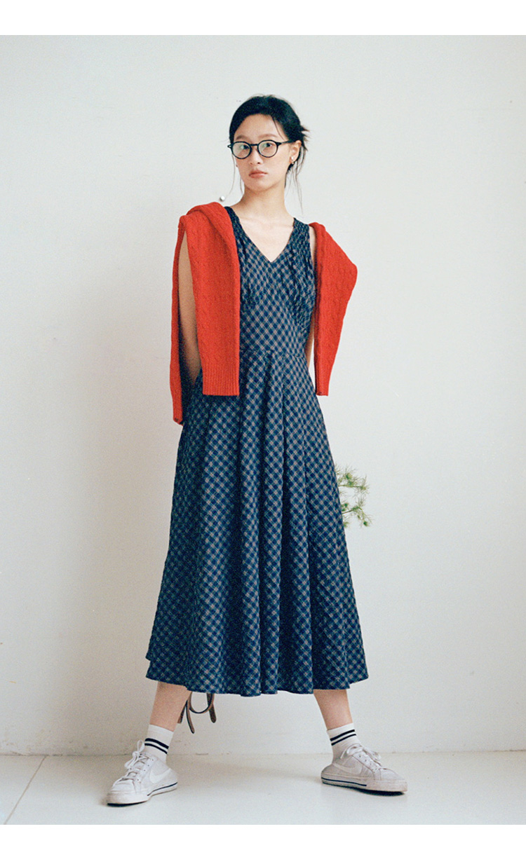 Even Vintage | 文艺复古 格纹经典v领无袖背心收腰长裙连衣裙