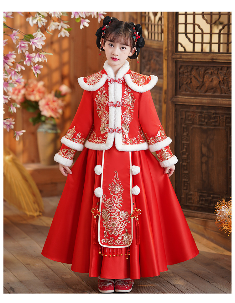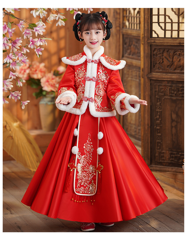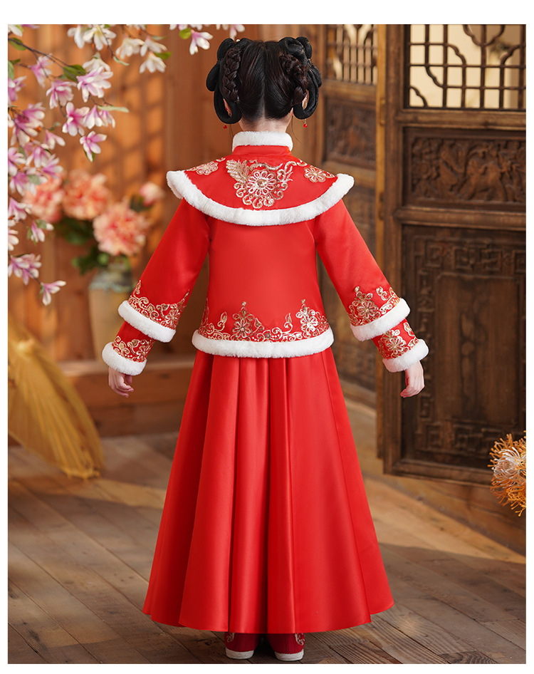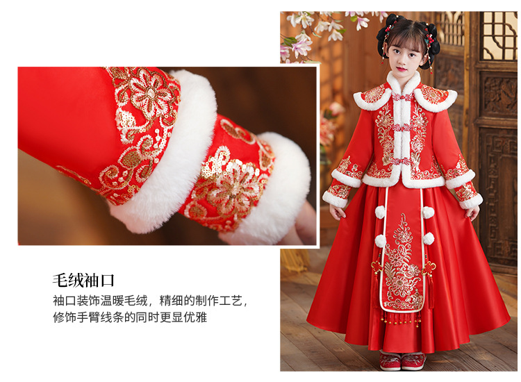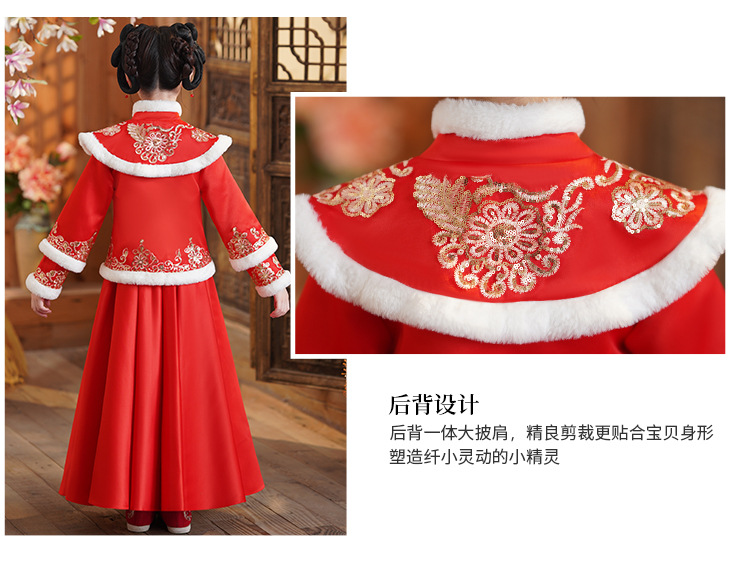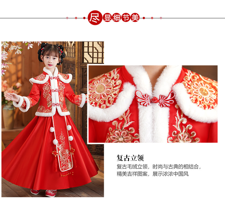 DY-8818儿童汉服女童拜年服冬季新款童装小女孩中国风唐装红色裙套装
