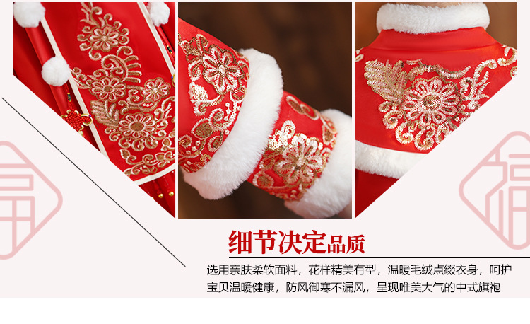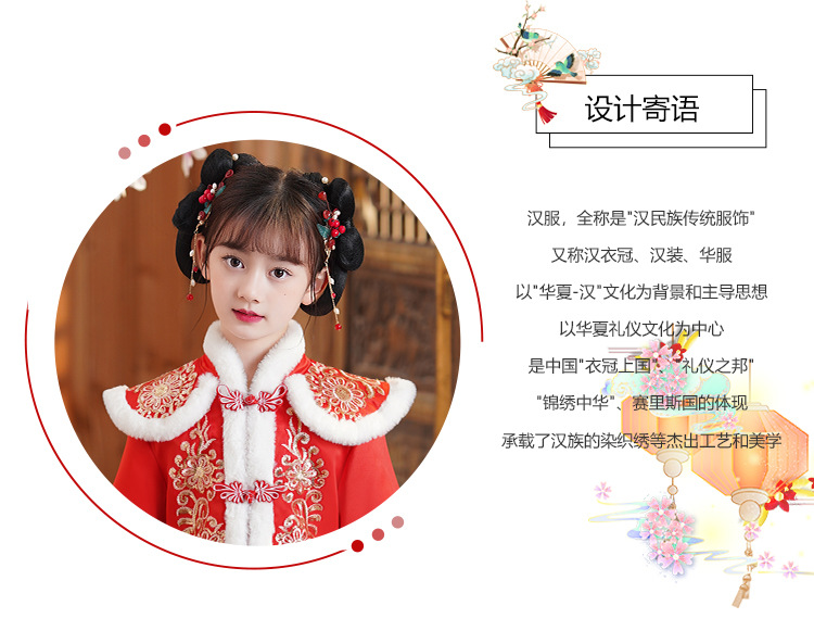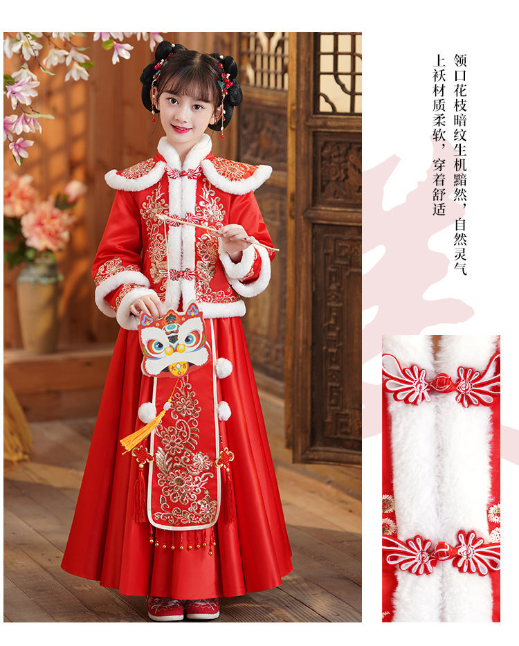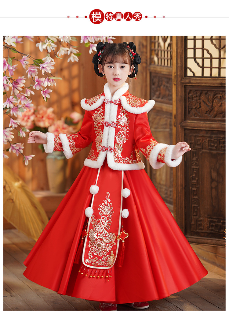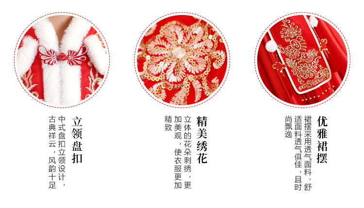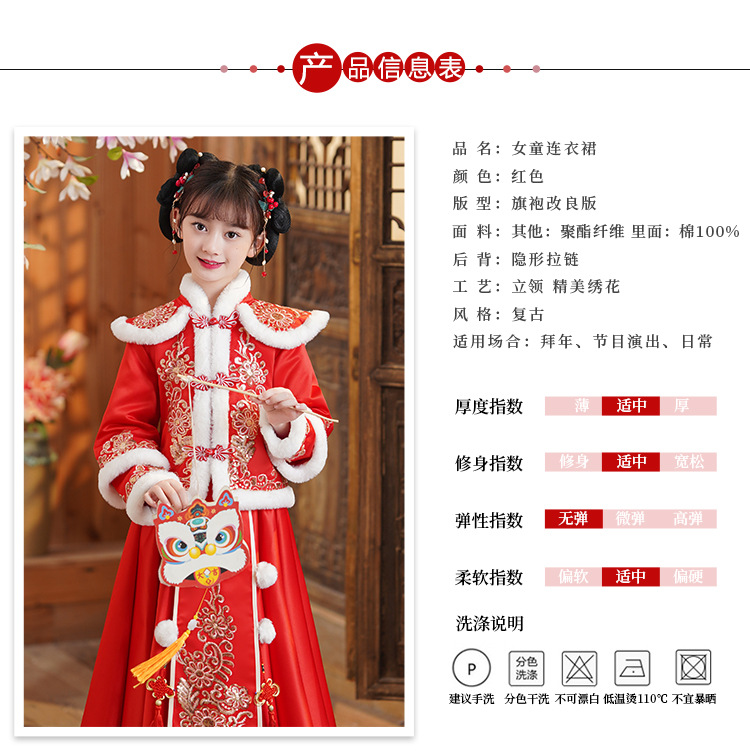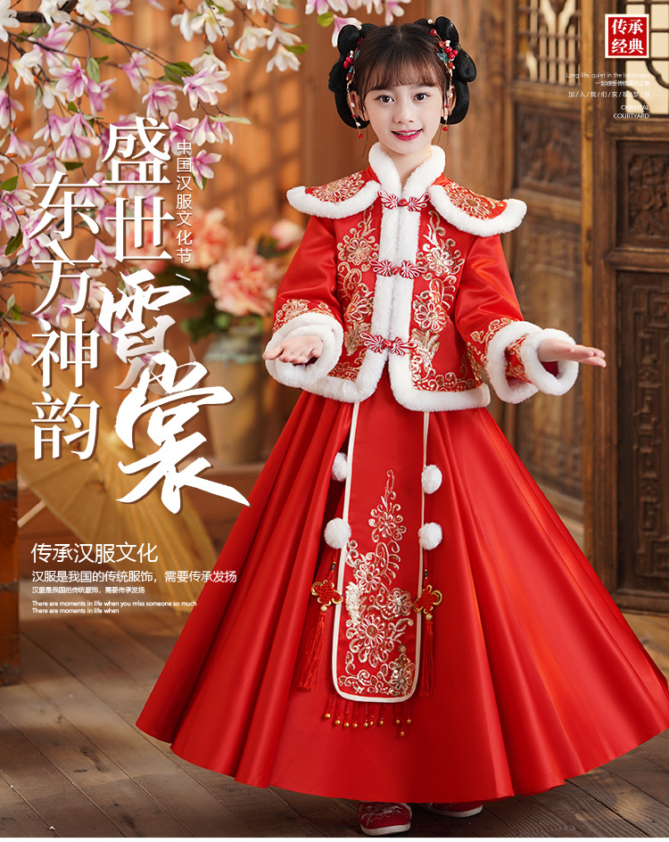DY-8818儿童汉服女童拜年服冬季新款童装小女孩中国风唐装红色裙套装