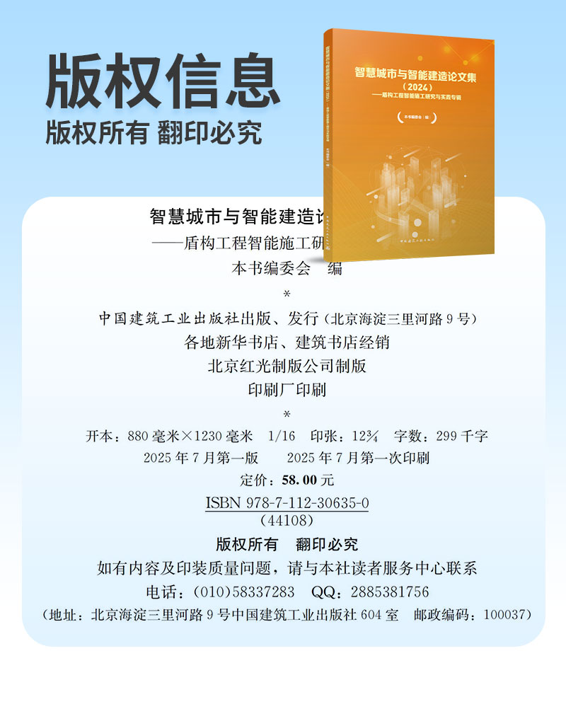 书名:智慧城市与智能建造论文集(2024)——盾构工程智能施工研究与实践专辑