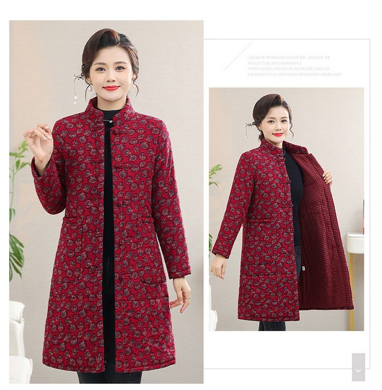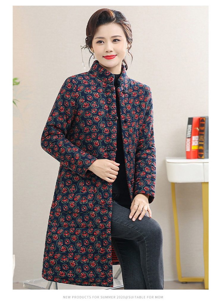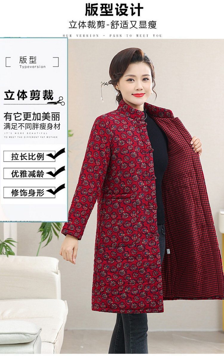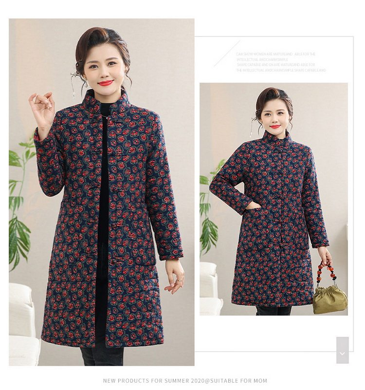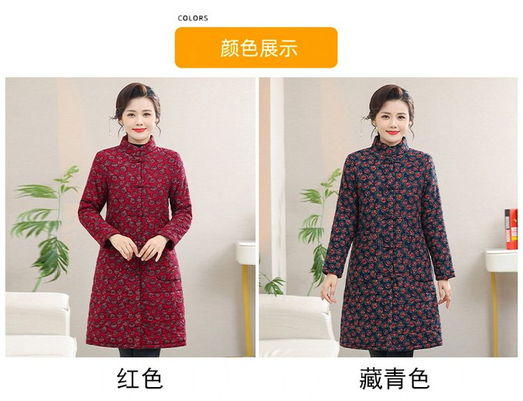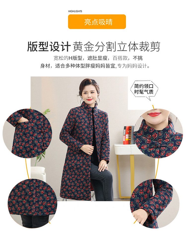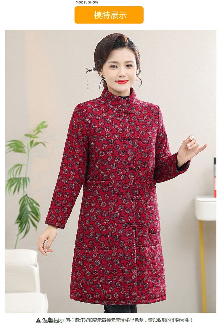 妈妈装秋冬新款中长棉袄中老年女士民族风立领唐装棉衣服加厚外套
