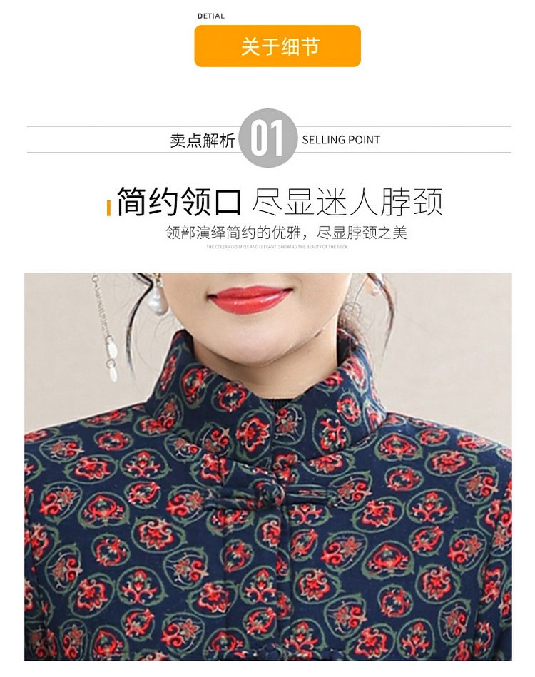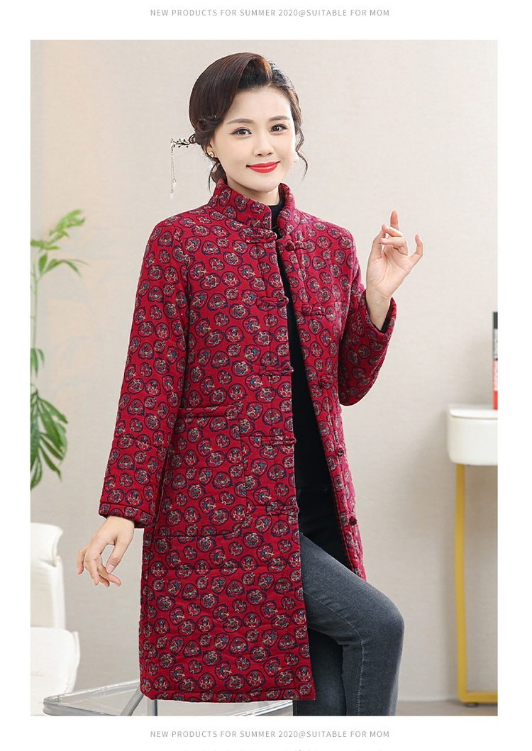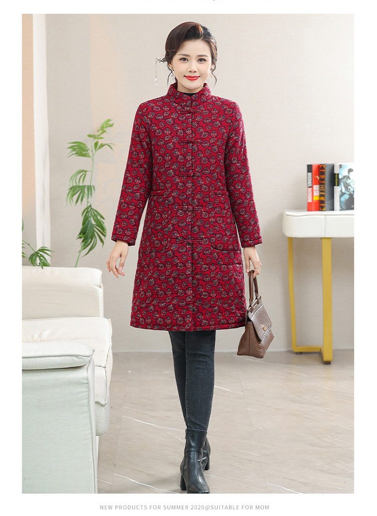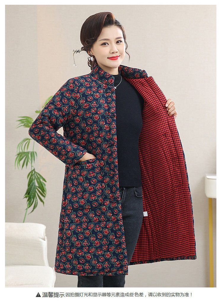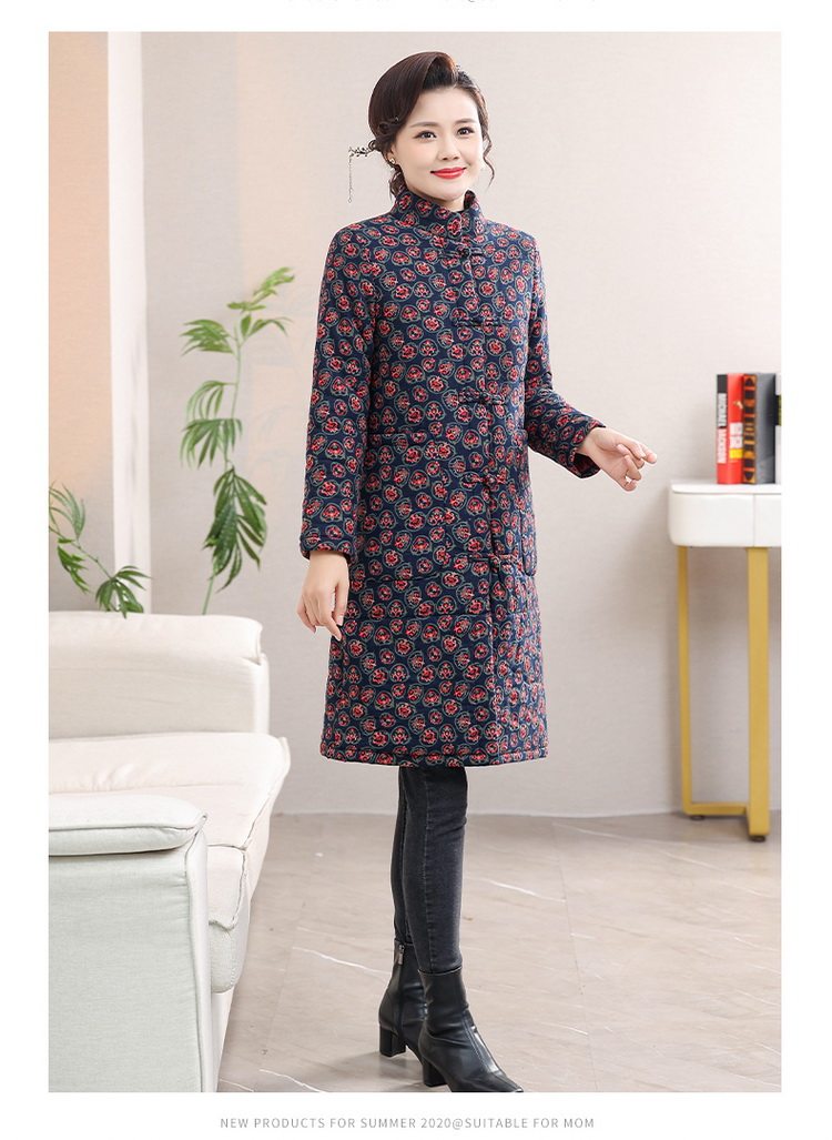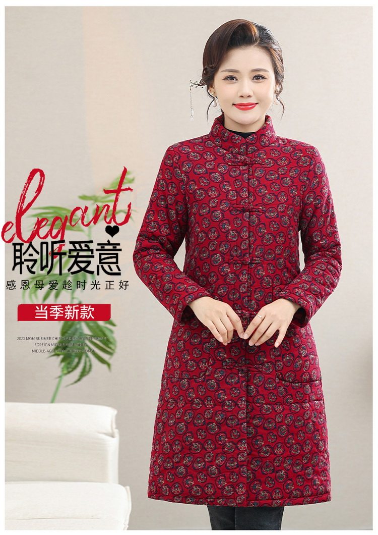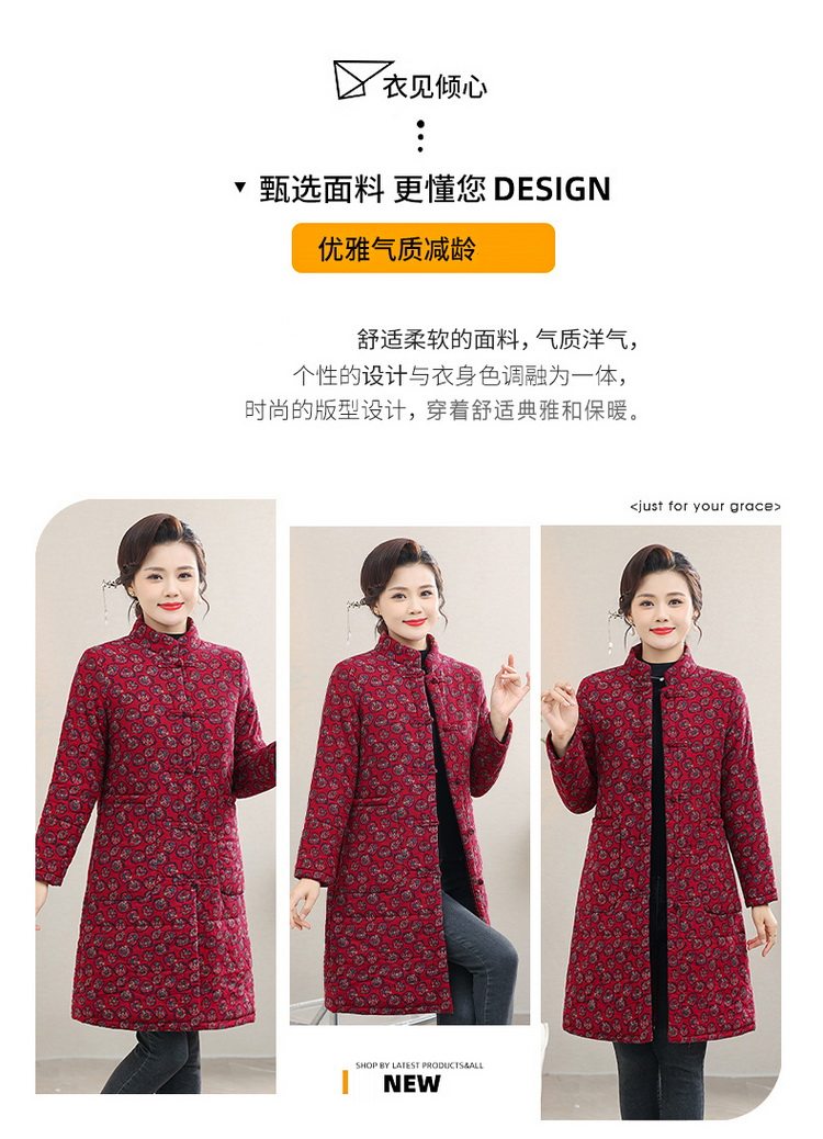 妈妈装秋冬新款中长棉袄中老年女士民族风立领唐装棉衣服加厚外套