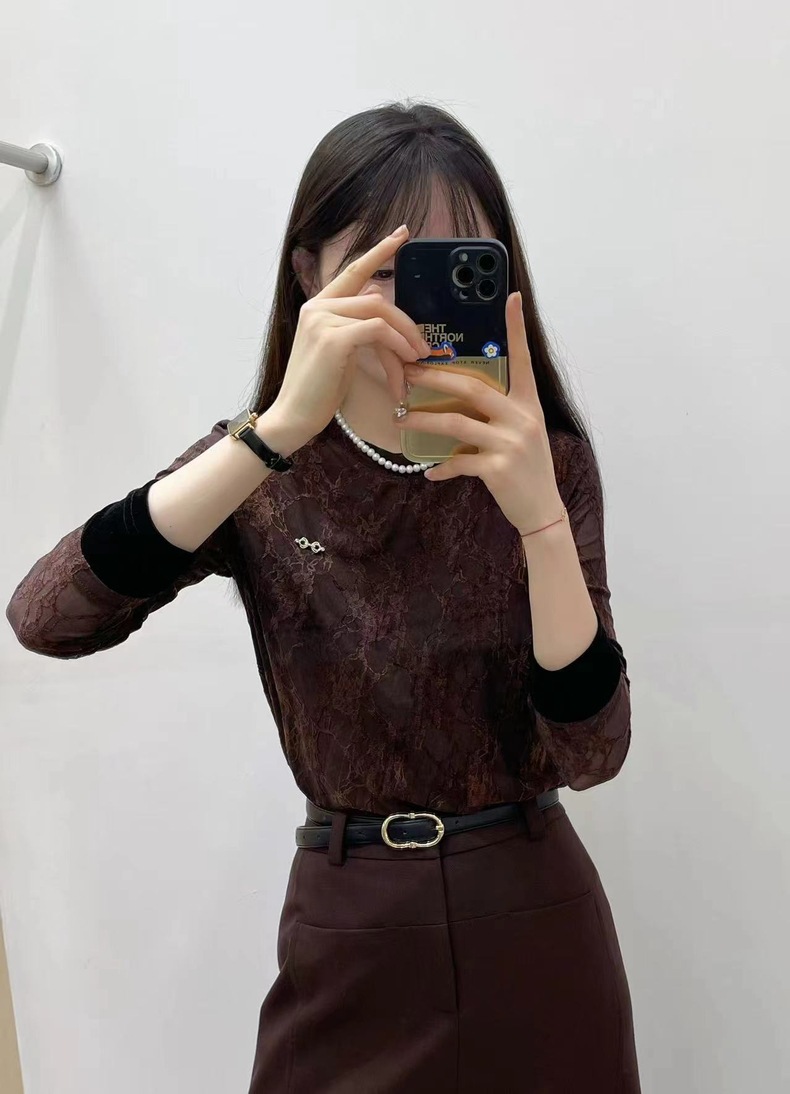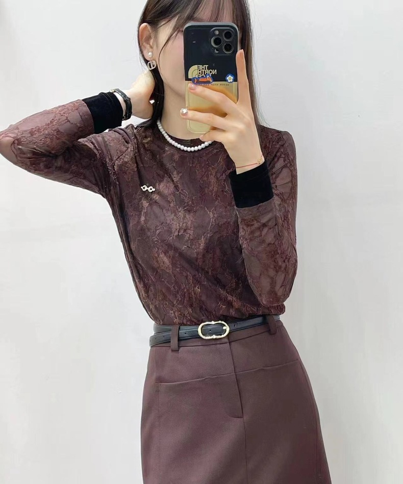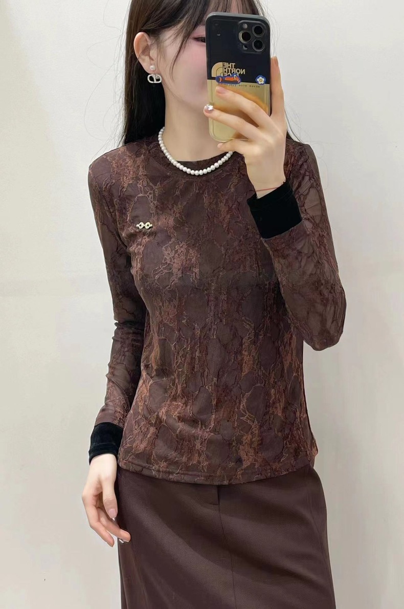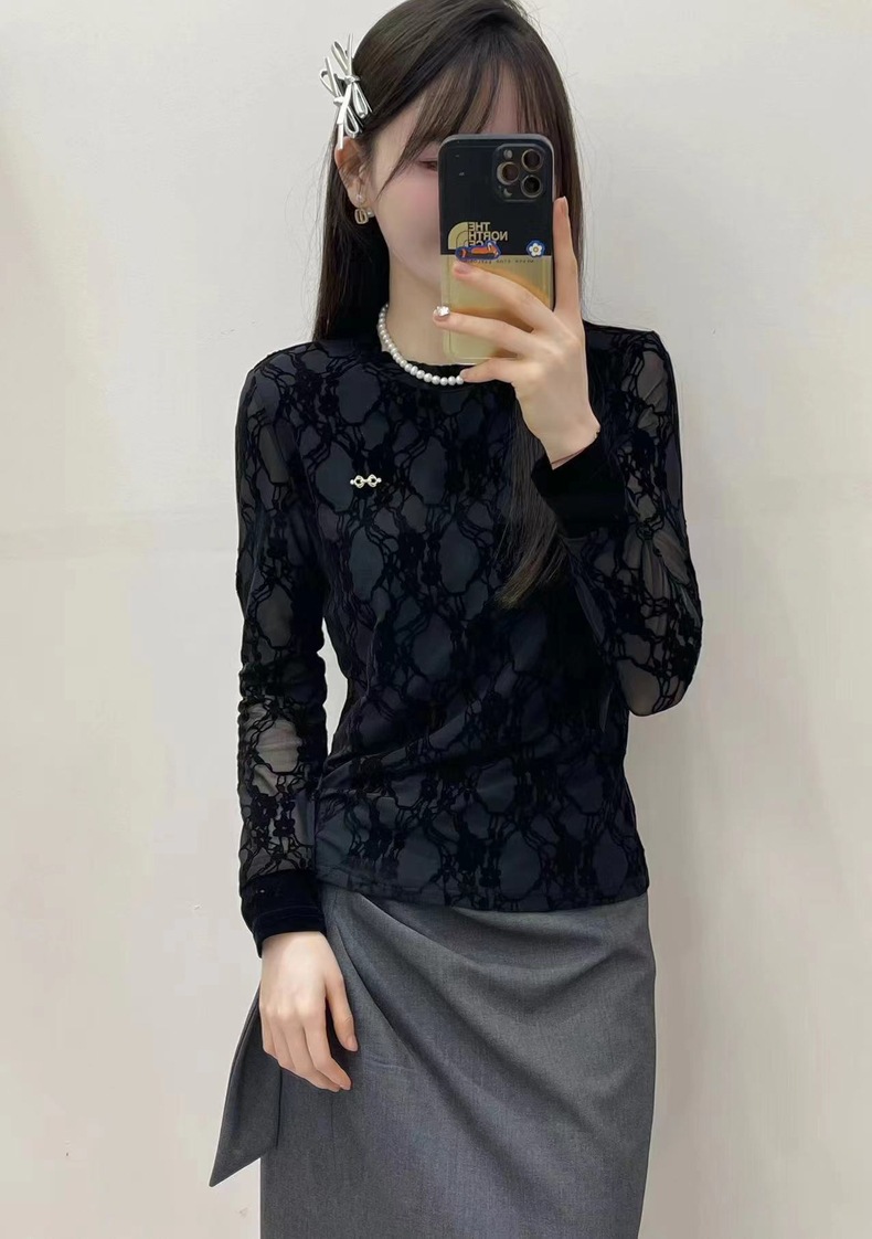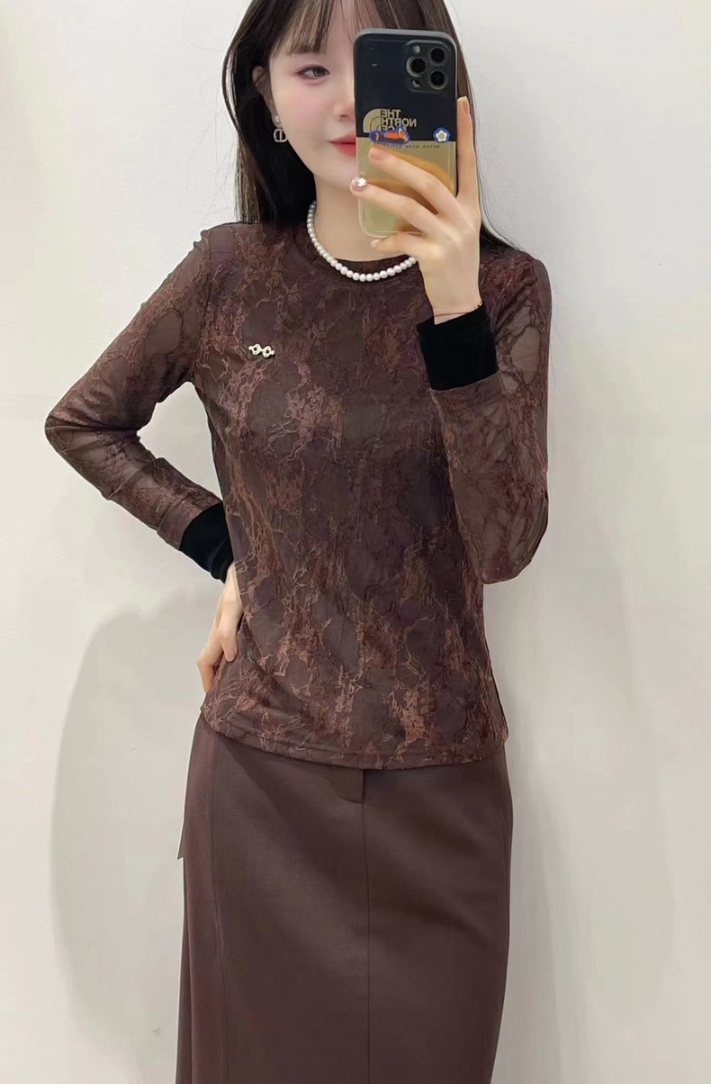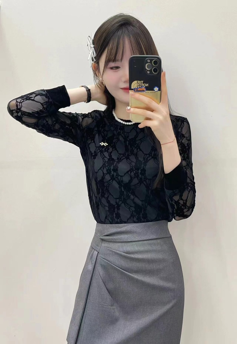 LJ3206 2025秋季新款显瘦打底衫长袖蕾丝衫衬衫女上衣