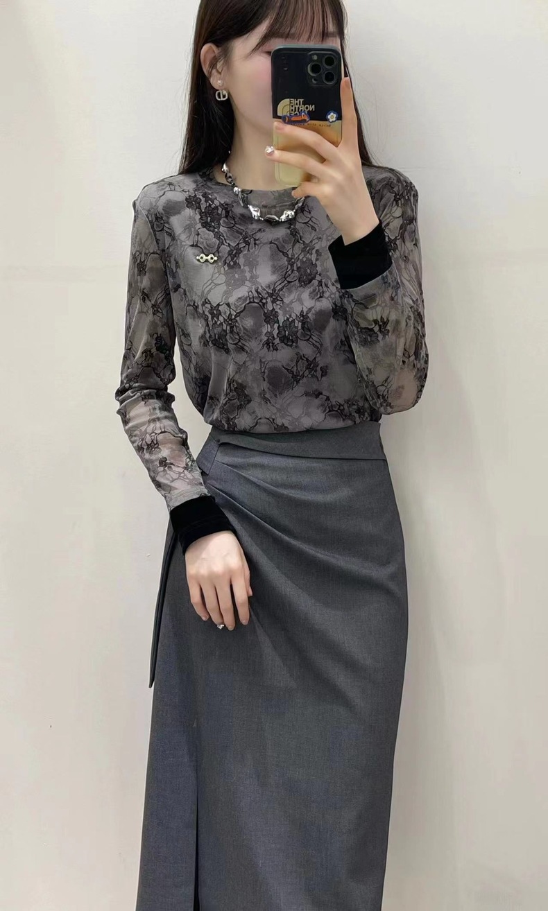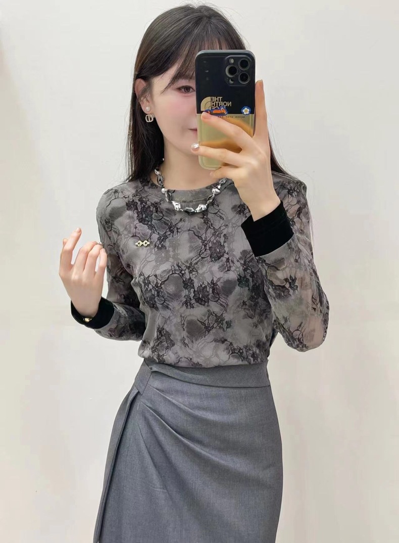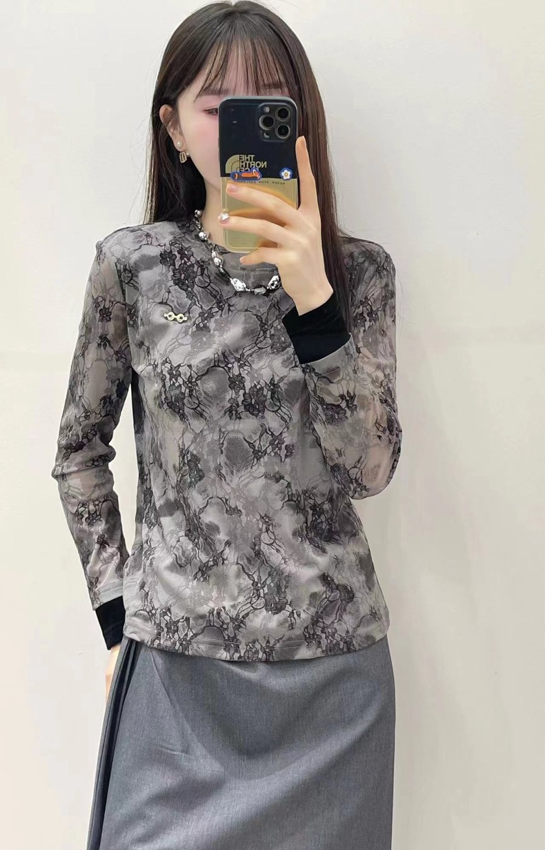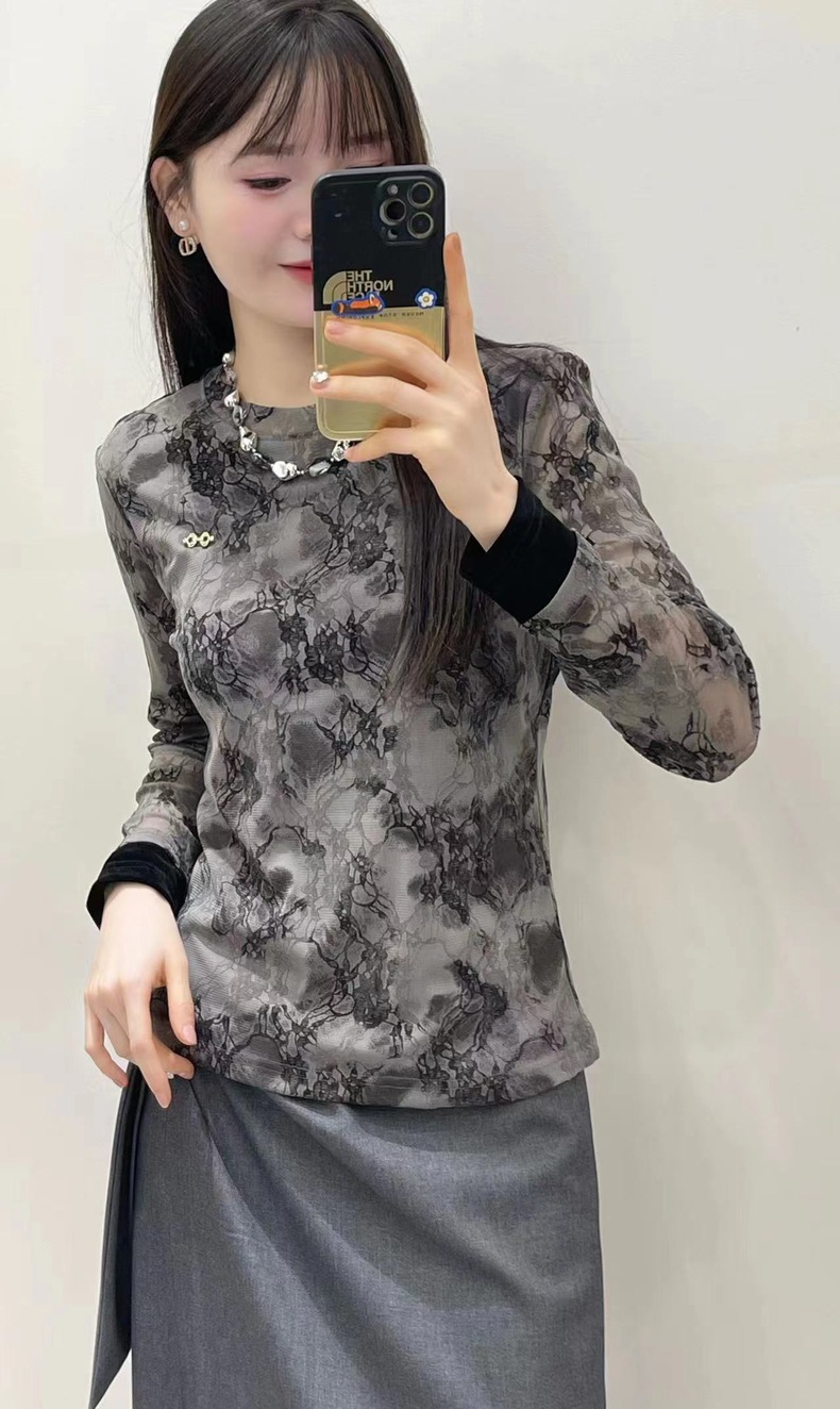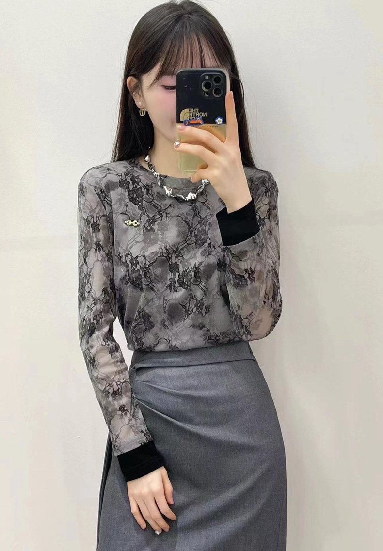 LJ3206 2025秋季新款显瘦打底衫长袖蕾丝衫衬衫女上衣