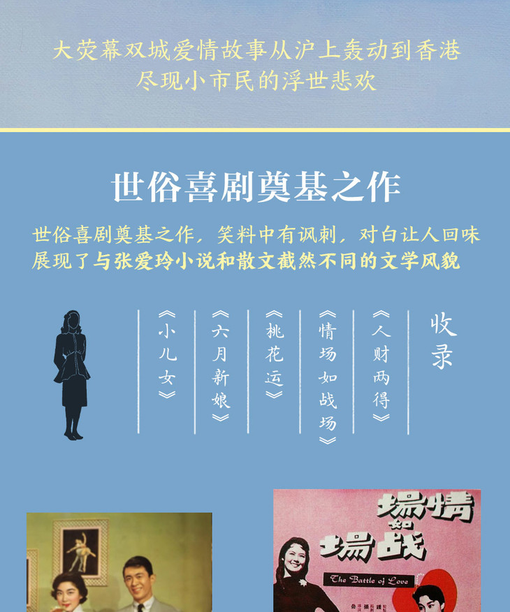 *从《太太万岁》《不了情》到《六月新娘》《一曲难忘》,编剧张爱玲“触电”大银幕,用摇曳生姿、活色生香的爱情喜剧,尽现小市民的浮世悲欢。