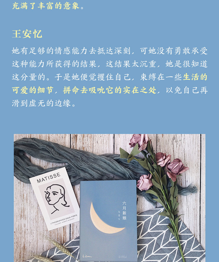 《六月新娘》是张爱玲电影剧作集,收入《人财两得》《情场如战场》《桃花运》《六月新娘》和《小儿女》五个剧本。作为编剧的张爱玲用剧作描摹婚恋爱情生活中的悲欢,关注世态人情、家庭伦理、女性命运,剧情悲喜交加,情节曲折引人,展现出别样的艺术风貌。